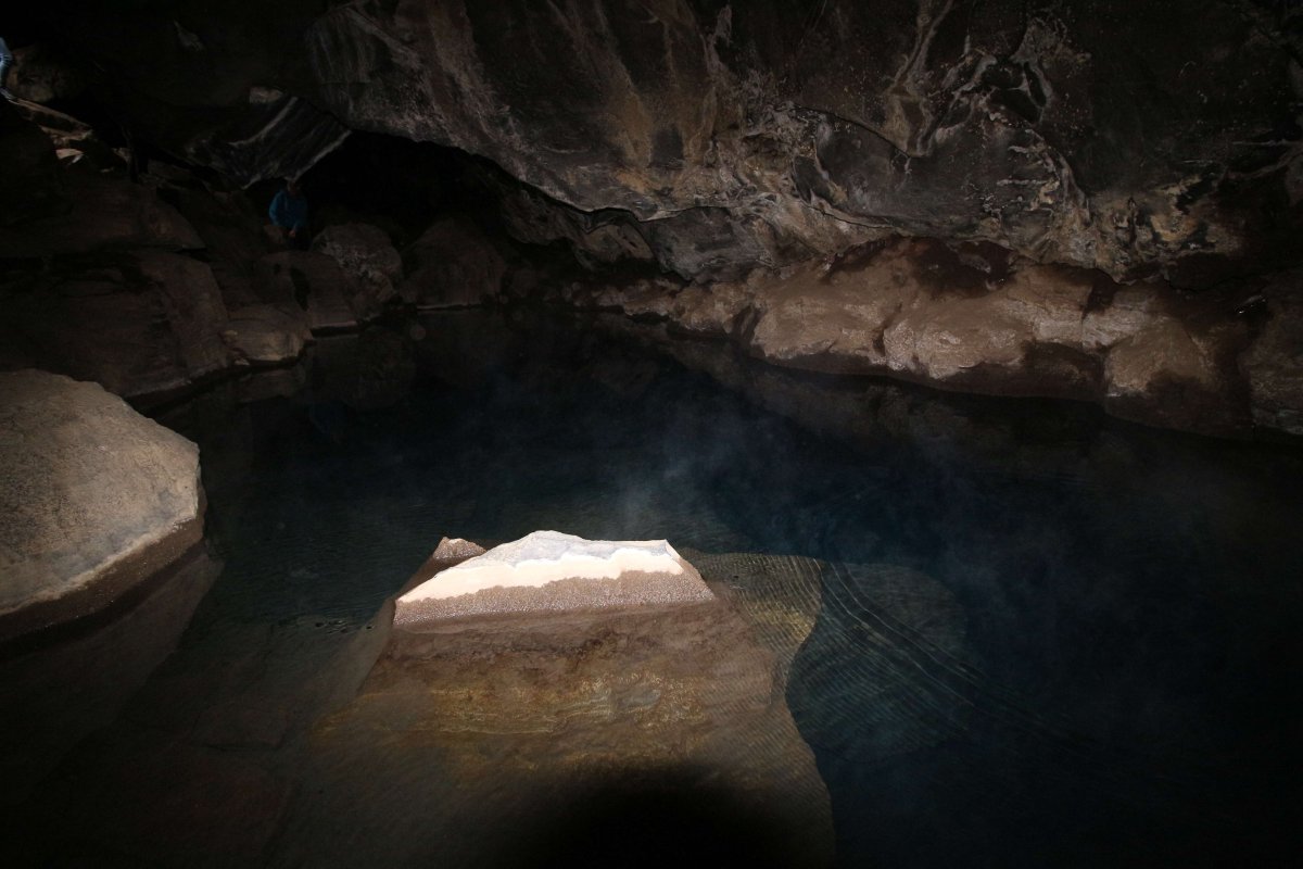 А вот тут купальня с тёплой водой, но купаться в ней нельзя, так как недавно её завалило камнями.
