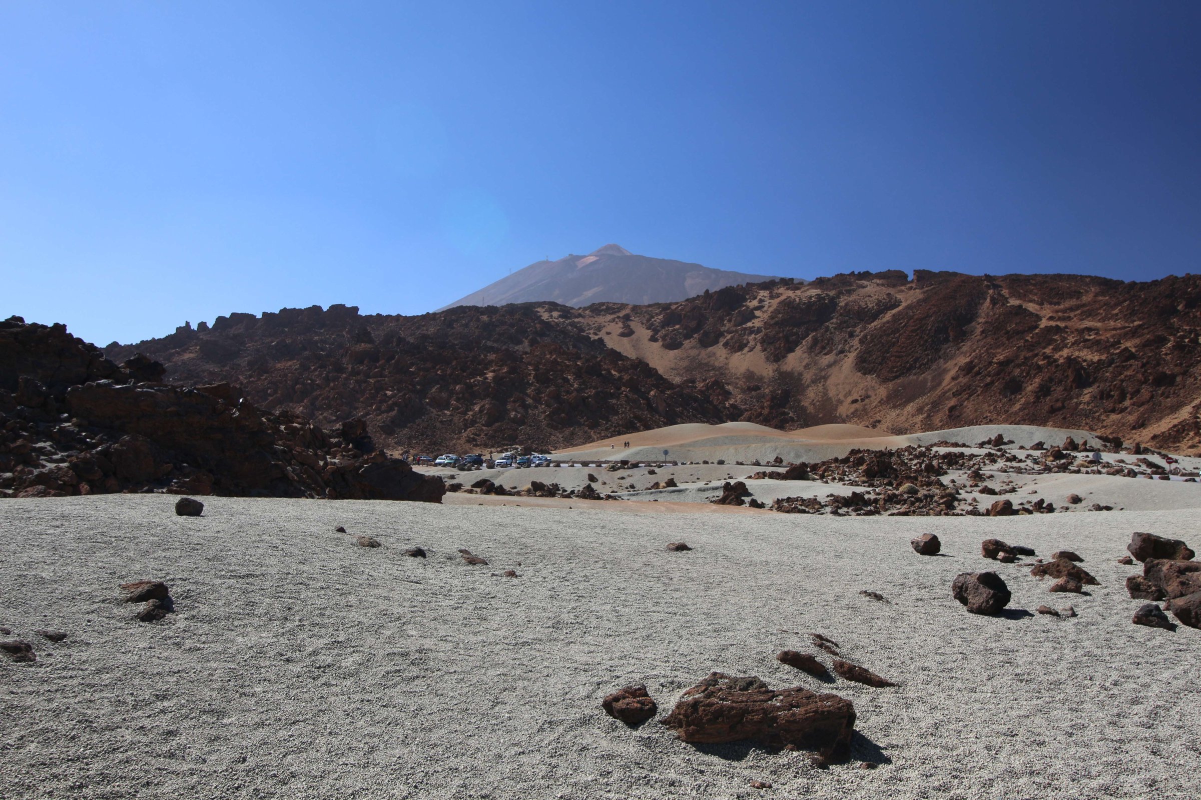 Подъехали к подъёмнику, машин было немного. Что такое много я ещё не знал) Купили билеты и стали ждать фуникулёр наверх. Пока ждали, я услышал разговор между людьми, у которых было разрешение на проход на самую вершину Тейде, но они забыли паспорта в гостинице. Им объяснили, что это автоматически означает, что пройти на самую вершину нельзя. У нас этого разрешения не было, его надо оформлять аж за 2-4 месяца до поездки. Мы бы не успели этого сделать, так как решение о поездке было принято за 1 месяц до вылета, а о разрешении на самую вершину Тейде я вообще узнал только за неделю до вылета.