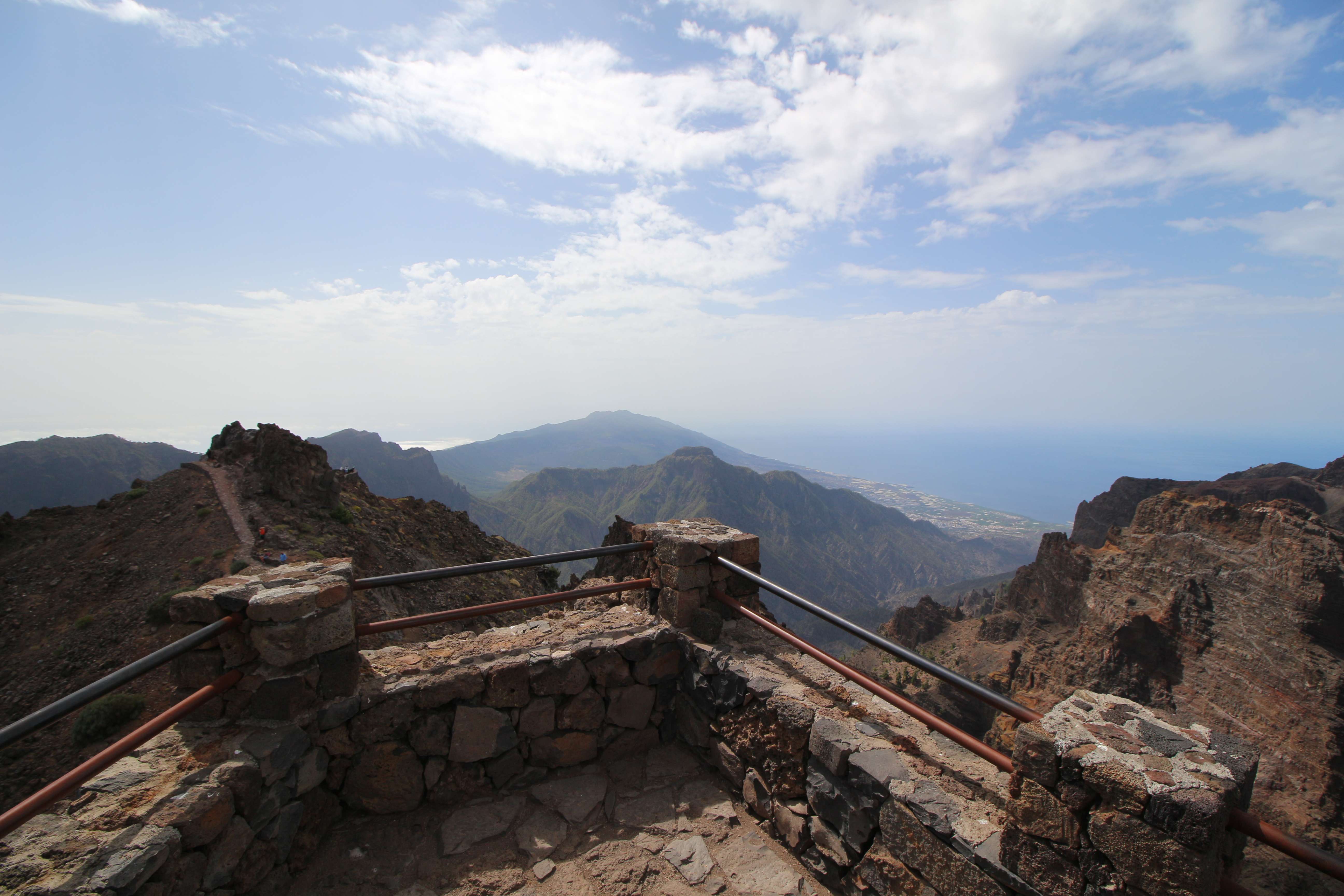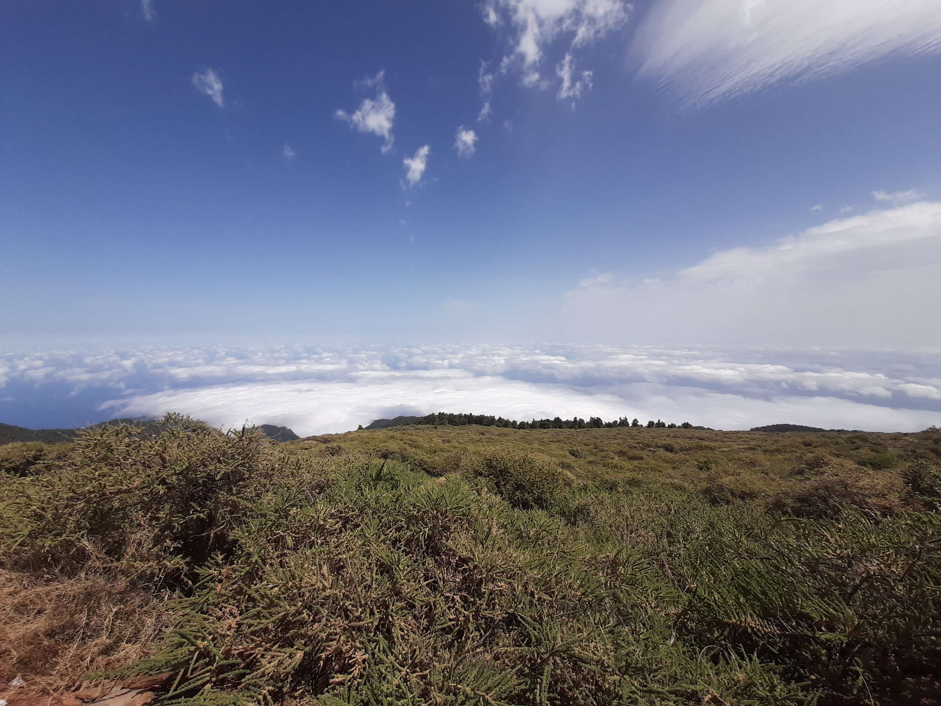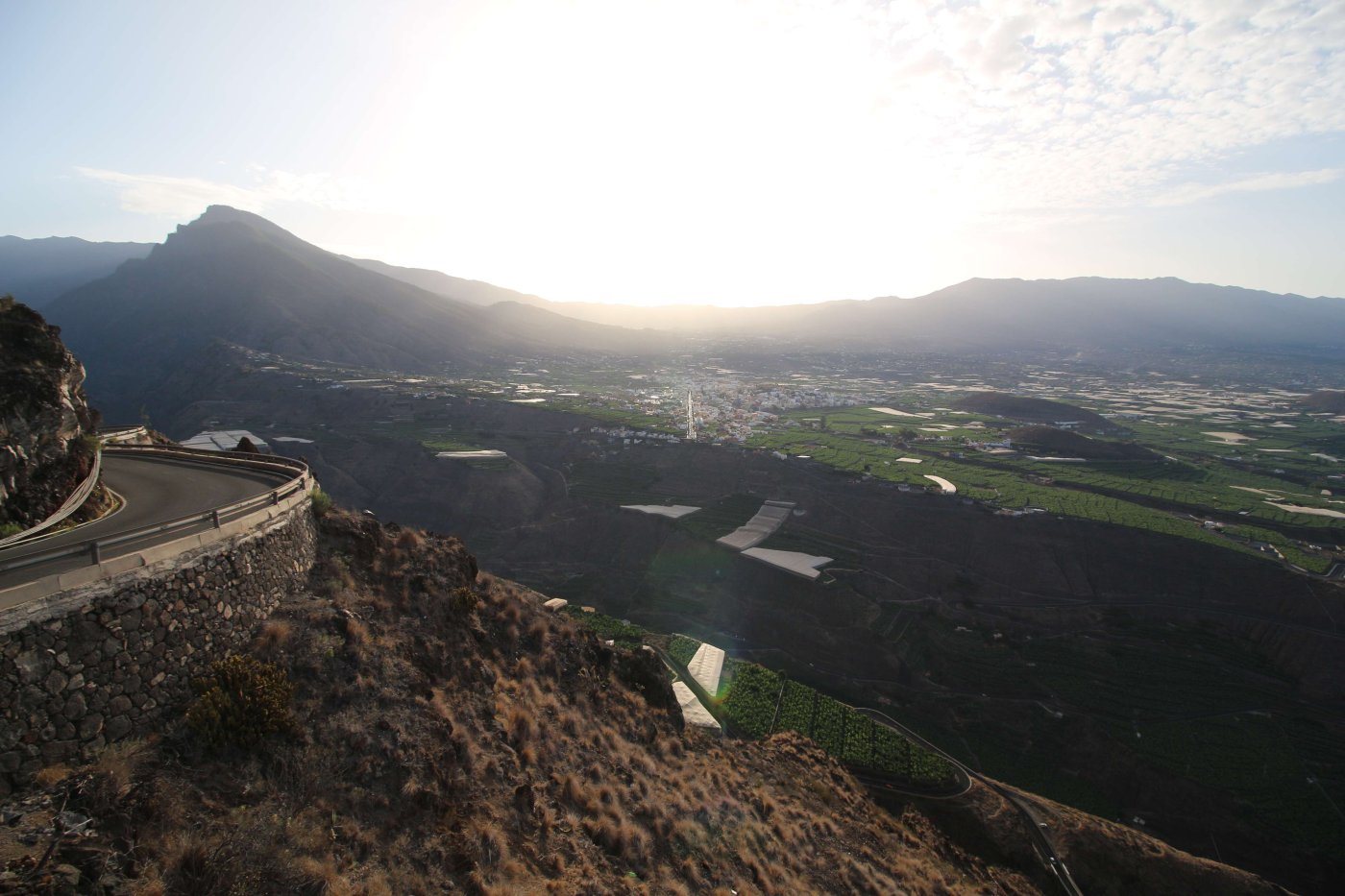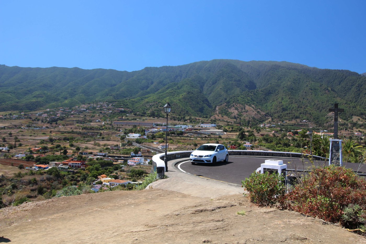 Когда мы летели над Европой, я приметил то место в Австрии, где мы были в 2017 году: А дальше вблизи от нас пролетел другой самолёт: Пока летели, Света как всегда посматривала фильмы на экране, встроенном в кресло впереди сидящего пассажира, а я читал статьи на телефоне и слушал подкасты. А когда пришло время обеда, она отдала мне все пирожные, что дали ей) По прилёту мы очень долго простояли в очереди на паспортный контроль. Может, два рейса пришло в один час, но вокруг нас все были русскоговорящие. После контроля мы забрали наши чемоданы, которые уже давно крутились на ленте, и пошли оформлять машину. Благо мы знали, куда идти. Оформление прошло без сюрпризов. Настраивать машину долго не пришлось, я помнил всё. Кстати, именно поэтому я и решил забронировать точно такую же машину. А то каждый раз с новой машиной приходится разбираться, это требует и времени, и сил. Сели в машину и погнали. И вот тут была какая-то проблема: навигаторы в обоих телефонах долго не могли понять, где мы. Возможно, быстрая смена местоположения на земном шаре заставляет их призадуматься и долго проверять, не ошибка ли это. Через минут 20 мы уже были у ворот нашей первой гостиницы. Кстати, эта гостиница (гостевой дом) была последней в нашем мартовском путешествии. И вот тут облом: подъехали, а ворота закрыты. Я начал включать мобильный интернет в дримсиме, но первый раз спустя так много времени ему так же, как и нашим навигаторам, требуется время, чтобы понять, где мы. В общем, я списался по вотсапу с управляющим, и нам открыл ворота наш старый знакомый. Мы с ним уже по-русски стали разговаривать, он нас сразу узнал. Это был гостевой дом El Cerro de la Luna. Когда мы катили чемоданы в наш номер, управляющий встретил своего тестя, которого в марте мы не застали, и про которого он рассказывал, что тот часто ездит в Дубну. Мы немного поговорили и пошли заселяться. Также мы спросили, где тут у них супермаркет. Нам его показали (пальцем вдаль) и сказали, что, возможно, он уже скоро закроется, так что мы поторопились уйти. В итоге мы бегали по городу и искали этот супермаркет. Машину пришлось поставить поодаль, и поэтому купленную провизию мы тащили за тридевять земель. В общем, всё сделали и пошли в номер готовиться к завтрашнему дню. Я настраивал машину, потом разбирал вещи и раскладывал их по чемоданам так, чтобы в одном чемодане были вещи, которые почти никогда не достаются, а в другом чемодане - вещи, которые почти всегда таскаются с собой. После нам надо было купить билеты на паром и забронировать гостиницу на Ла Пальме. Спать легли поздно. Утро 14-го сентября. Встали рано, когда было темно, так как нам надо было в 7:45 быть в порту. У нас был паром на Ла Пальму. Там такое правило: если приезжаешь на машине, то надо быть на месте за 1 час до отплытия. А само отплытие было в 8:45. Приехали, было ещё темно, и почти никого не было. Я походил по пристани и поспрашивал, куда нужно подъехать на машине, чтобы попасть на паром Армас. С местом определились, и настало время долгих ожиданий. Паром, по-моему, сильно опоздал. Вот эта махина. Въезд к нему в трюм был через нос: Когда он причалил, из него ещё долго выезжали грузовики и легковушки. Видимо, он плыл с другого острова. Вот так выглядит парковка внутри него: Там несколько этажей, и наша машина стояла на втором этаже. А попала она туда по трапу, который на фотографии уже по