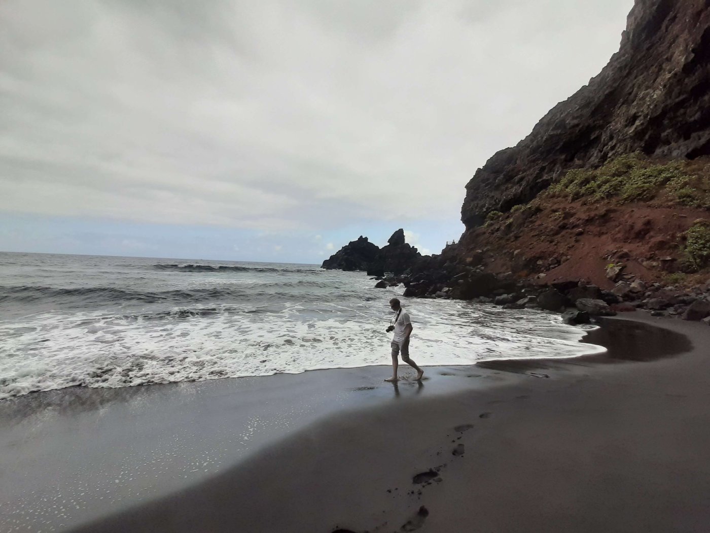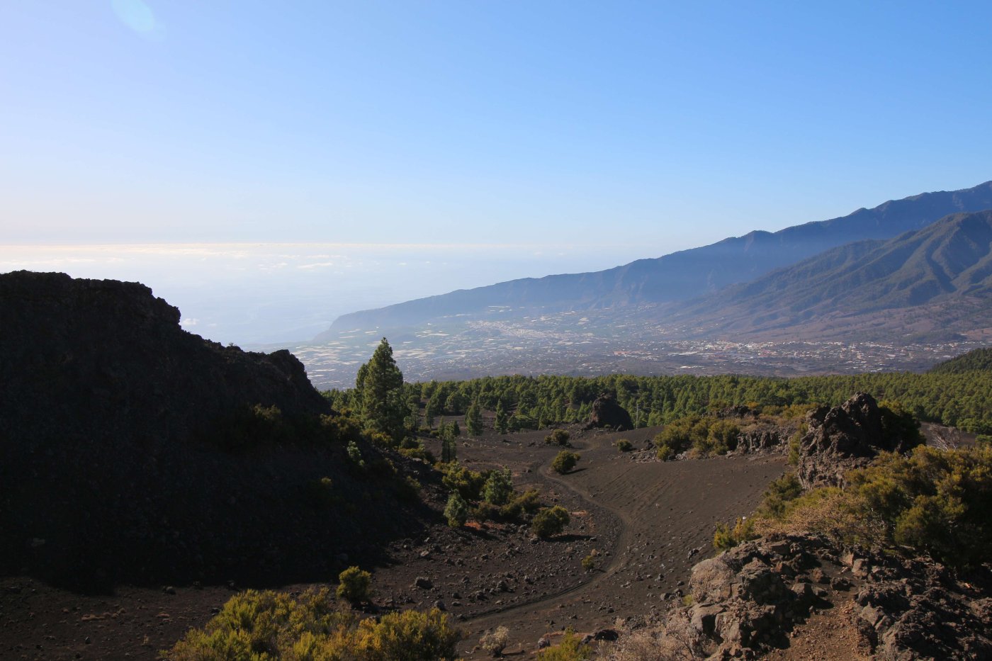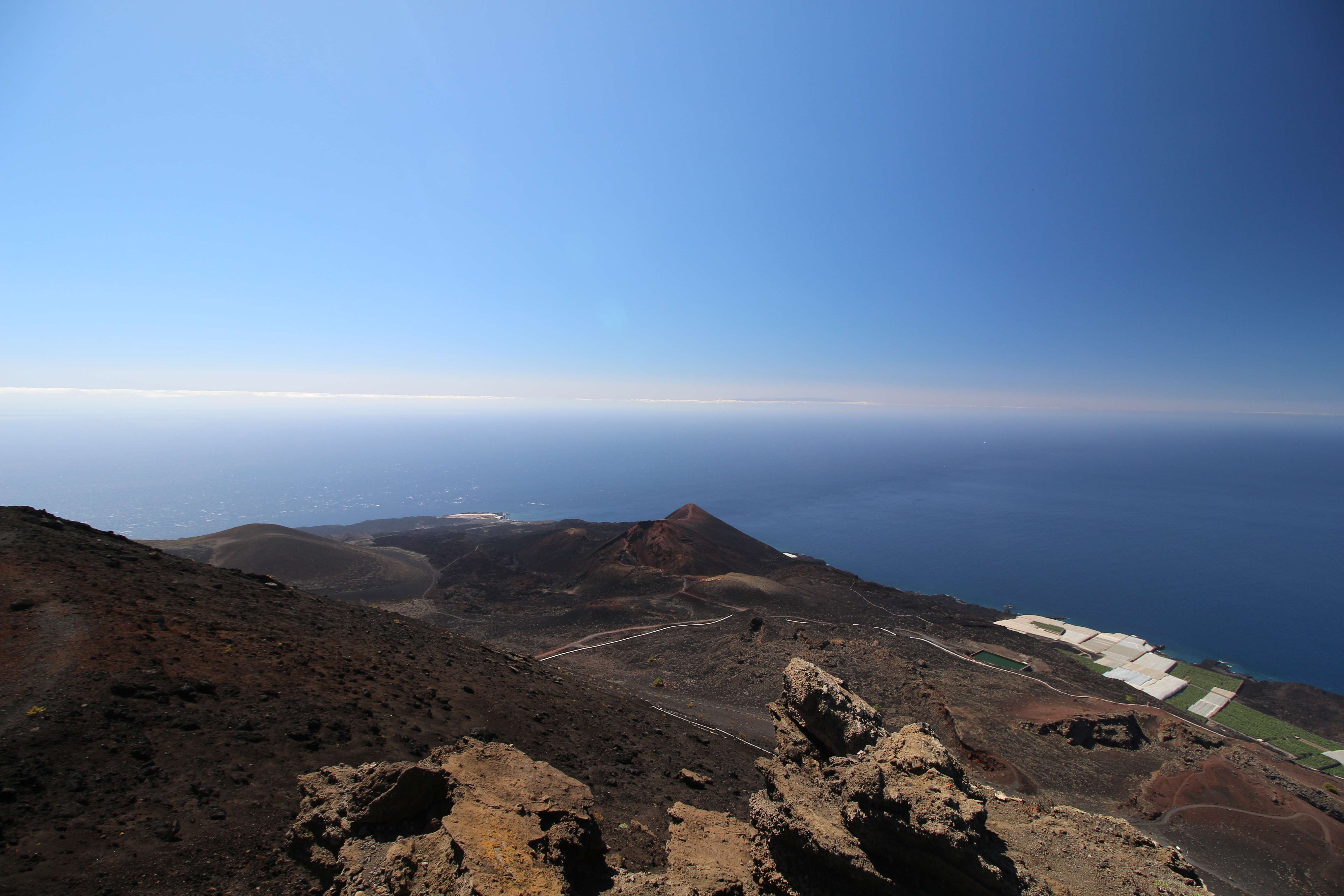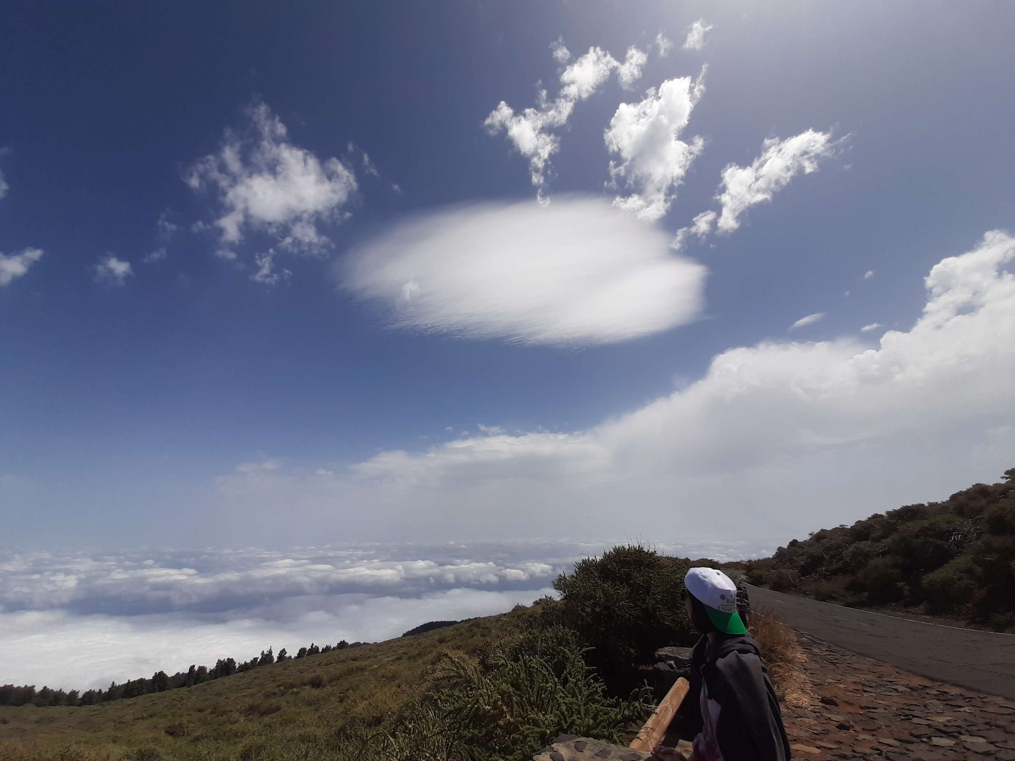 Когда мы летели над Европой, я приметил то место в Австрии, где мы были в 2017 году: А дальше вблизи от нас пролетел другой самолёт: Пока летели, Света как всегда посматривала фильмы на экране, встроенном в кресло впереди сидящего пассажира, а я читал статьи на телефоне и слушал подкасты. А когда пришло время обеда, она отдала мне все пирожные, что дали ей) По прилёту мы очень долго простояли в очереди на паспортный контроль. Может, два рейса пришло в один час, но вокруг нас все были русскоговорящие. После контроля мы забрали наши чемоданы, которые уже давно крутились на ленте, и пошли оформлять машину. Благо мы знали, куда идти. Оформление прошло без сюрпризов. Настраивать машину долго не пришлось, я помнил всё. Кстати, именно поэтому я и решил забронировать точно такую же машину. А то каждый раз с новой машиной приходится разбираться, это требует и времени, и сил. Сели в машину и погнали. И вот тут была какая-то проблема: навигаторы в обоих телефонах долго не могли понять, где мы. Возможно, быстрая смена местоположения на земном шаре заставляет их призадуматься и долго проверять, не ошибка ли это. Через минут 20 мы уже были у ворот нашей первой гостиницы. Кстати, эта гостиница (гостевой дом) была последней в нашем мартовском путешествии. И вот тут облом: подъехали, а ворота закрыты. Я начал включать мобильный интернет в дримсиме, но первый раз спустя так много времени ему так же, как и нашим навигаторам, требуется время, чтобы понять, где мы. В общем, я списался по вотсапу с управляющим, и нам открыл ворота наш старый знакомый. Мы с ним уже по-русски стали разговаривать, он нас сразу узнал. Это был гостевой дом El Cerro de la Luna. Когда мы катили чемоданы в наш номер, управляющий встретил своего тестя, которого в марте мы не застали, и про которого он рассказывал, что тот часто ездит в Дубну. Мы немного поговорили и пошли заселяться. Также мы спросили, где тут у них супермаркет. Нам его показали (пальцем вдаль) и сказали, что, возможно, он уже скоро закроется, так что мы поторопились уйти. В итоге мы бегали по городу и искали этот супермаркет. Машину пришлось поставить поодаль, и поэтому купленную провизию мы тащили за тридевять земель. В общем, всё сделали и пошли в номер готовиться к завтрашнему дню. Я настраивал машину, потом разбирал вещи и раскладывал их по чемоданам так, чтобы в одном чемодане были вещи, которые почти никогда не достаются, а в другом чемодане - вещи, которые почти всегда таскаются с собой. После нам надо было купить билеты на паром и забронировать гостиницу на Ла Пальме. Спать легли поздно. Утро 14-го сентября. Встали рано, когда было темно, так как нам надо было в 7:45 быть в порту. У нас был паром на Ла Пальму. Там такое правило: если приезжаешь на машине, то надо быть на месте за 1 час до отплытия. А само отплытие было в 8:45. Приехали, было ещё темно, и почти никого не было. Я походил по пристани и поспрашивал, куда нужно подъехать на машине, чтобы попасть на паром Армас. С местом определились, и настало время долгих ожиданий. Паром, по-моему, сильно опоздал. Вот эта махина. Въезд к нему в трюм был через нос: Когда он причалил, из него ещё долго выезжали грузовики и легковушки. Видимо, он плыл с другого острова. Вот так выглядит парковка внутри него: Там несколько этажей, и наша машина стояла на втором этаже. А попала она туда по трапу, который на фотографии уже по