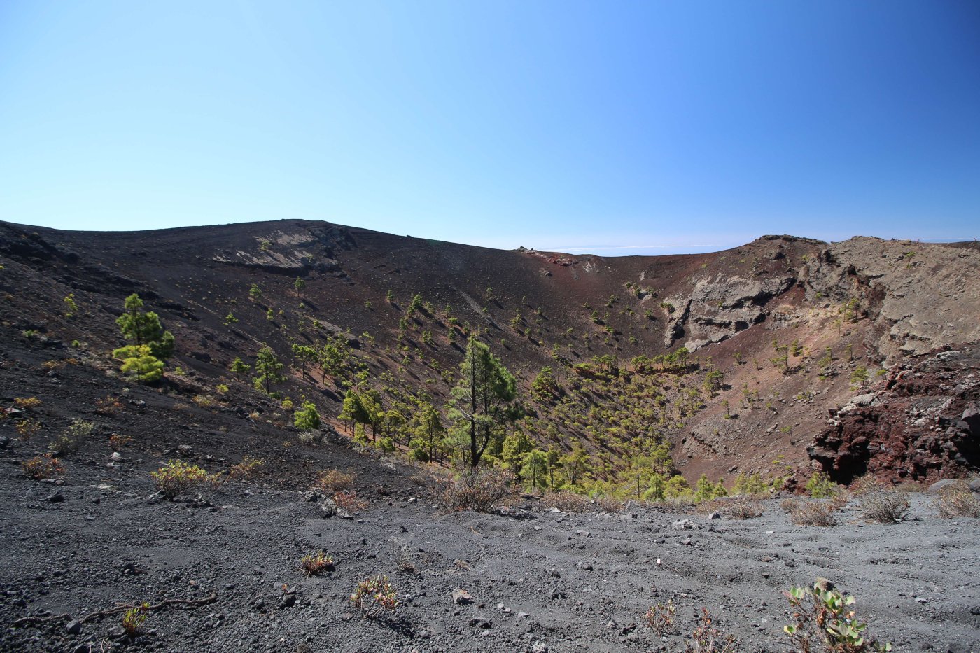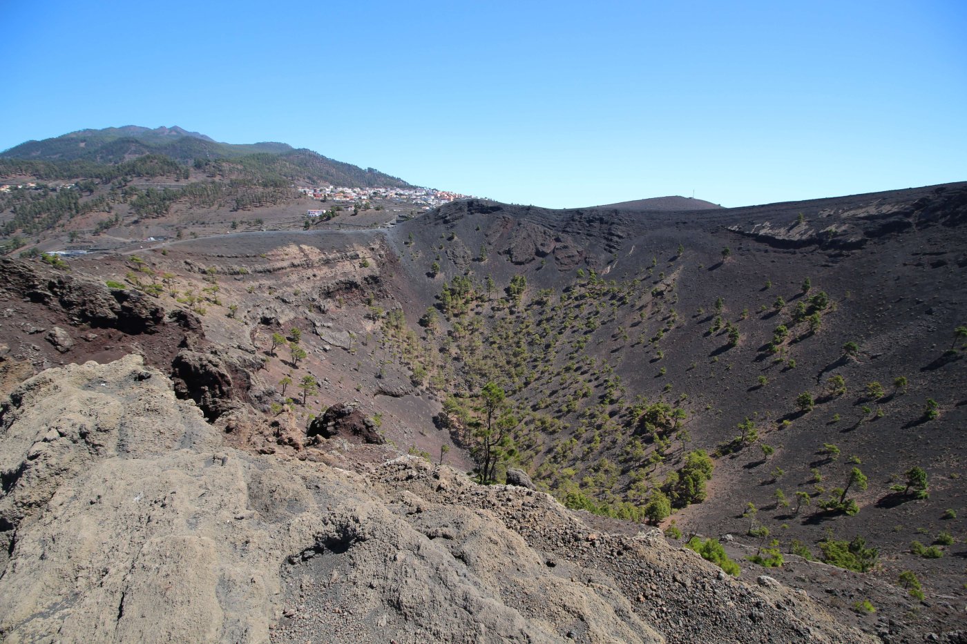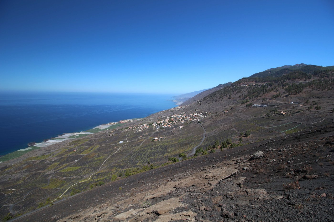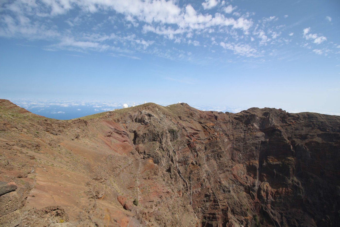 Когда мы летели над Европой, я приметил то место в Австрии, где мы были в 2017 году: А дальше вблизи от нас пролетел другой самолёт: Пока летели, Света как всегда посматривала фильмы на экране, встроенном в кресло впереди сидящего пассажира, а я читал статьи на телефоне и слушал подкасты. А когда пришло время обеда, она отдала мне все пирожные, что дали ей) По прилёту мы очень долго простояли в очереди на паспортный контроль. Может, два рейса пришло в один час, но вокруг нас все были русскоговорящие. После контроля мы забрали наши чемоданы, которые уже давно крутились на ленте, и пошли оформлять машину. Благо мы знали, куда идти. Оформление прошло без сюрпризов. Настраивать машину долго не пришлось, я помнил всё. Кстати, именно поэтому я и решил забронировать точно такую же машину. А то каждый раз с новой машиной приходится разбираться, это требует и времени, и сил. Сели в машину и погнали. И вот тут была какая-то проблема: навигаторы в обоих телефонах долго не могли понять, где мы. Возможно, быстрая смена местоположения на земном шаре заставляет их призадуматься и долго проверять, не ошибка ли это. Через минут 20 мы уже были у ворот нашей первой гостиницы. Кстати, эта гостиница (гостевой дом) была последней в нашем мартовском путешествии. И вот тут облом: подъехали, а ворота закрыты. Я начал включать мобильный интернет в дримсиме, но первый раз спустя так много времени ему так же, как и нашим навигаторам, требуется время, чтобы понять, где мы. В общем, я списался по вотсапу с управляющим, и нам открыл ворота наш старый знакомый. Мы с ним уже по-русски стали разговаривать, он нас сразу узнал. Это был гостевой дом El Cerro de la Luna. Когда мы катили чемоданы в наш номер, управляющий встретил своего тестя, которого в марте мы не застали, и про которого он рассказывал, что тот часто ездит в Дубну. Мы немного поговорили и пошли заселяться. Также мы спросили, где тут у них супермаркет. Нам его показали (пальцем вдаль) и сказали, что, возможно, он уже скоро закроется, так что мы поторопились уйти. В итоге мы бегали по городу и искали этот супермаркет. Машину пришлось поставить поодаль, и поэтому купленную провизию мы тащили за тридевять земель. В общем, всё сделали и пошли в номер готовиться к завтрашнему дню. Я настраивал машину, потом разбирал вещи и раскладывал их по чемоданам так, чтобы в одном чемодане были вещи, которые почти никогда не достаются, а в другом чемодане - вещи, которые почти всегда таскаются с собой. После нам надо было купить билеты на паром и забронировать гостиницу на Ла Пальме. Спать легли поздно. Утро 14-го сентября. Встали рано, когда было темно, так как нам надо было в 7:45 быть в порту. У нас был паром на Ла Пальму. Там такое правило: если приезжаешь на машине, то надо быть на месте за 1 час до отплытия. А само отплытие было в 8:45. Приехали, было ещё темно, и почти никого не было. Я походил по пристани и поспрашивал, куда нужно подъехать на машине, чтобы попасть на паром Армас. С местом определились, и настало время долгих ожиданий. Паром, по-моему, сильно опоздал. Вот эта махина. Въезд к нему в трюм был через нос: Когда он причалил, из него ещё долго выезжали грузовики и легковушки. Видимо, он плыл с другого острова. Вот так выглядит парковка внутри него: Там несколько этажей, и наша машина стояла на втором этаже. А попала она туда по трапу, который на фотографии уже по