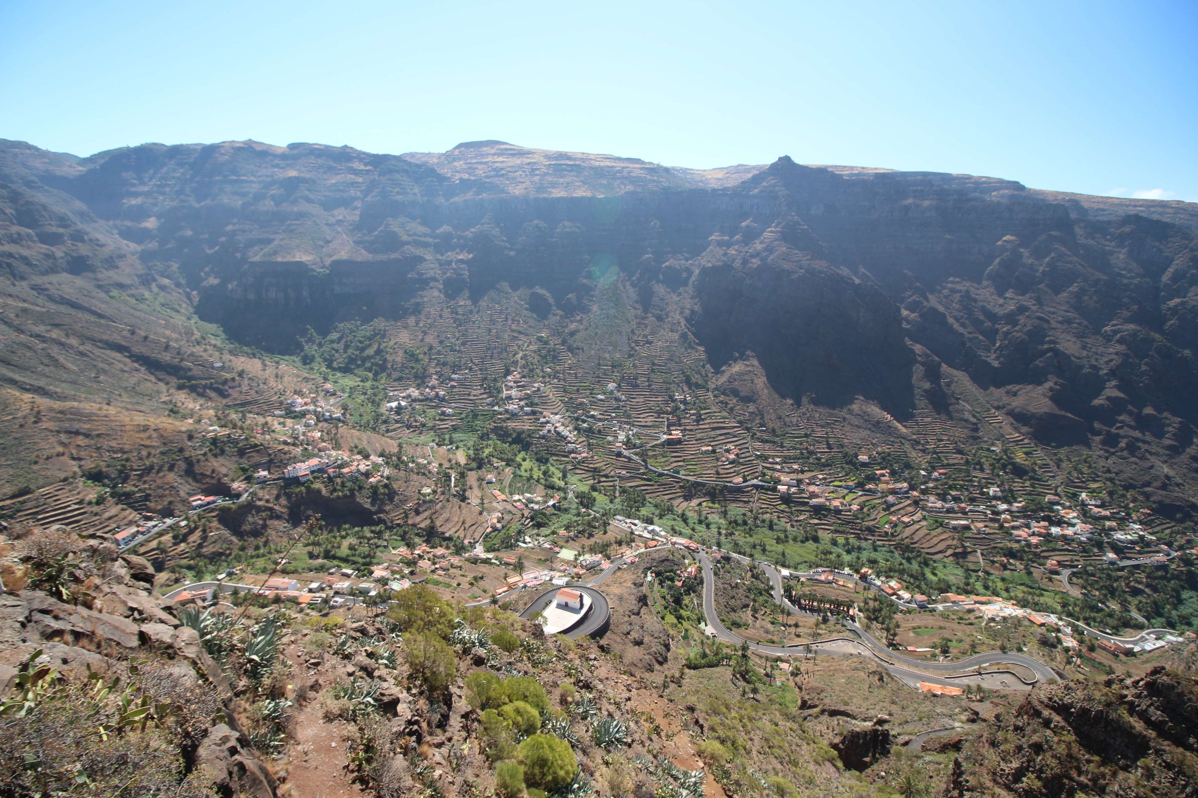 Прибыли мы на Ля Гомеру и сразу столкнулись с большим количеством туристов. Город был заполонён ими. Было не так малолюдно, как на Ла Пальме. Поэтому мы, позабыв о том, что нам надо заправиться, погнали в горы. Вот фотография одной из наших остановок, это город Сан Себастьян де Гомера: