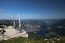 20-ое июля. Встали как всегда рано и начали собираться, чтобы ехать дальше. Но тут неожиданно для нас пошёл сильный дождь и испортил все планы. Пришлось всё в срочном порядке закинуть в машину, и сидеть в ней, и думать, что делать. В итоге мы решили всё-таки рискнуть и доехать до следующей интересной точки нашего путешествия: горный курорт “5 пальцев”. И, что самое интересное, пока мы до него ехали минут 20, дождь закончился. И пока мы, купив билеты, поднимались на вершину на фуникулере, от пасмурной погоды не осталось и следа. Небо очистилось как по заказу. Внизу, на парковке, мы неожиданно встретили русских, семью из Таганрога. А потом пересеклись с ними уже на вершине, пообщались и помогли друг другу сделать красивые фотографии.