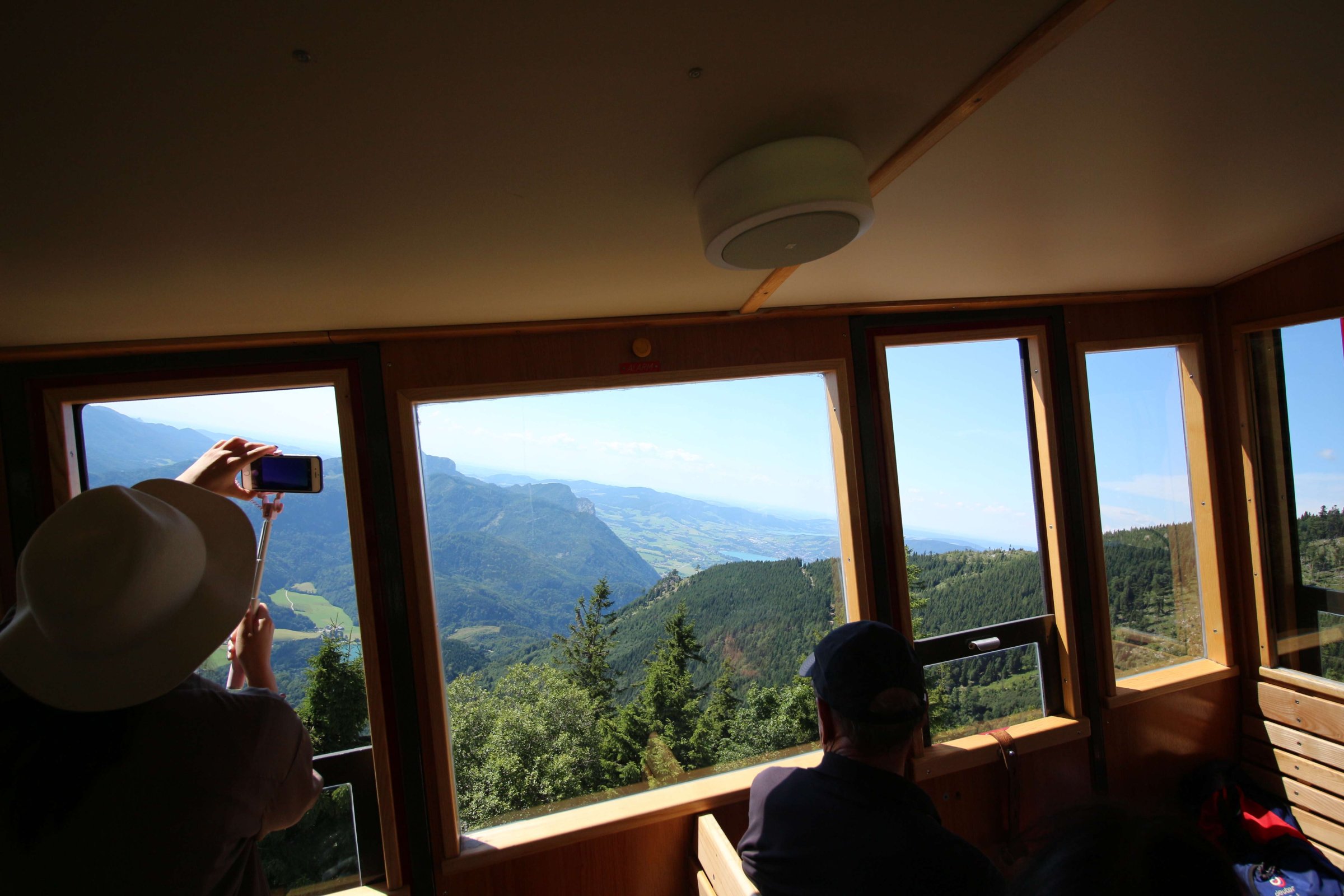 Быстренько пофотографировались и поехали дальше. Въехали в Австрию, купили виньетку для дорог и поехали в город Рид (Ried). В нём находится подъемник на гору Schafberg, это одно из самых красивых мест Австрии - домик на краю обрыва скалы.