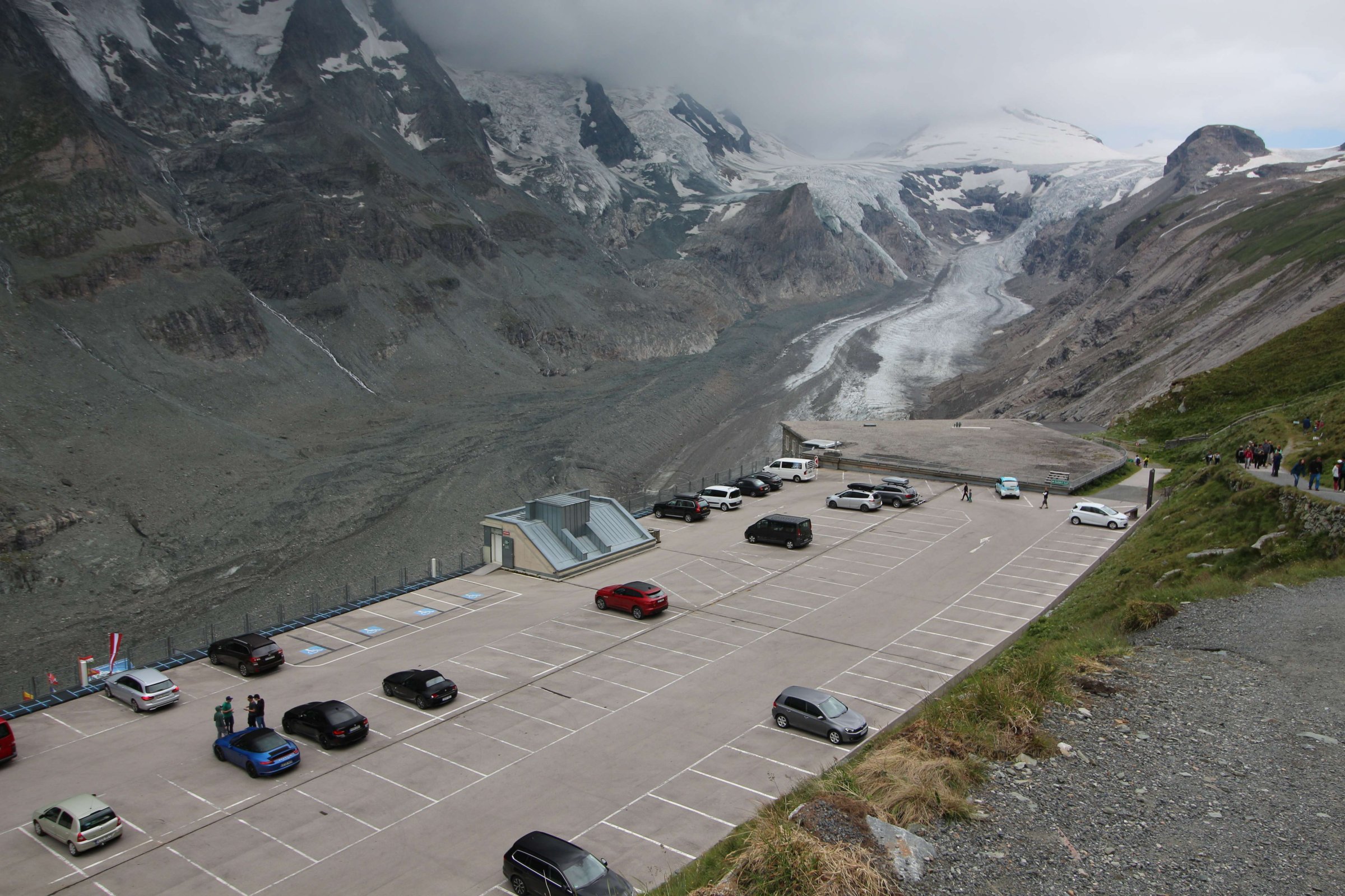 Также тут важно не пропустить ответвление этой дороги, чтобы съездить к леднику. До поездки я прочитал, что в конечной точке этого тупика неплохо запарковаться в последнем паркинге на последнем этаже, на крыше. Мы так и сделали. Парковка, кстати, бесплатная.