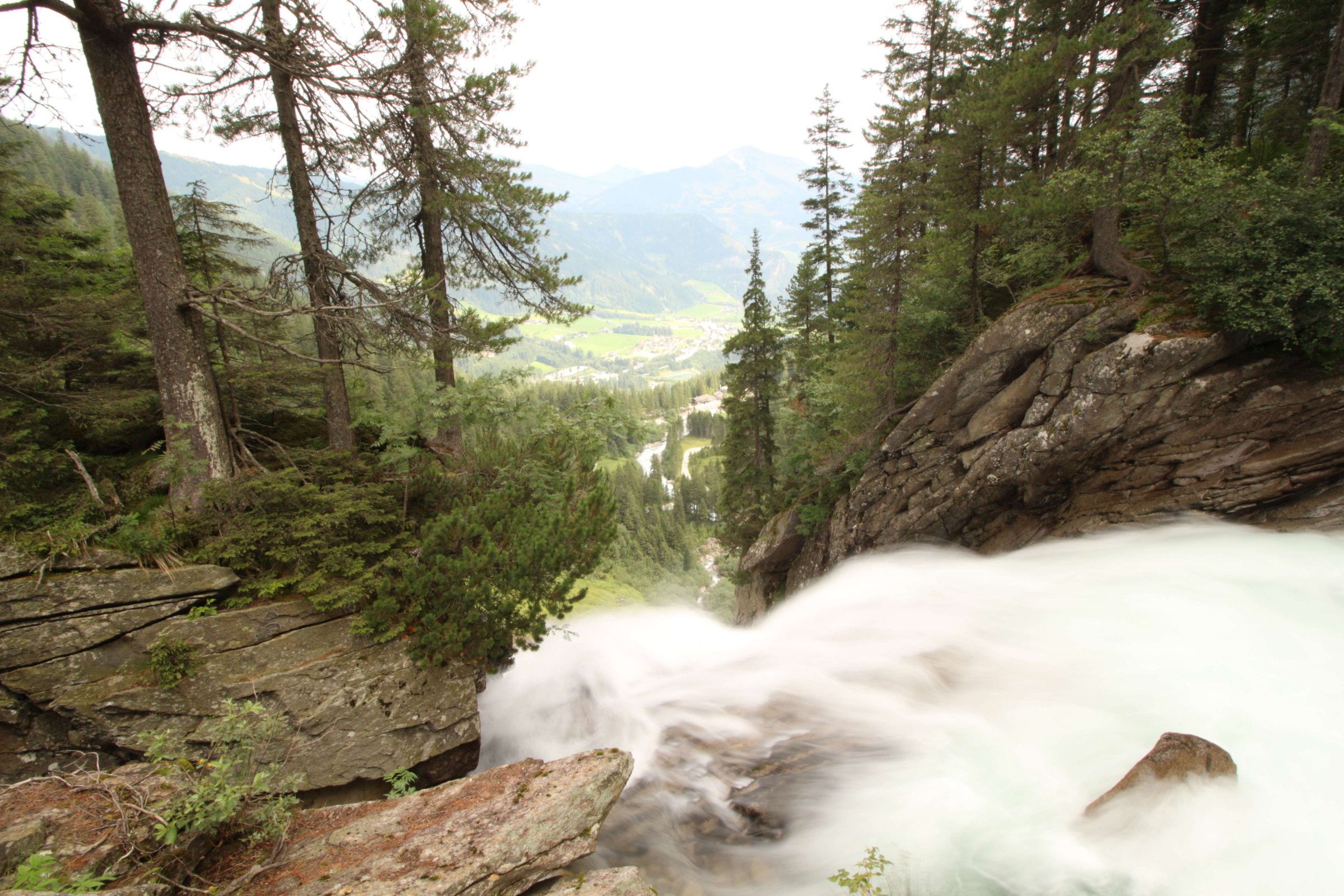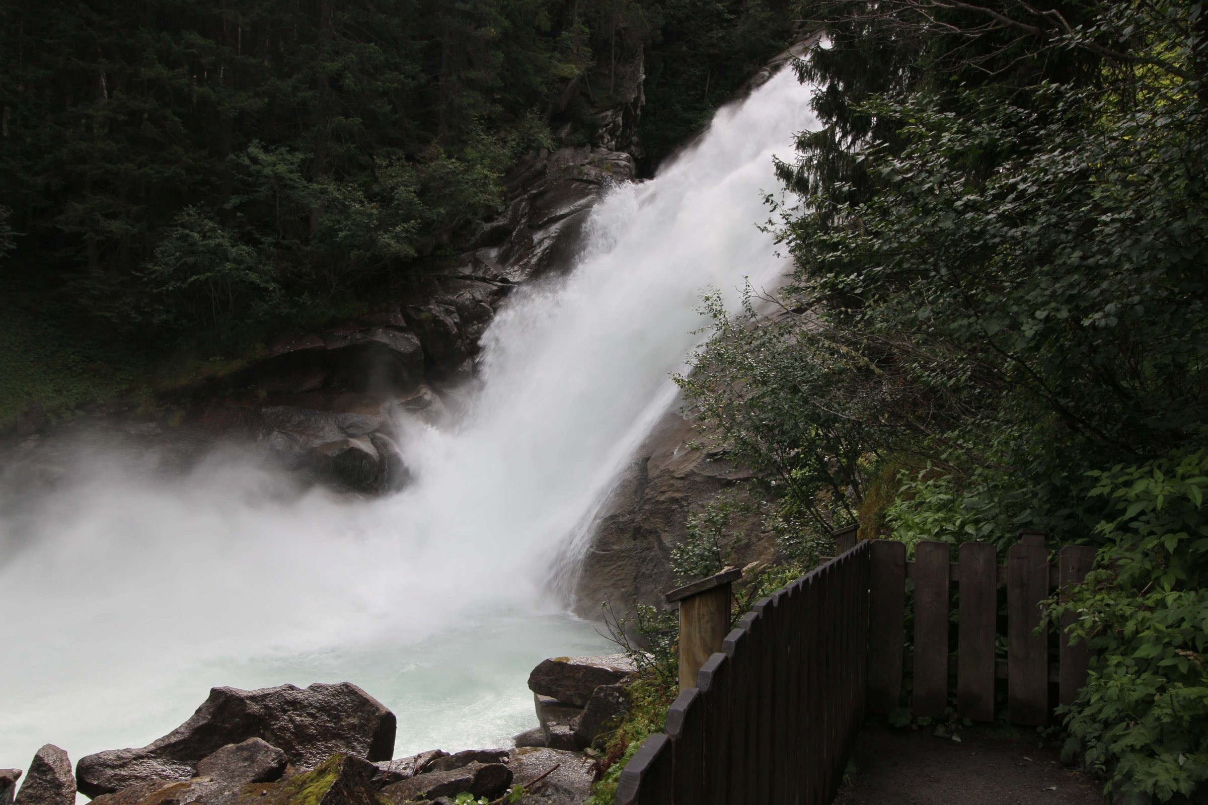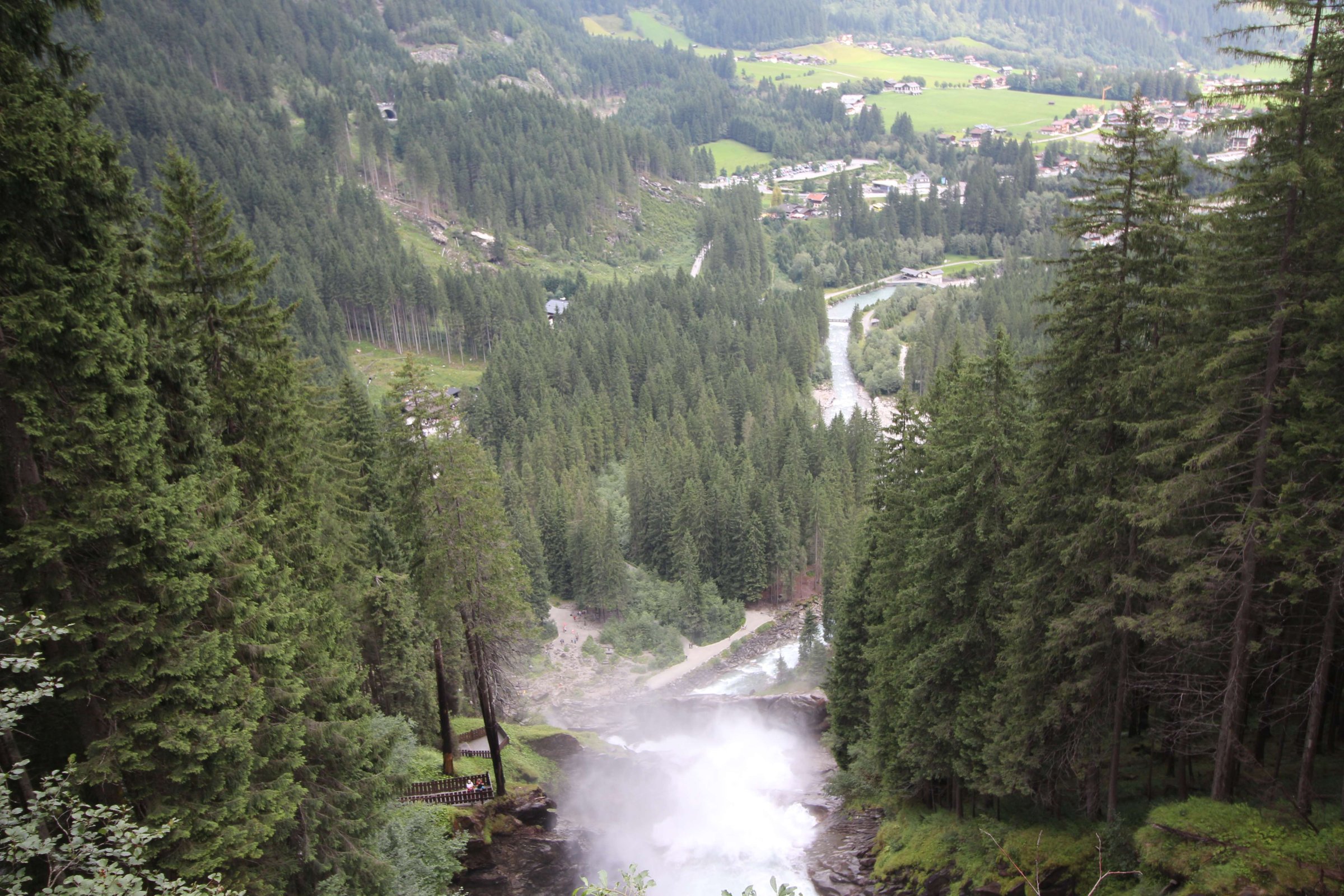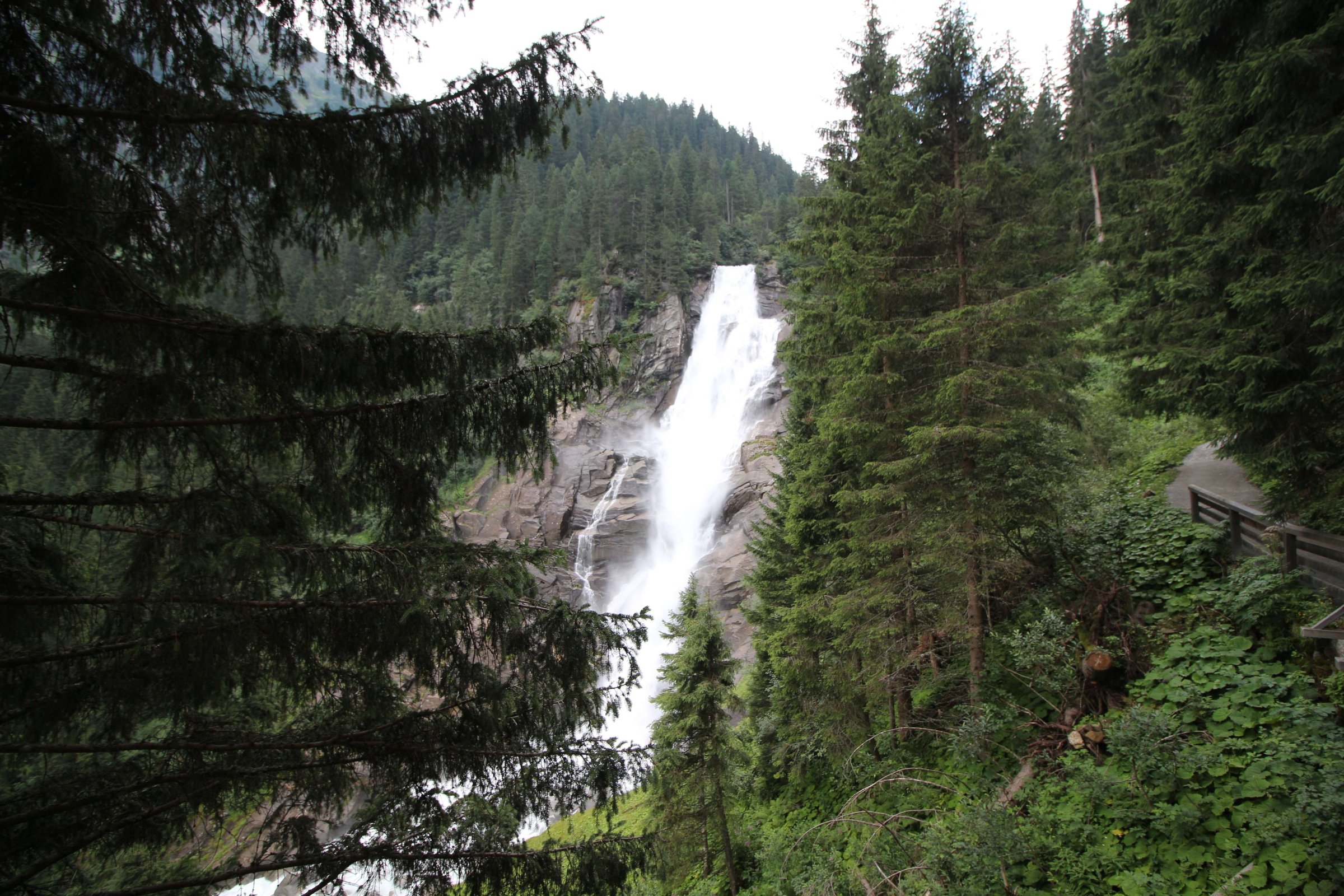 Дальше едем в сторону высокогорной дороги Гросглокнер, но понимаем, что за сегодня мы не успеем по ней проехать, поэтому не спешим. Решили остановиться на ночлег около её начала. По пути заезжаем на водопад, отмеченный на нашей карте.