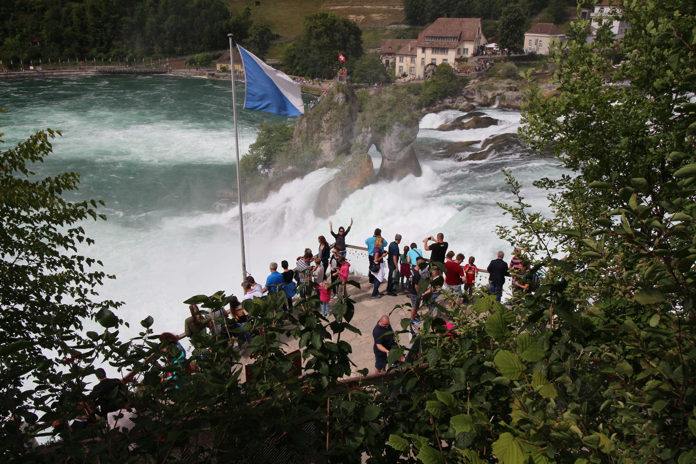 Далее мы ехали мимо Рейнского водопада. Я там уже был в 2012 году, но так как моя жена там не была, мы решили съездить к нему по-быстрому. Купили билет и пофотографировались там.