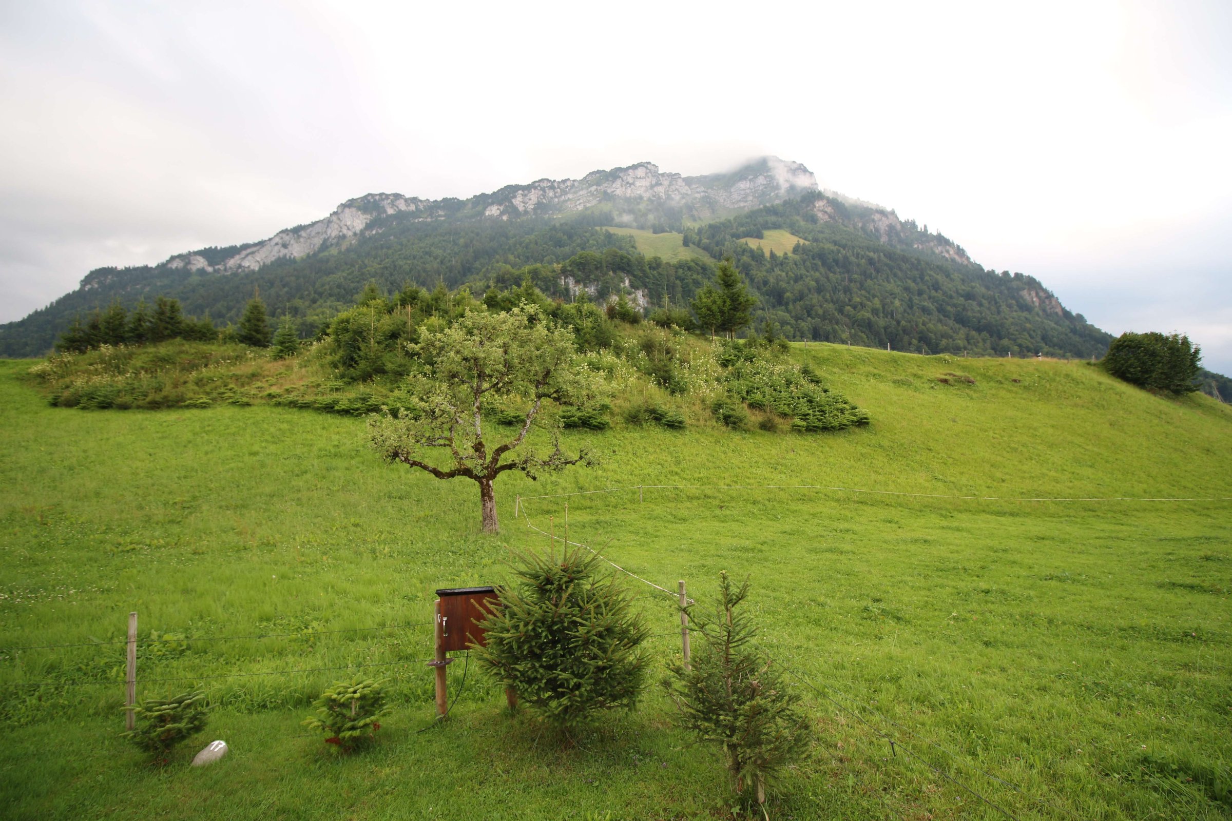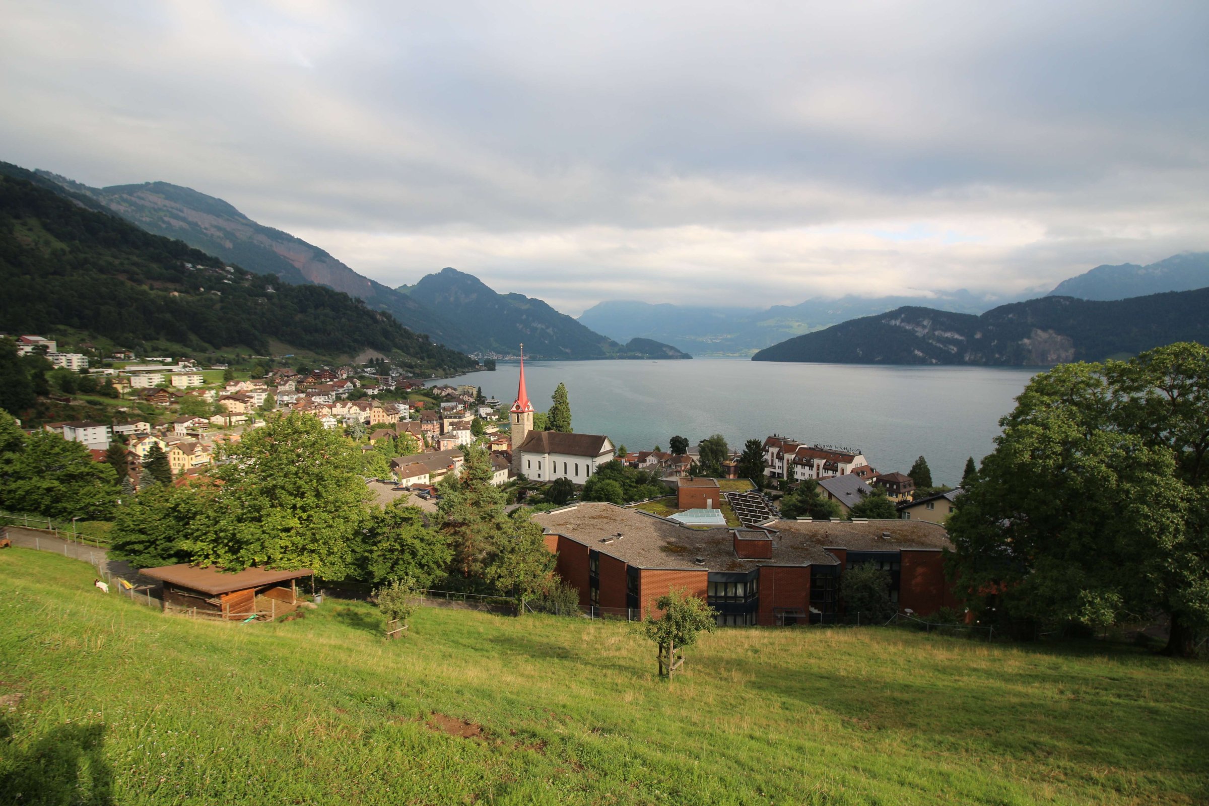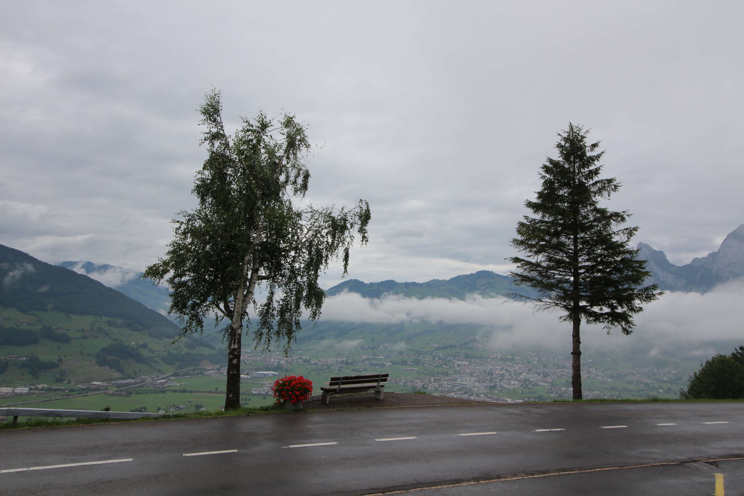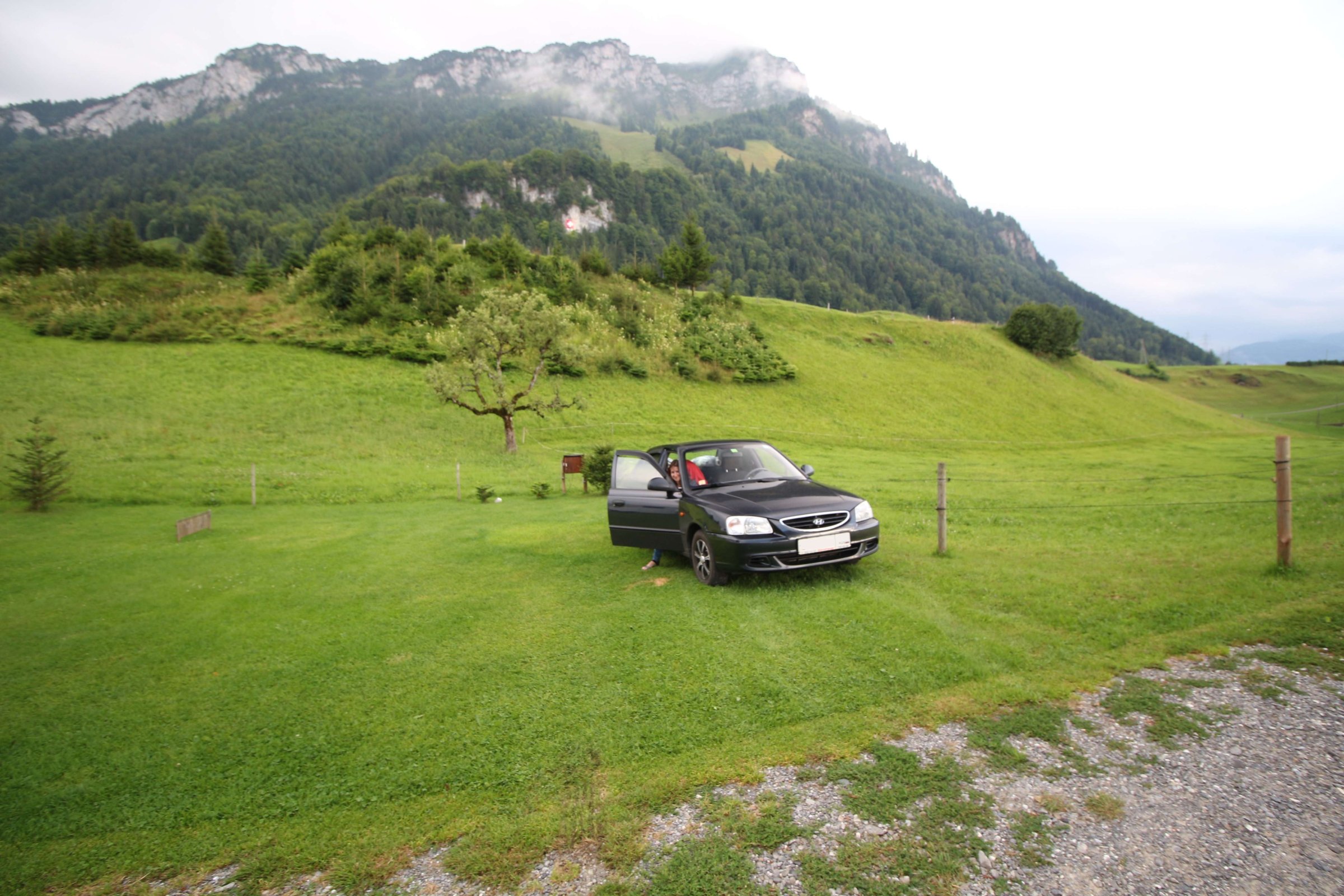 Едем дальше. Погода начала портиться, и мы поняли, что такая погода будет в Швейцарии еще несколько дней, поэтому решили доехать хотя бы до середины страны и там заночевать где-нибудь. Пока ехали, нашли красивое место и остановились, чтобы пофотографироваться. Но пока мы делали это, к нам подошла женщина и стала молвить на русском языке. Оказалось, что она где-то рядом живёт и приехала сюда в командировку, а сама она, по-моему, из Москвы.