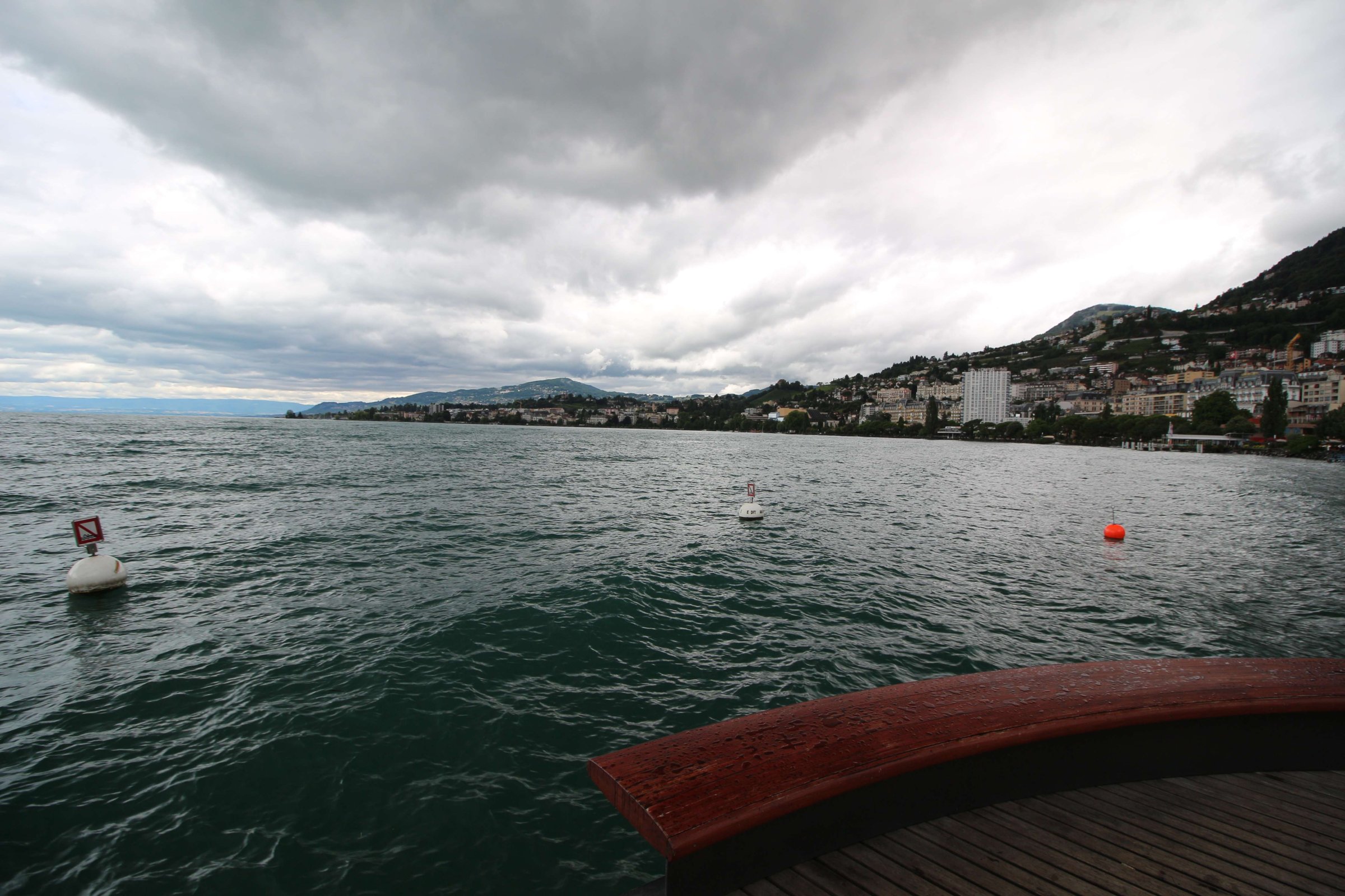 24-ое июля. Проснулись, было пасмурно, но дождя еще не было. Пока собирались, начался дождь. Нам пришлось переместиться на кухню. Там мы долго готовили еду и ели ее, потом долго планировали маршрут, куда поедем, и что вообще с погодой, и стоит ли оставаться в Швейцарии. В итоге решили гнать во Францию, но с заездом в Монтрё к замку и в Женеву к фонтану. В Монтрё так и не нашли, где можно поближе припарковаться. Припарковались подальше, и оттуда нам уже не захотелось идти пешком к замку, поэтому мы просто пофотографировались на набережной и поехали дальше.