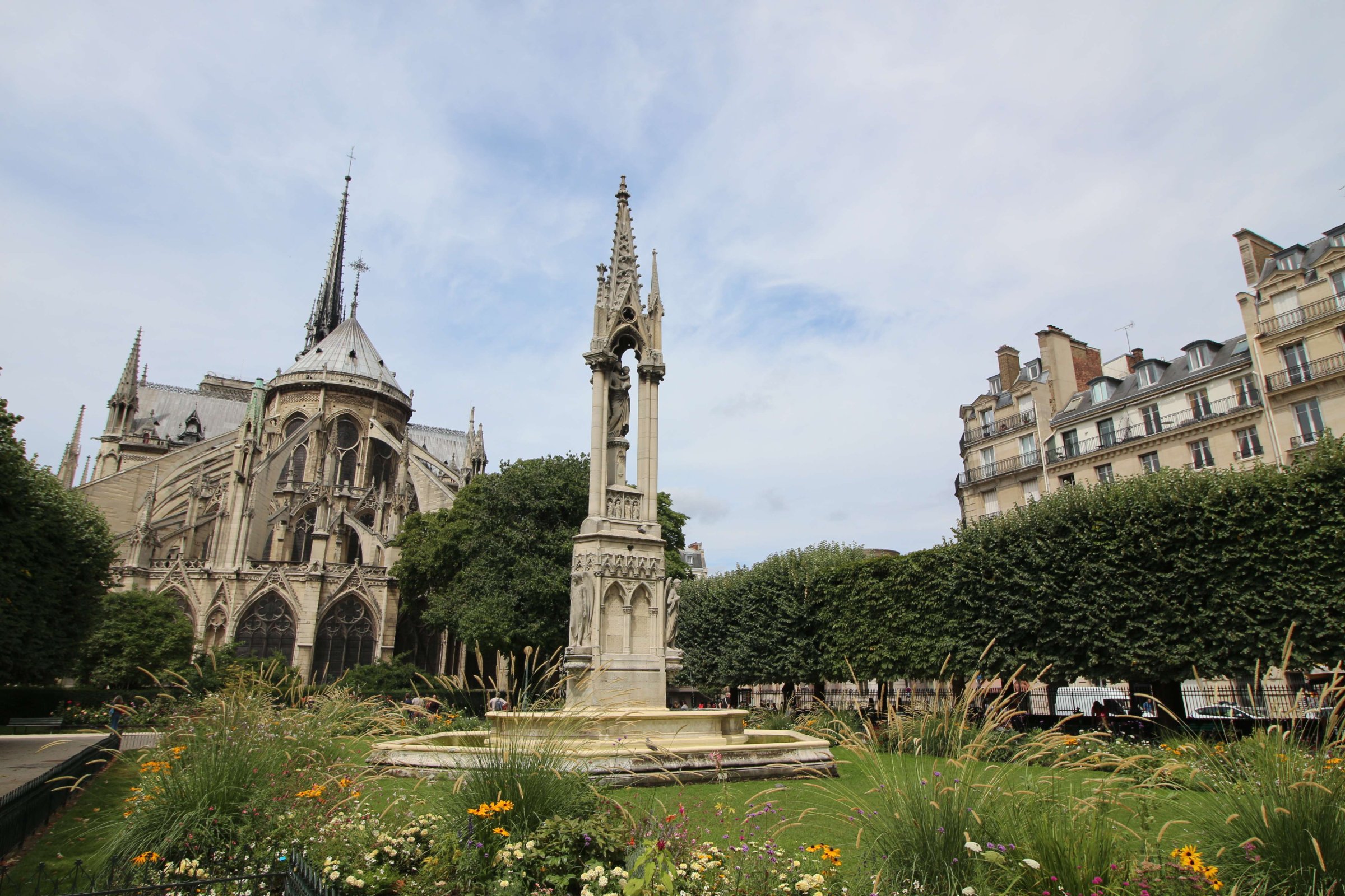Потом мы вышли случайно на Собор Парижской Богоматери. Мы его сначала не туда поставили на своей карте и в итоге сначала не могли найти, но потом, забыв про него, сами же на него и вышли.