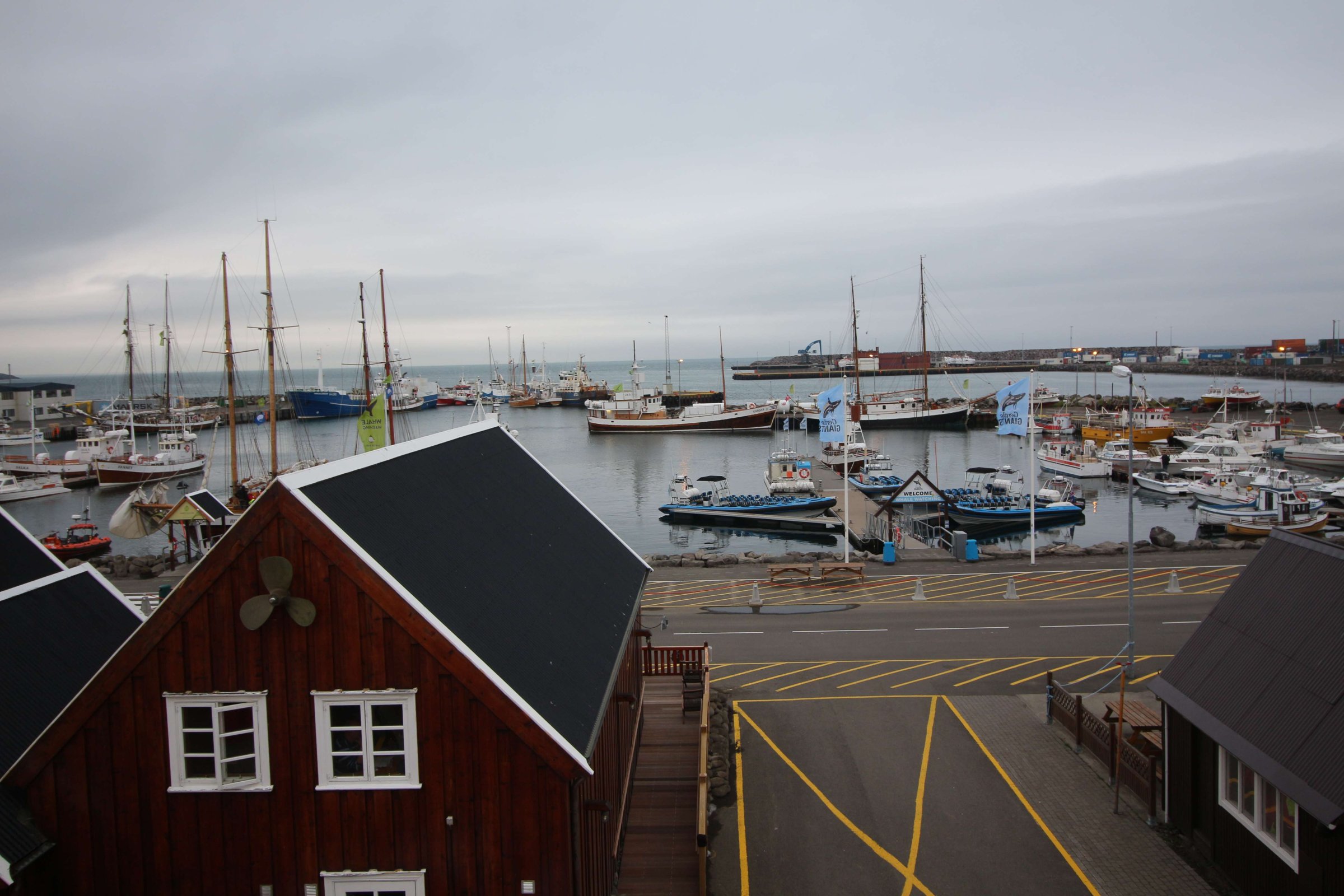 На этом всё. Зарядил сильный дождь, и мы отправились в нашу забронированную гостиницу в город Логар. Проехали через город Хусавик и примерно прикинули, откуда там уходят корабли в китовые круизы.
