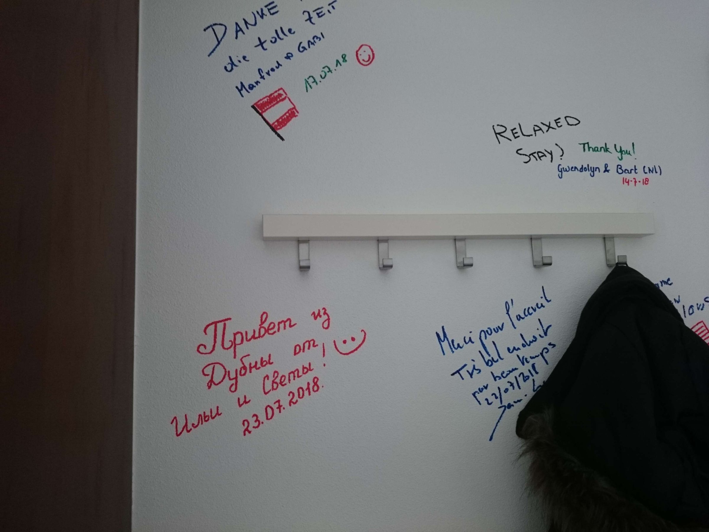 Утро 24-го июля. Кушаем бесплатный завтрак, собираемся в путь. Девушка в отеле предлагает нам оставить им на память нашу подпись на стене.