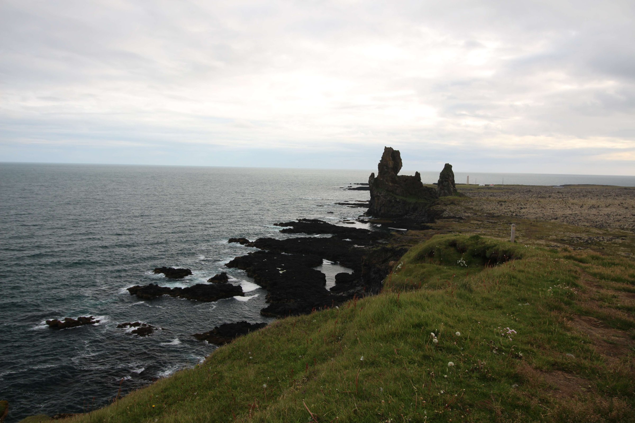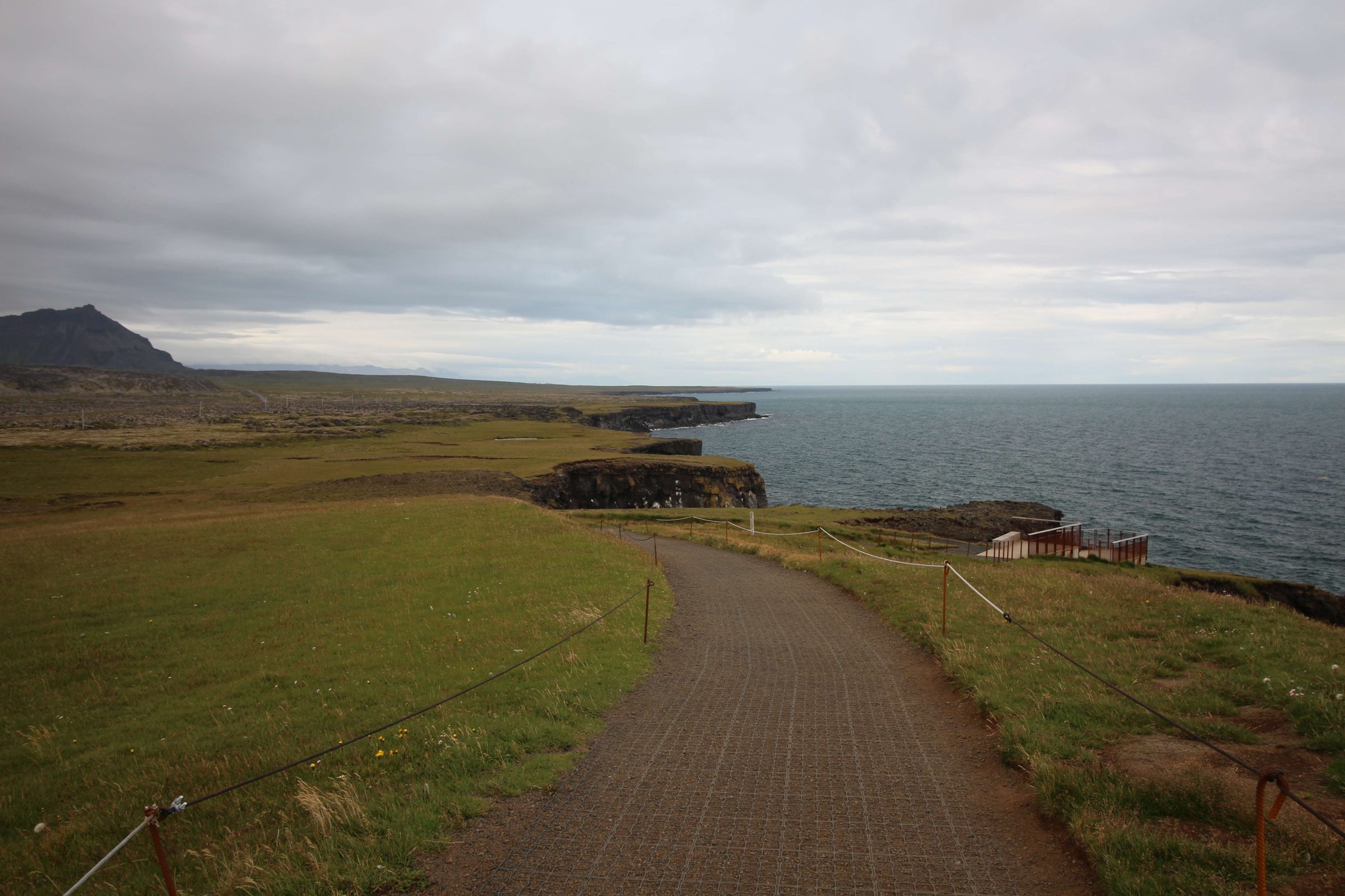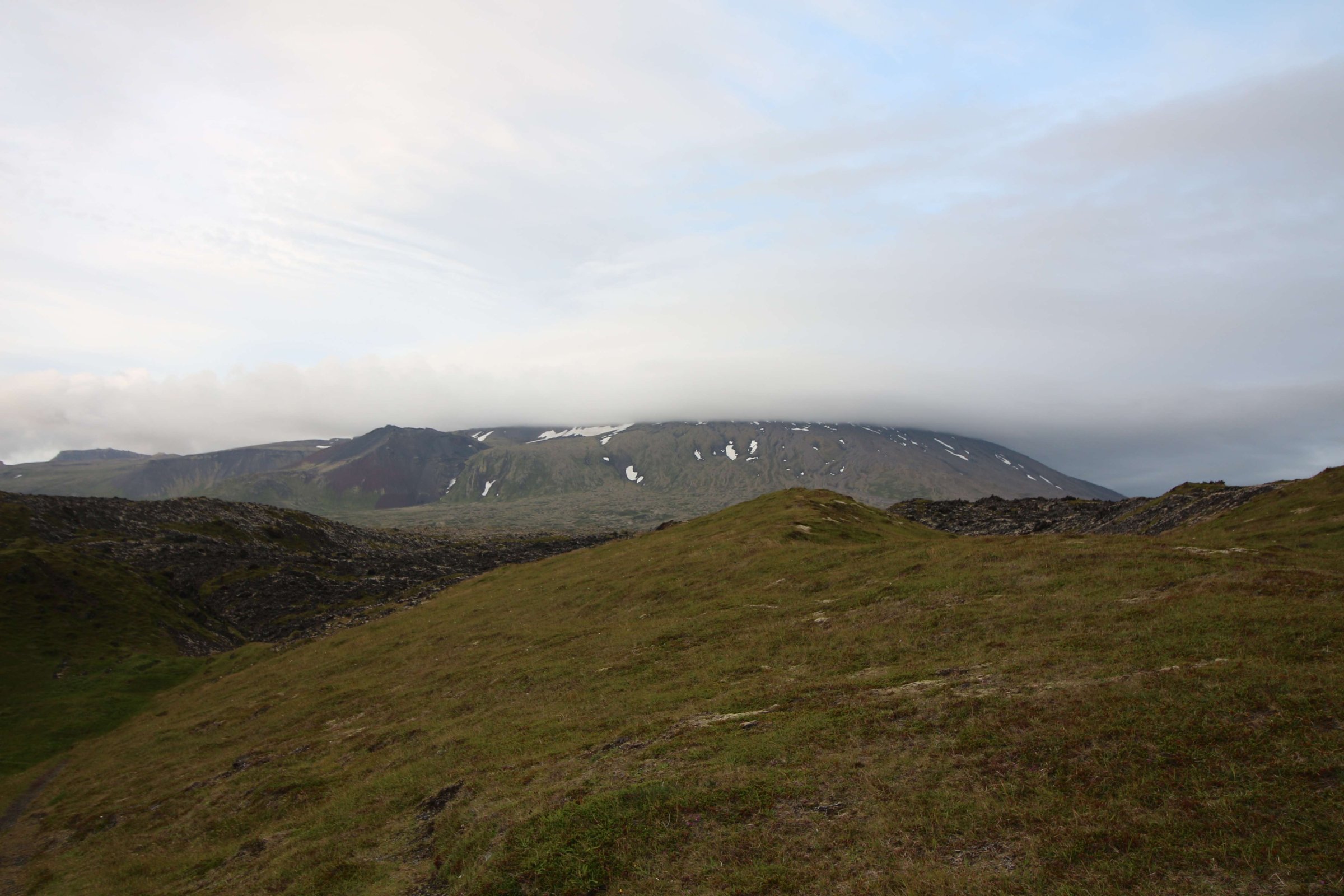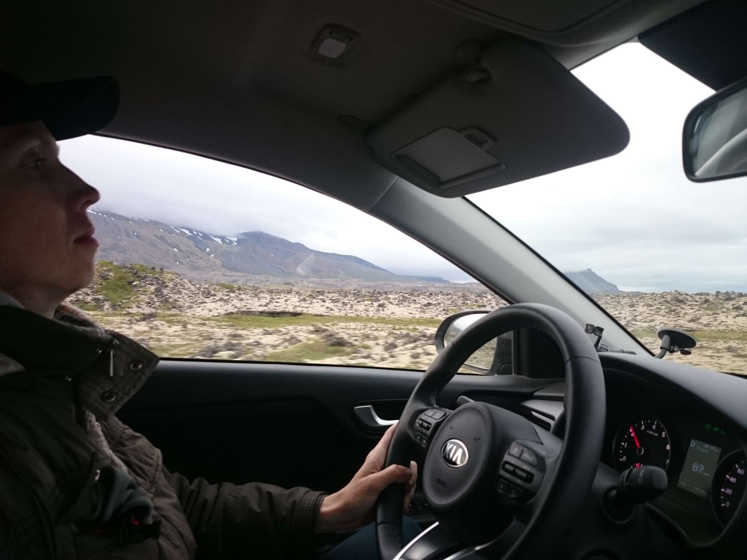 Наш путь лежал на полуостров, на котором находится ледник Снайфедльсйёкюдль, - потухший вулкан. Но, к сожалению, рассмотреть его в этот день у нас не получилось, так как он был за облаками.
