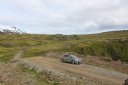 Она ушла дальше собирать дань с других кемпингующихся, а мы в это время собрались, вскипятили себе чайник, налили воды в термос и отправились в путь. Решили проехаться по высокогорной дороге под номером 570 рядом с ледником. Эта дорога числилась в некоторых источниках как F-road. Но в некоторых других источниках она была отмечена как обычная дорога. Мы решили рискнуть. Поехали, но после нескольких крутых гравийных подъемов немного опешили и решили дальше не ехать. Припарковались на площадке и стали думать, куда ехать, - назад или вперёд. В этот момент рядом с нами припарковался минивэн группы туристов. Я поспрашивал у них про эту 570 дорогу. По их мнению, мы могли проехать по ней на нашей машине. Просто в некоторых местах нужно было объезжать большие камни, лежащие на дороге.