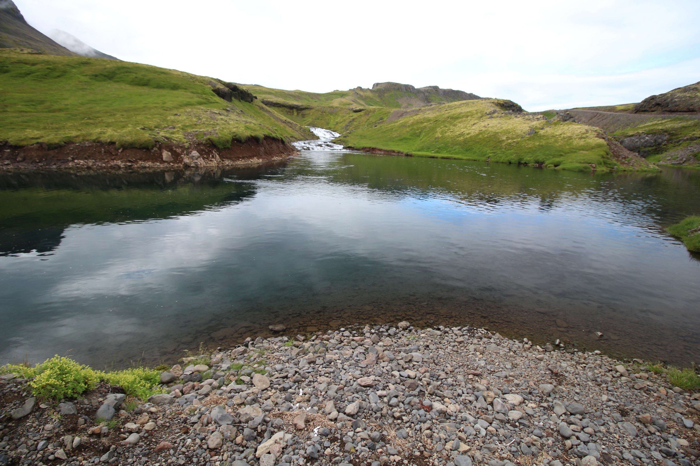 Пока собирались, к нам подошла бабушка и начала записывать наши номера машины. Как оказалось, она пришла собирать дань с тех, кто был в кемпинге. Да, кемпинг оказался всё-таки платным. Я оторвал от сердца 2000 ISK и отдал ей, а после мы немного поговорили. Когда она услышала, что мы из России, то сказала, что она в этом кемпинге видит русских в 3-ий раз. Также она рассказала, как когда-то плавала в России на теплоходе от Москвы до Астрахани. Рассказала, что её удивила встреча с каким-то попрошайкой, который просил денег, хотя у него самого были золотые зубы.