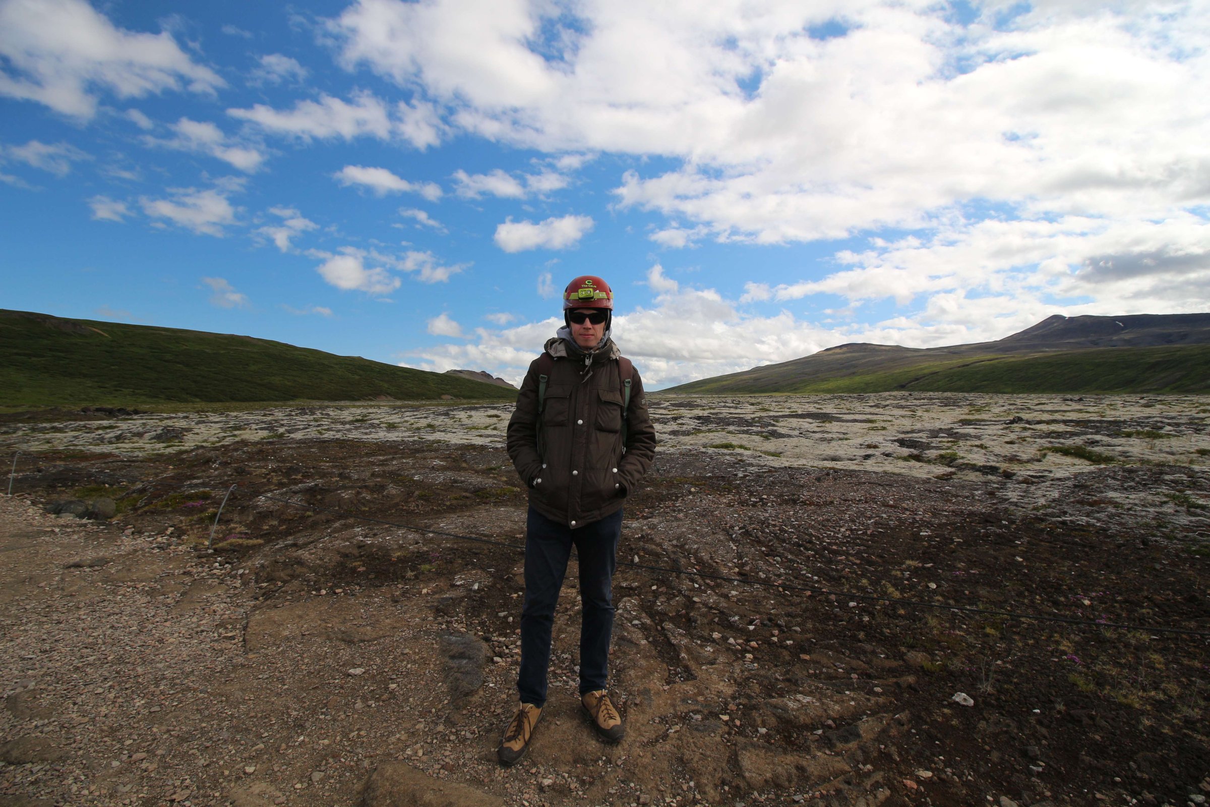 Утро 27-го июля. Встали, собрали наши пожитки и поехали в местечко под названием Husafell. Там я нашёл хорошую, но дорогую экскурсию в ледяную пещеру на этом