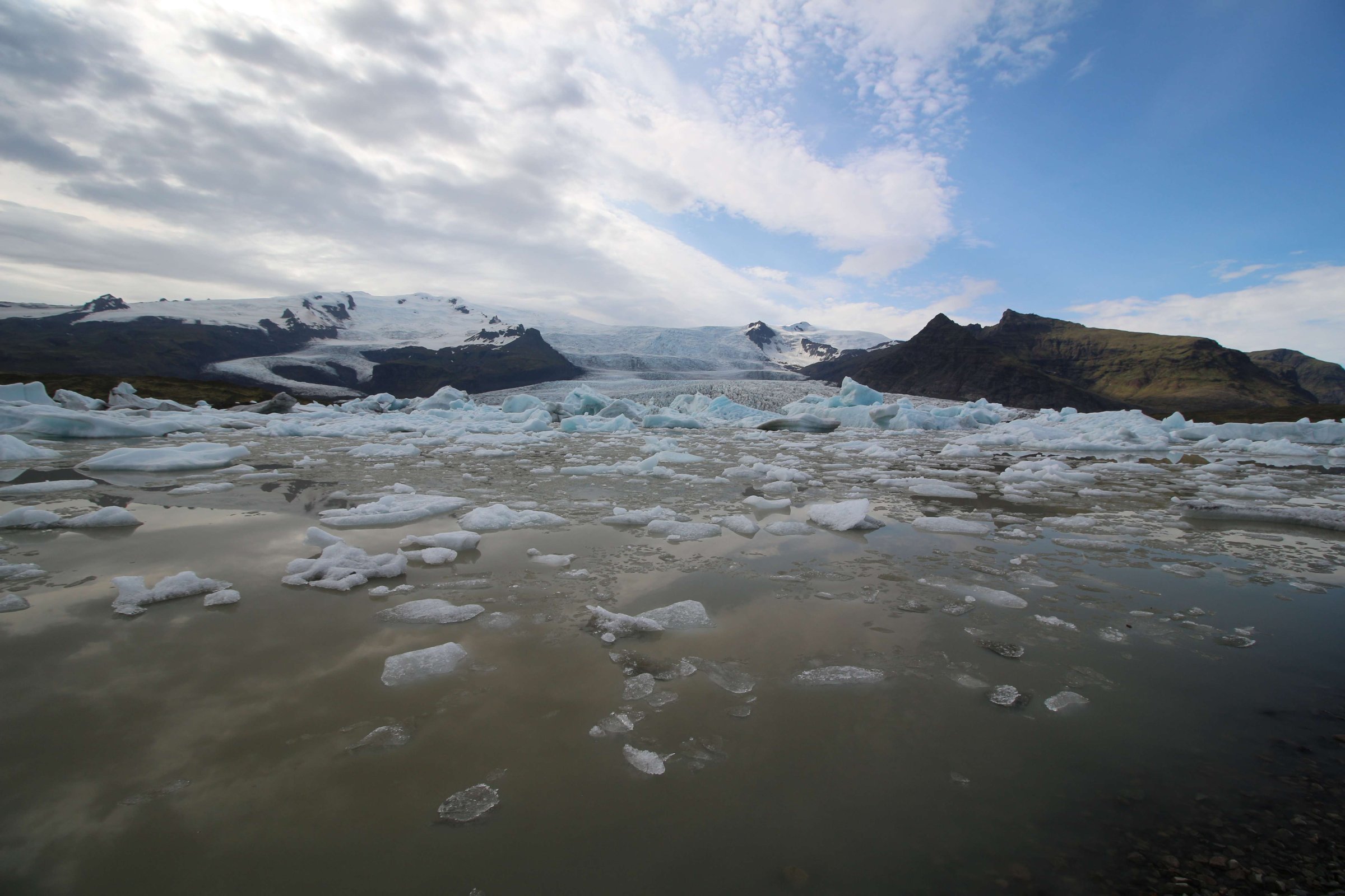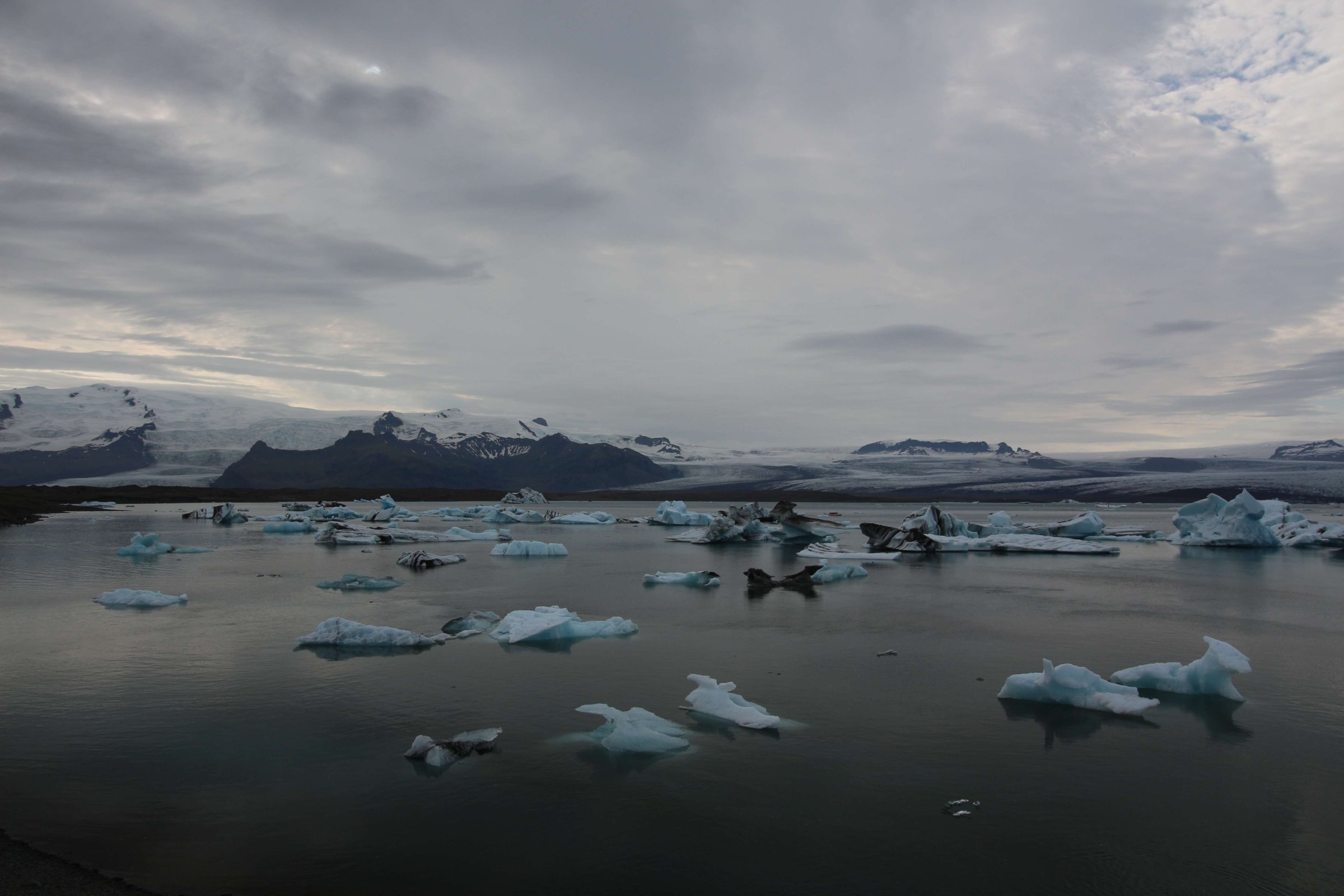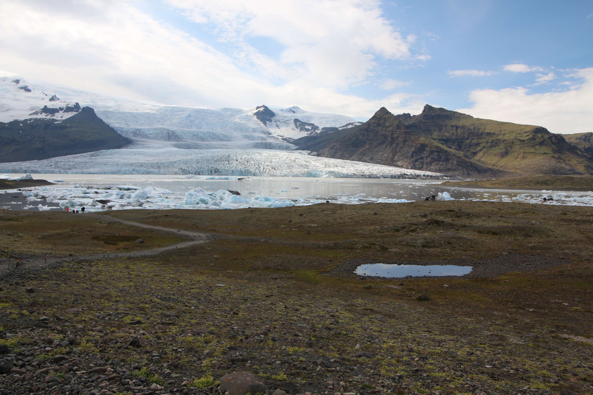 Сидя там, начали замечать, что на нас надвигается дождевой фронт. Возможно, тот, что был утром в кемпинге. Срываемся и бежим к машине, так как за сегодня нужно было ещё много чего успеть пройти. Следующая точка - это небольшая ледяная лагуна. Там проводим минут 30, любуясь ею.