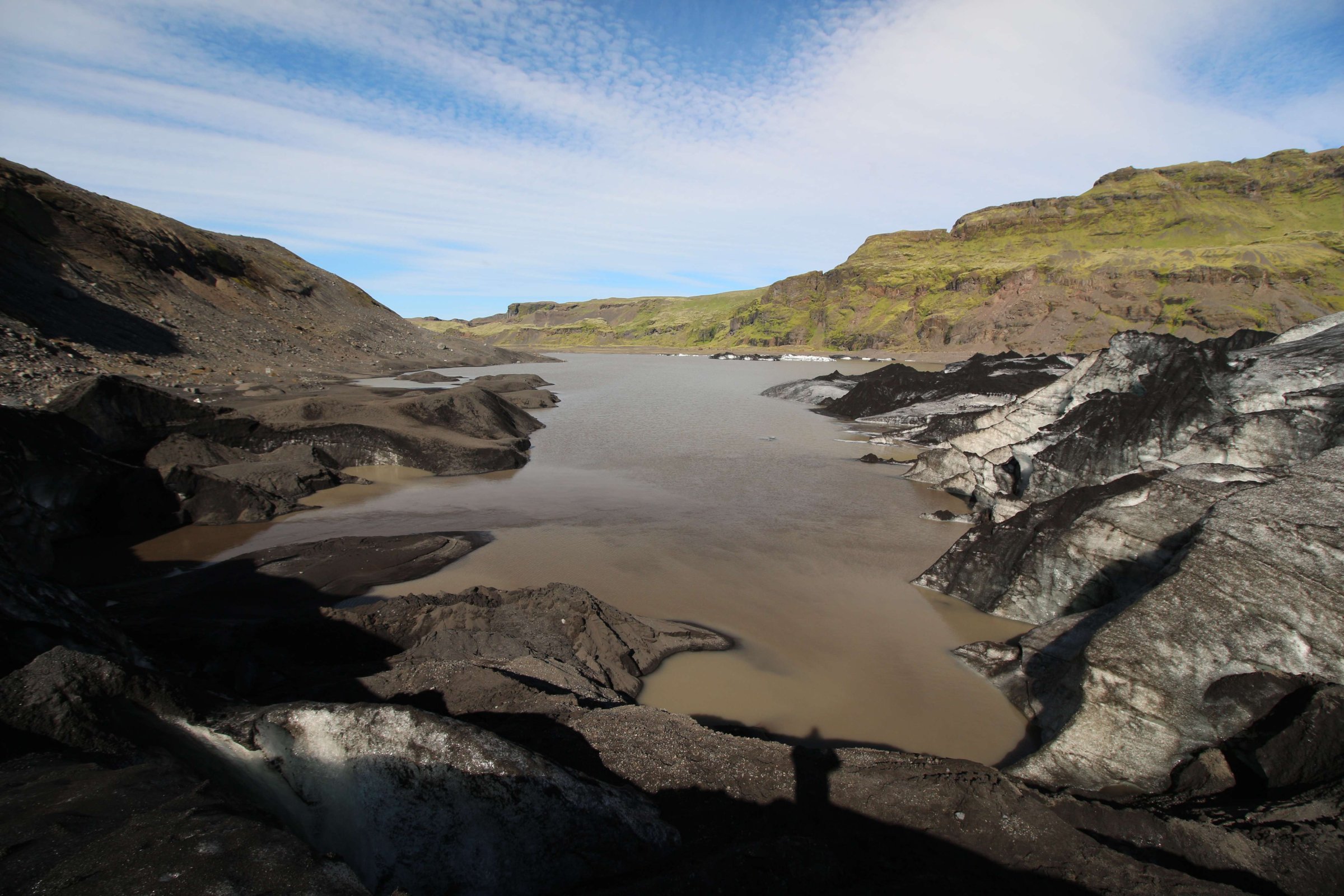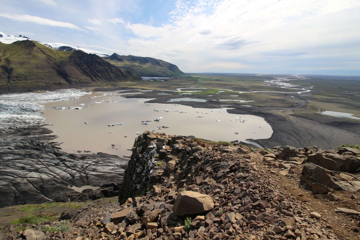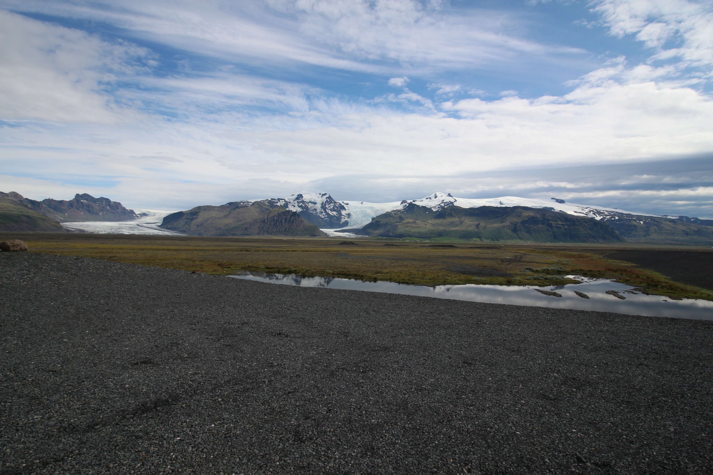 Сидя там, начали замечать, что на нас надвигается дождевой фронт. Возможно, тот, что был утром в кемпинге. Срываемся и бежим к машине, так как за сегодня нужно было ещё много чего успеть пройти. Следующая точка - это небольшая ледяная лагуна. Там проводим минут 30, любуясь ею.