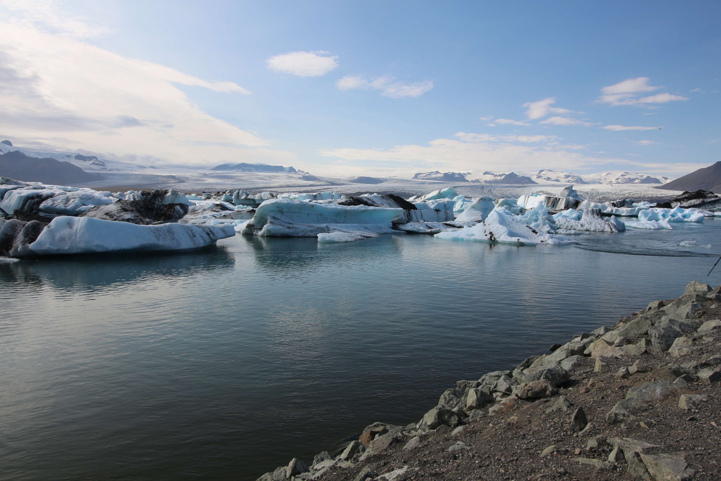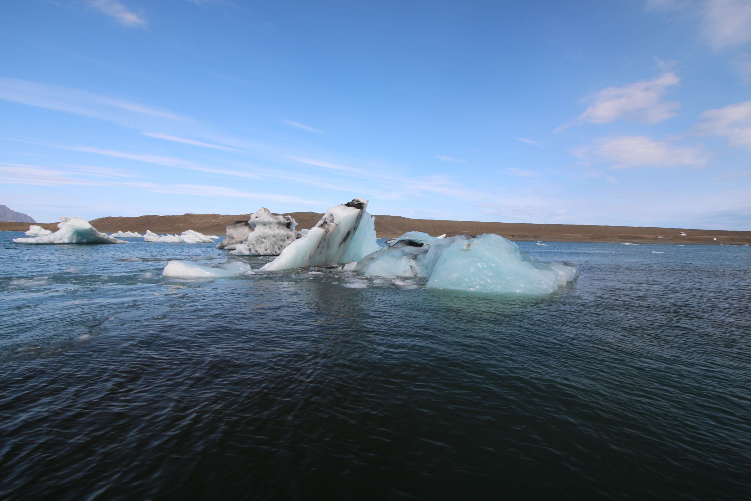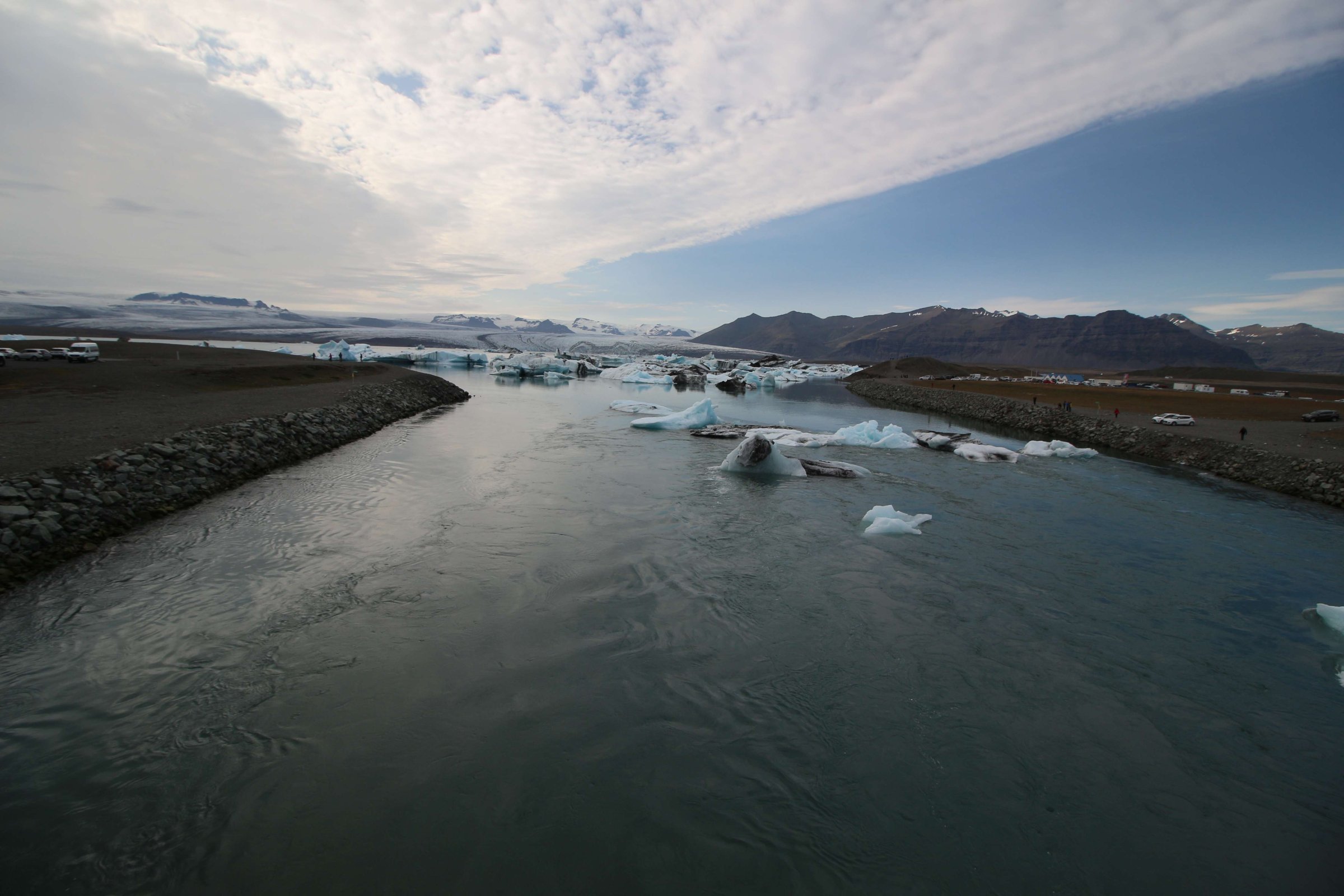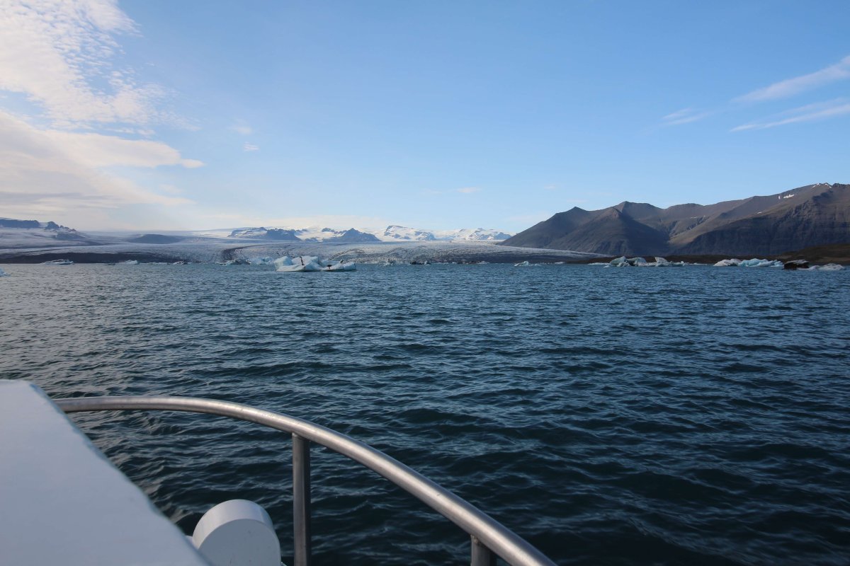 Но впереди у нас следующая лагуна, намного больше, чем эта. Добирались мы до неё, а в это время дождевой фронт пытался нас нагнать. Но мы успеваем и плюс покупаем билеты на амфибию, чтобы поплавать по ледниковому озеру. Стоимость билетов - 7 000 руб. (11 000 ISK) на двоих.