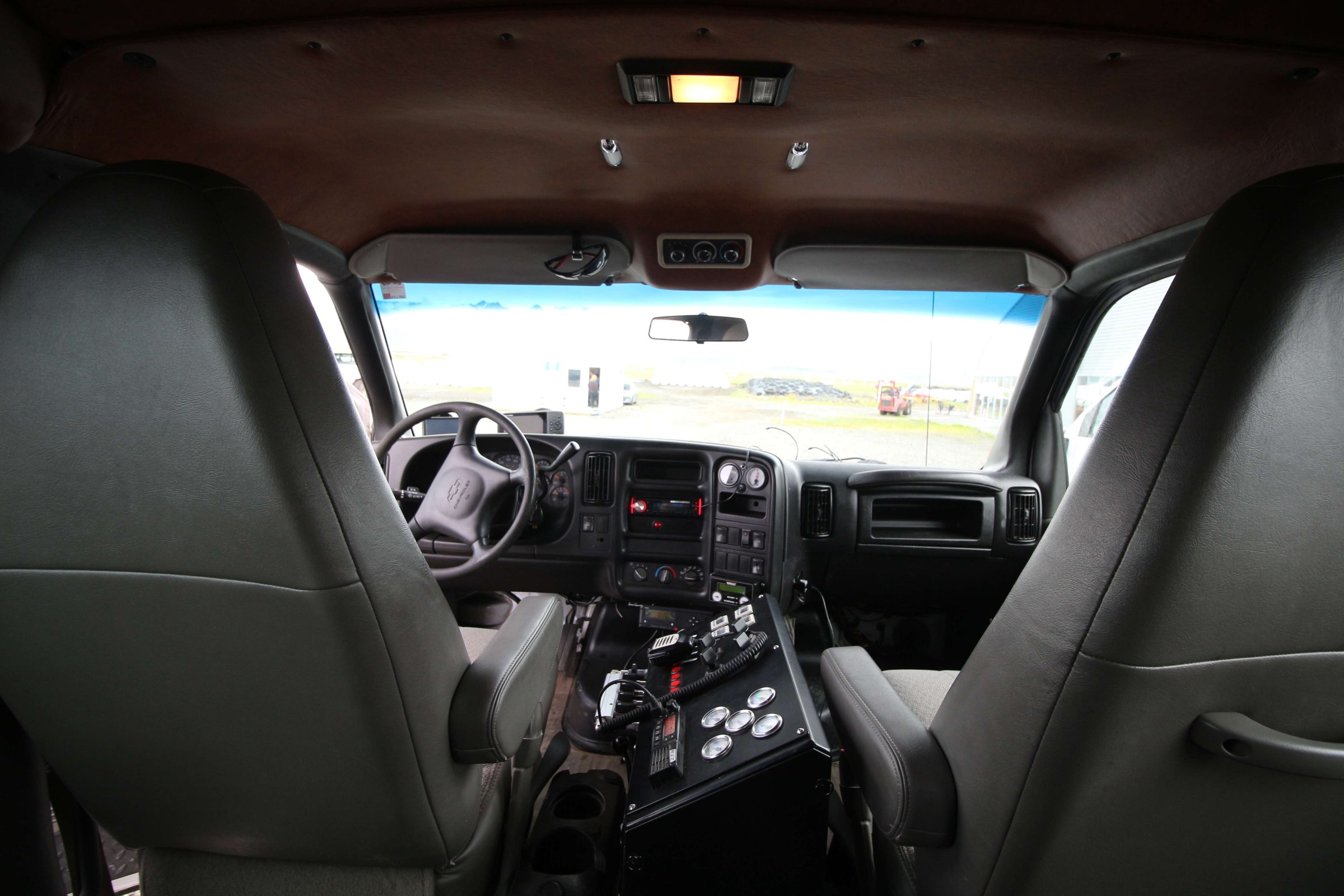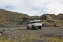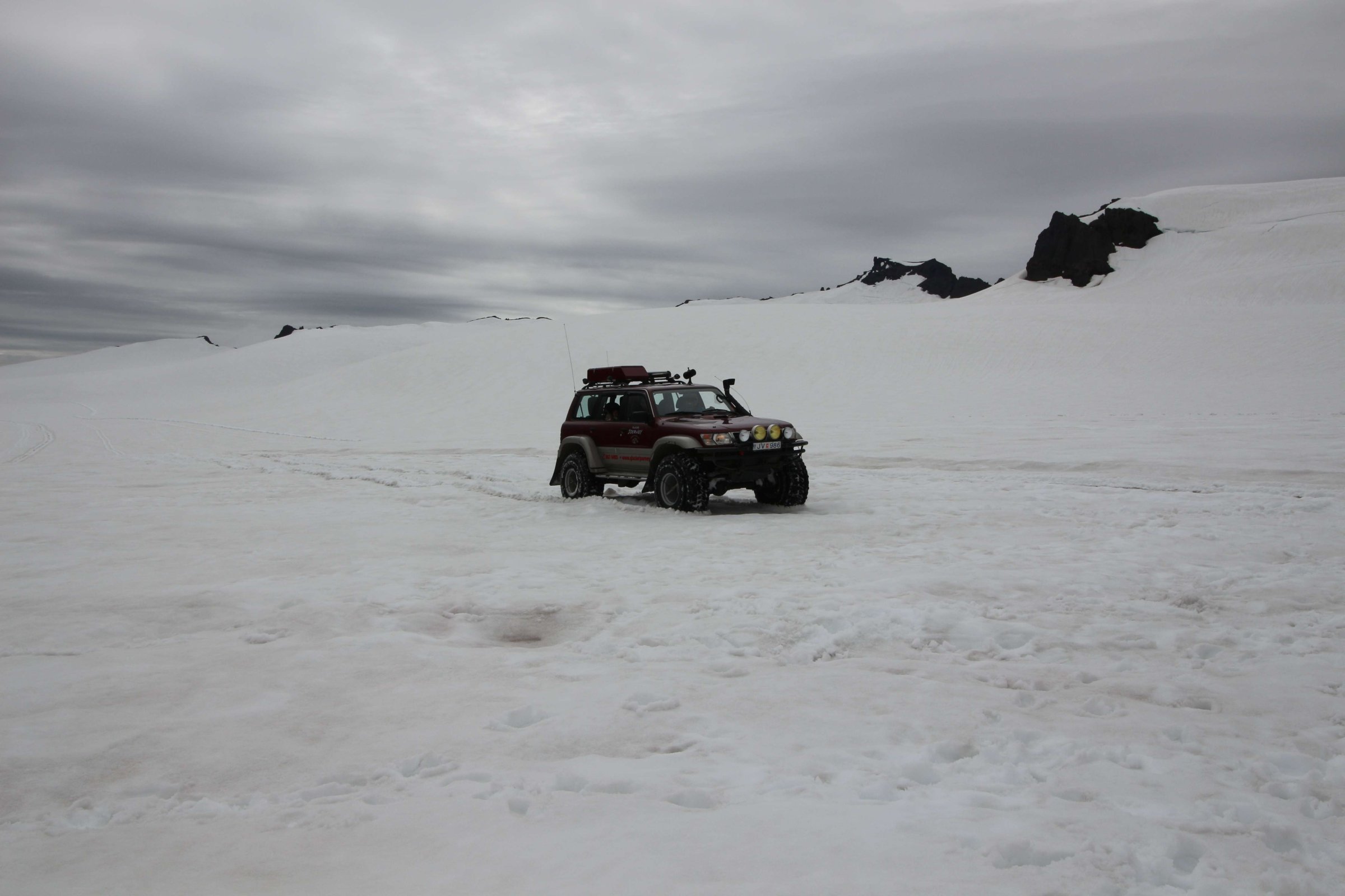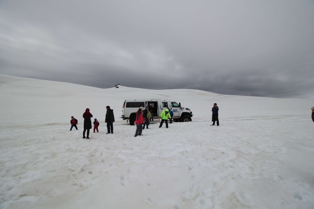 компания продаёт туры на ледник Ватнайёкюдль(самый большой ледник Европы) на джипах. Бронировать тур заранее мне не хотелось, так как я не люблю подстраиваться под что-либо. Ну и плюс мы не знали, насколько хорошая погода будет в это время. Поэтому мы решили просто приехать и на месте узнать, есть ли билеты. Так и сделали. Приехали, узнали, и, как оказалось, у них было зарегистрировано около 10 китайцев на этот тур + ещё 5 мест было свободно. Я купил билеты (22 500 руб. на двоих), и мы побежали собираться. Когда залезли в джип, к нам подошел познакомиться гид. Он спросил, откуда мы, и когда узнал, что мы из России, заговорил на ломаном, но довольно неплохом русском. Как оказалось, он из Латвии, и в прошлом году он работал на Эльбрусе. Также он сказал, что русских видит нечасто. И ещё он рассказал, как в свободное время ходит в горы со спальником, просто для тренировки. Вот так выглядит машина изнутри: