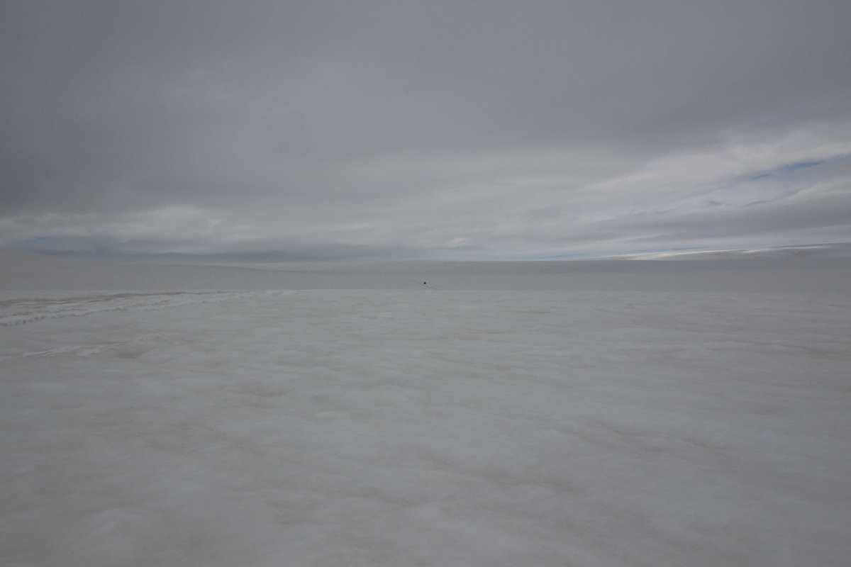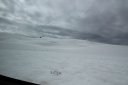 Вот на следующей фотке черная точка - это джип, который уехал далеко на ледник, пока мы резвились в снегах. В Дубне, замечу, в этот момент было около +28 градусов.