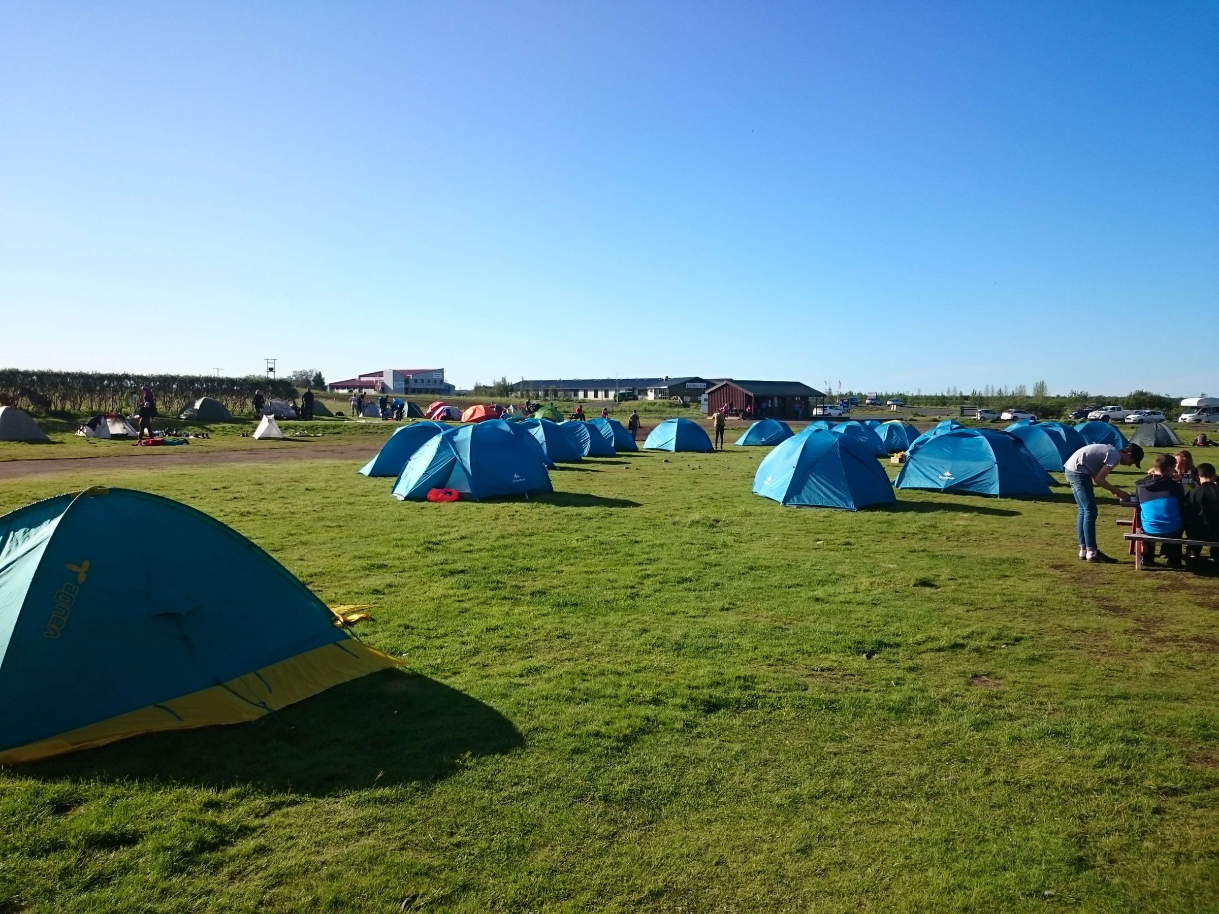 Доехали до кемпинга и заселились. Он был более менее приличным, и даже душевых кабинок было в достатке, так что очереди в них не было. Правда, они были за отдельную плату. Кидаешь 90 руб. (150 ISK) и моешься 5 минут под горячей водой. Площадка под палатку была с небольшим уклоном, что вызвало небольшой дискомфорт, но мы как-то справились.