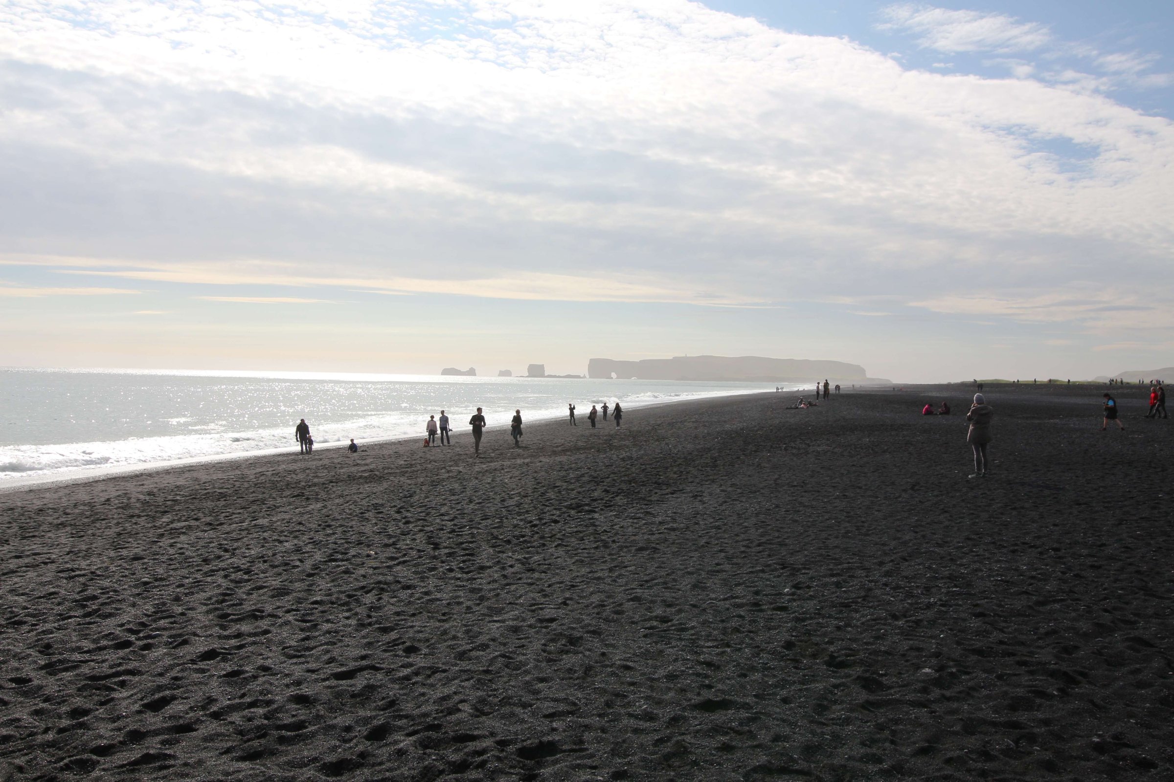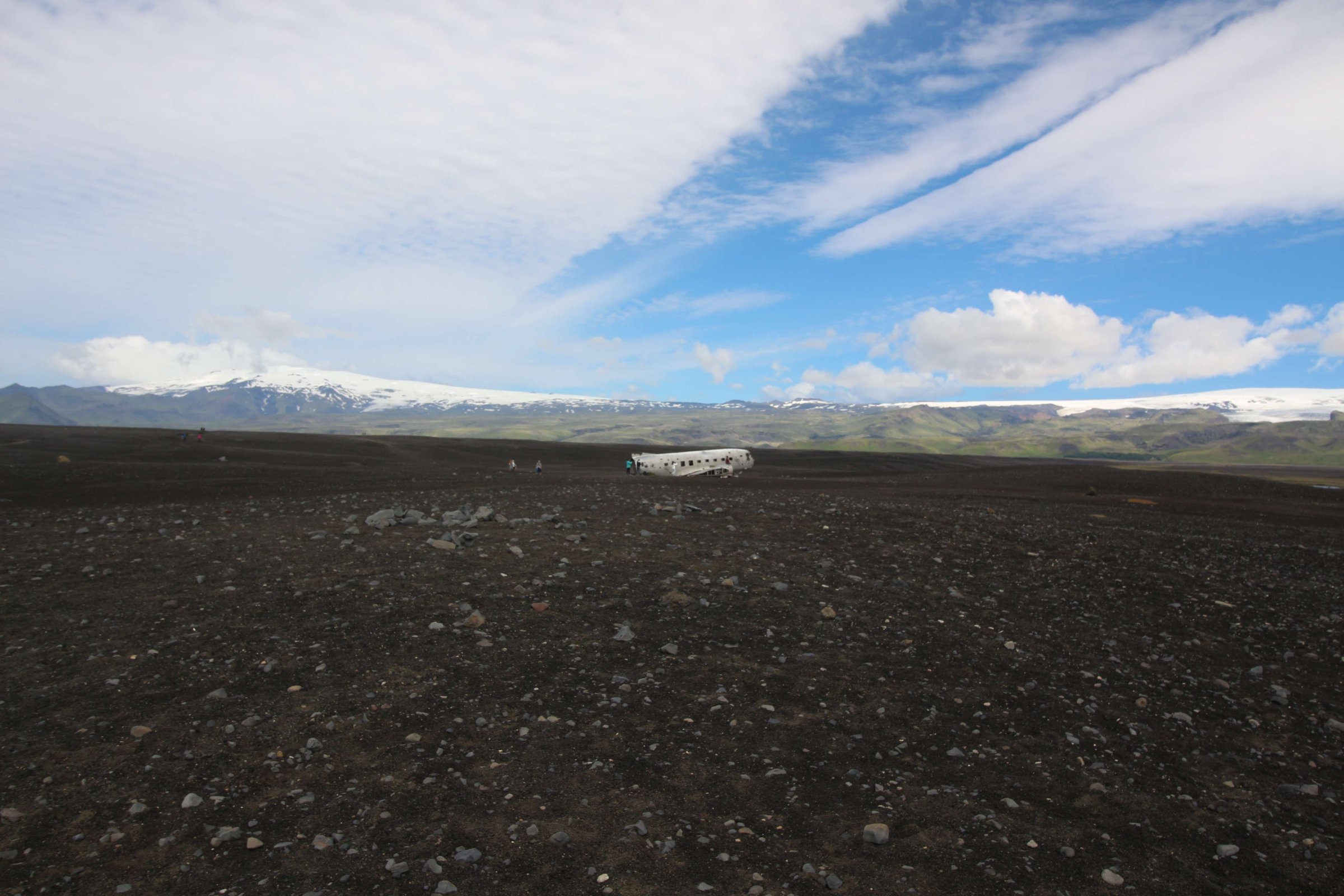 Вернулись обратно, перекусили прямо на парковке и поехали в следующее место. Это был самолёт, разбившийся на чёрном песке рядом с океаном. Запарковались на парковке, где было уже много машин, и пошли. Топать нам предстояло около 3.7 км в одну сторону.