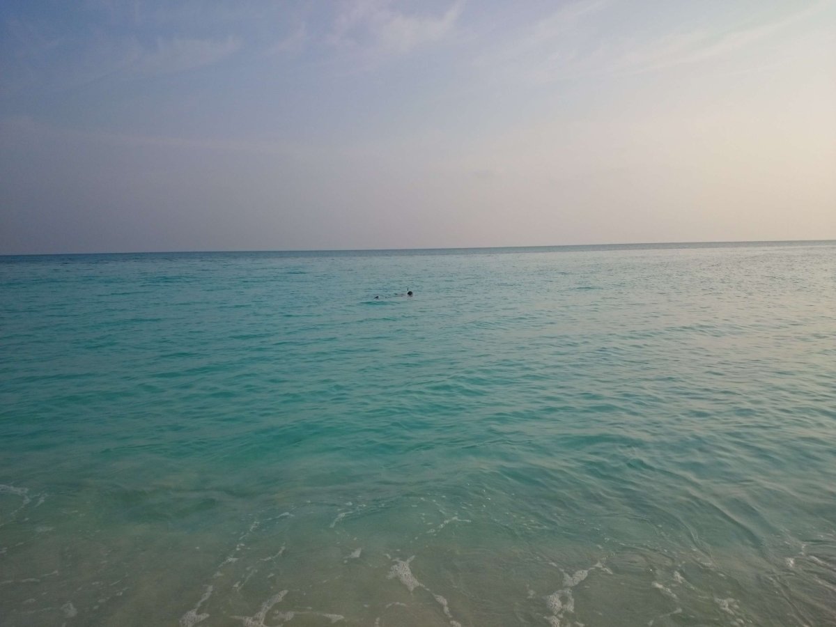 Мы много плавали с масками и смотрели на небольшие кораллы, которых у этого пляжа было мало. Света вообще боялась заходить в воду, начитавшись всякого про подводных жителей. Мне же было всё равно. Я просто старался не врезаться в коралл. Также мы плавали в коралловых тапочках, чтобы ни на что плохое не наступить. Там какие-то колбаски лежали на дне. Не знаю, что это такое и живое ли оно было, но наступить на них было стрёмно. А так, конечно, океан супер - вода тёплая, воздух горячий, волн нет внутри атолла. Единственная проблема - это только солнце, от которого лучше скрываться, но о нём я расскажу попозже. Первые дни нам как-то удавалось избежать его воздействия.