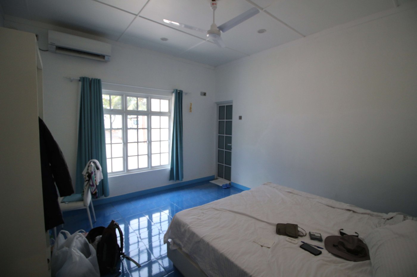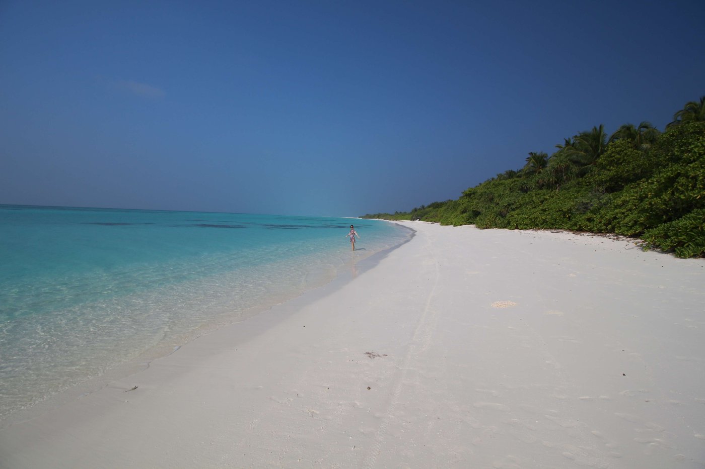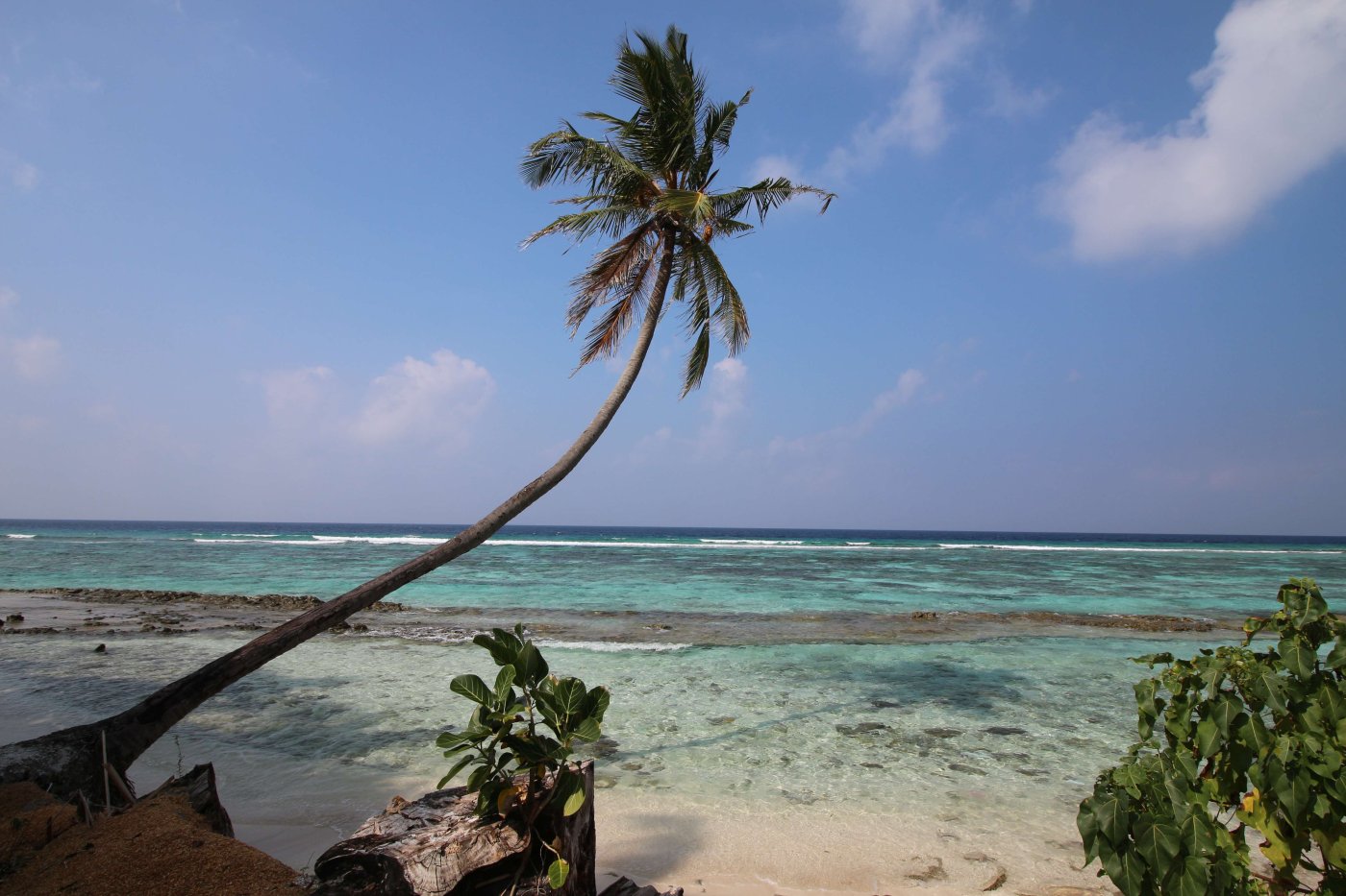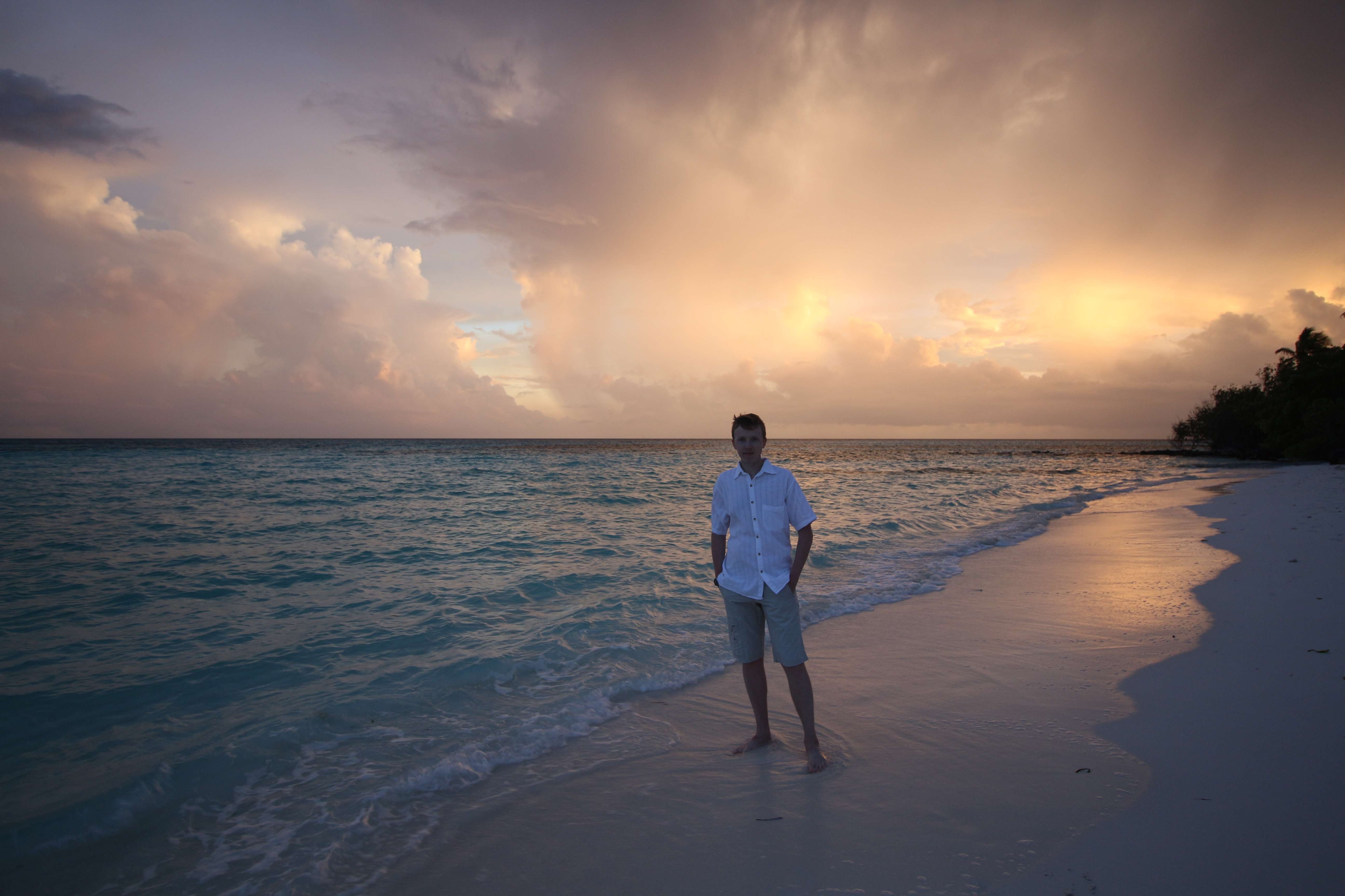 Времени у нас было предостаточно, поэтому мы пошли искать, как нам перебраться на соседний остров. Нашли кассу, заплатили какую-то маленькую сумму, подождали лодку и вступили на неё. Чемоданы нам помогали загрузить местные. Было необычно плыть на лодке, на которой белых было 5-6 человек, а все остальные - чернокожие. Для нас такое было первый раз в жизни. Добрались до острова Мале, и там начался ад: куча мотоциклов и мопедов, снующих туда-сюда, какие-то машины ездят, все гудят. Я начал смотреть по карте на телефоне, куда нам идти, но я не успел это сделать, так как к нам подбежал какой-то местный парнишка и спросил, куда нам идти. Предложил найти такси, но мы сказали, что мы пойдём пешком, и он нас с радостью безвозмездно туда проводил. Остров Мале очень маленький, но перемещаться по его узким улочкам было очень сложно, да ещё и с чемоданами, которые приходилось поднимать из-за неровного покрытия. Пришли в отель, а там на ресепшене кондей) Сразу стало прохладно и боязно за то, что можно простыть. Стоимость каморки, которую мы сняли, была очень большой - порядка 64 доллара за ночь, и это за номер со своей ванной комнатой и туалетом, но без окон. Окошко было только внутрь дома площадью около 1 кв. метра, и там постоянно кто-то сверлил. Мы разобрали вещи и лежали зависали на телек, в котором ничего не было понятно. Там был какой-то индийский телеканал, в котором говорили про сегодняшнее полнолуние. Но нам что-то совсем не хотелось выходить на улицу в этот ад, поэтому мы провалялись весь вечер на кровати. Утро 1-го февраля. Мы проснулись, и я увидел сообщение от управляющего отелем, что отправление лодки смещается с 9 утра на 10:45, поэтому мы смогли неспешно собраться и пойти до причала. Солнца там очень боялись, поэтому я оделся не по погоде: длинные рукава рубашки, шляпа с длинными полями. Дошли до места причала, я побегал поискал лодку, но не нашёл. Но потом к нам подошёл человек, представился, и мы поняли, что это за нами. Он вручил нам билеты на лодку и показал, где она будет, и через некоторое время она приплыла. Он нас туда посадил, и мы поплыли. И опять-таки белых особо на ней не было. Мы ещё боялись, что мы очень устанем на ней прыгать по волнам и всё себе отобъём, а если она ещё будет без крыши, то и сгорим, и простынем. Всё-таки плыть в таком положении нам предстояло около 2-х часов до острова Гоиду (Goidhoo), а потом нужно было ещё плыть от него около 15 минут на соседний остров. В итоге всё прошло неплохо. Лодка была с тентом, прыгала она не очень сильно. Когда Мале скрылся вдали, можно было ощутить, что мы на маленькой лодочке посередине океана куда-то плывём. И если вдруг мы неожиданно утонем, то никто даже не будет знать, где мы. Мой роутер иногда славливал интернет, но это в основном было тогда, когда мы проплывали какой-то остров. Приплыли на Гоиду, вышли из лодки, и тут же нас там встретили другие люди, которые были из Вилубич. Они так и спросили: “Вилубич?". Мы сказали: “Yes". И они посадили нас в свою лодку (она уже была без навеса), и мы поплыли дальше. На острове нас встретила девушка и проводила в гестхаус. Идти пришлось недолго, метров 100) Там нас посадили сразу за стол, каждому дали кокос с трубочкой, и мы его долго пили - он был холодный, и пришлось долго греть его во рту. А пока мы сидели, нас спросили о том, что мы хотим там делать, и как мы будем питаться. Ну насчёт развлечений 