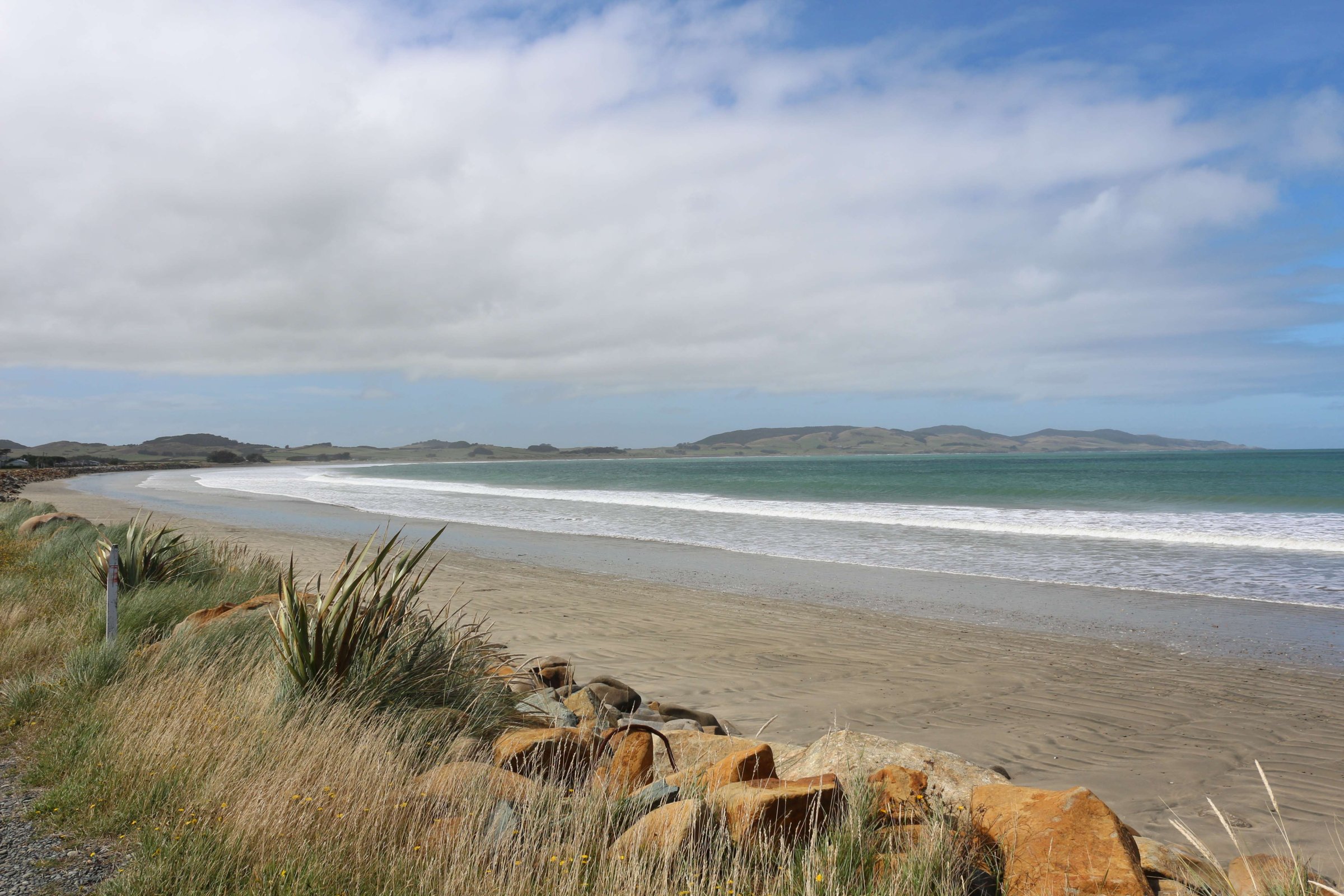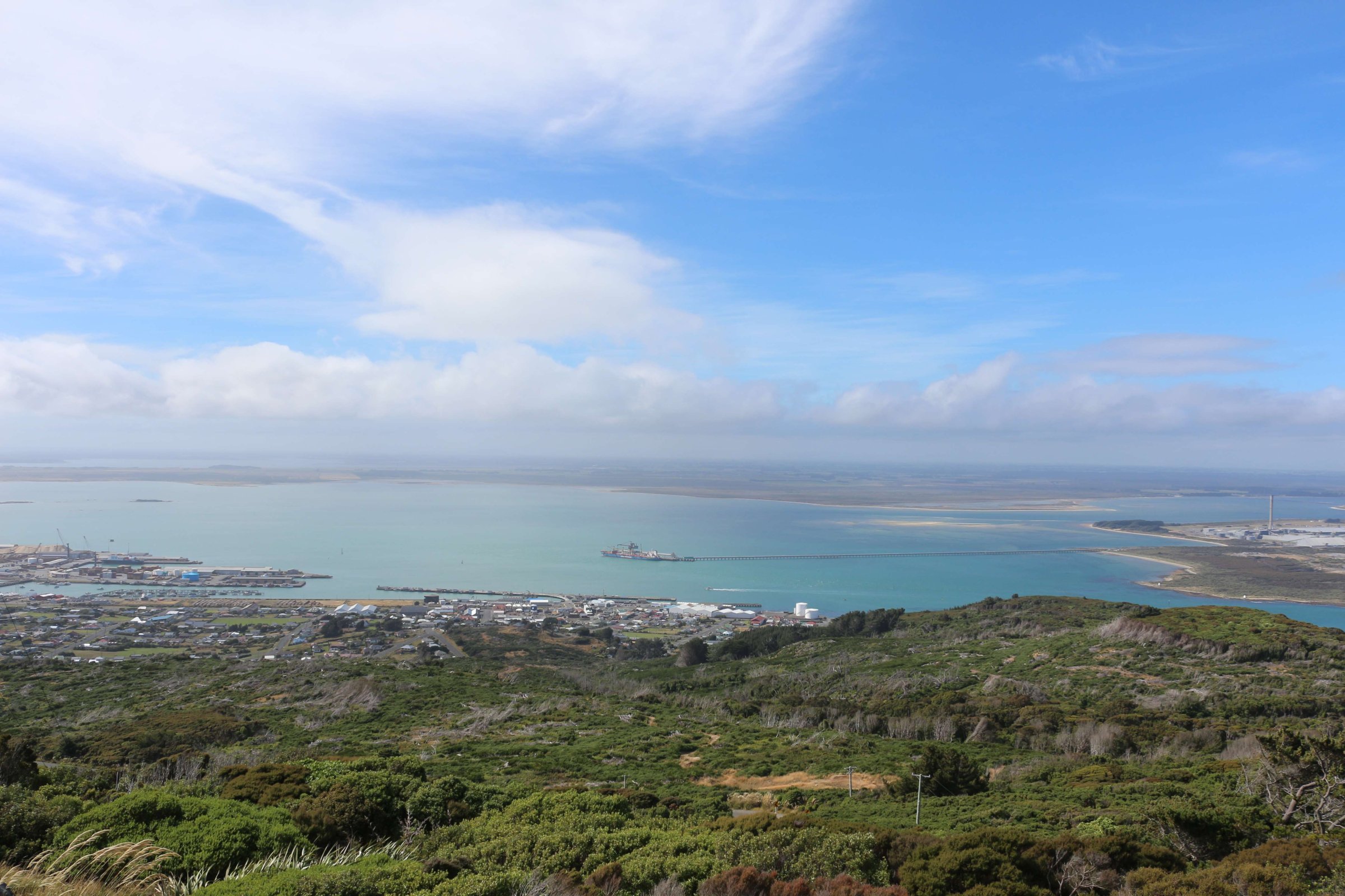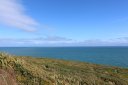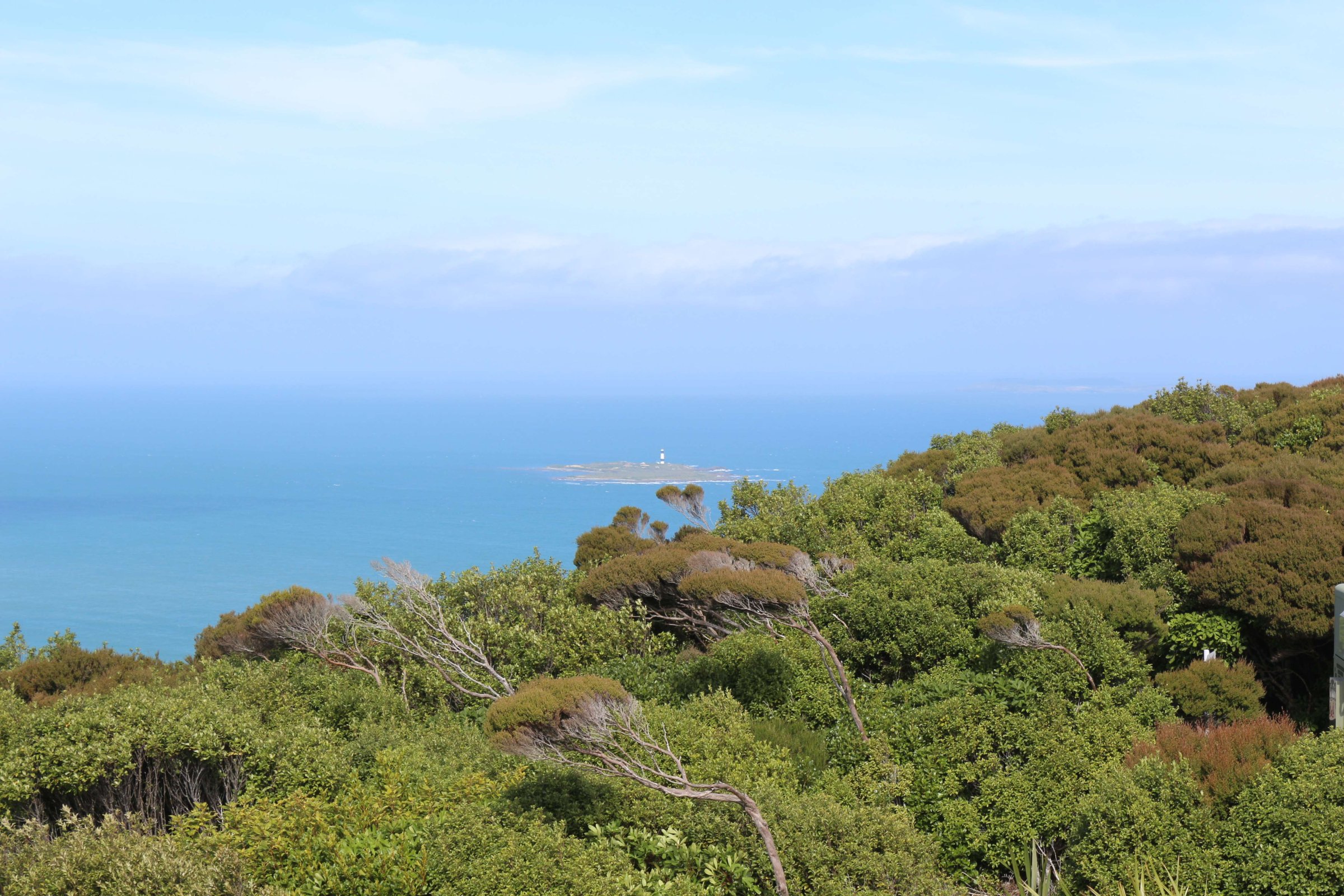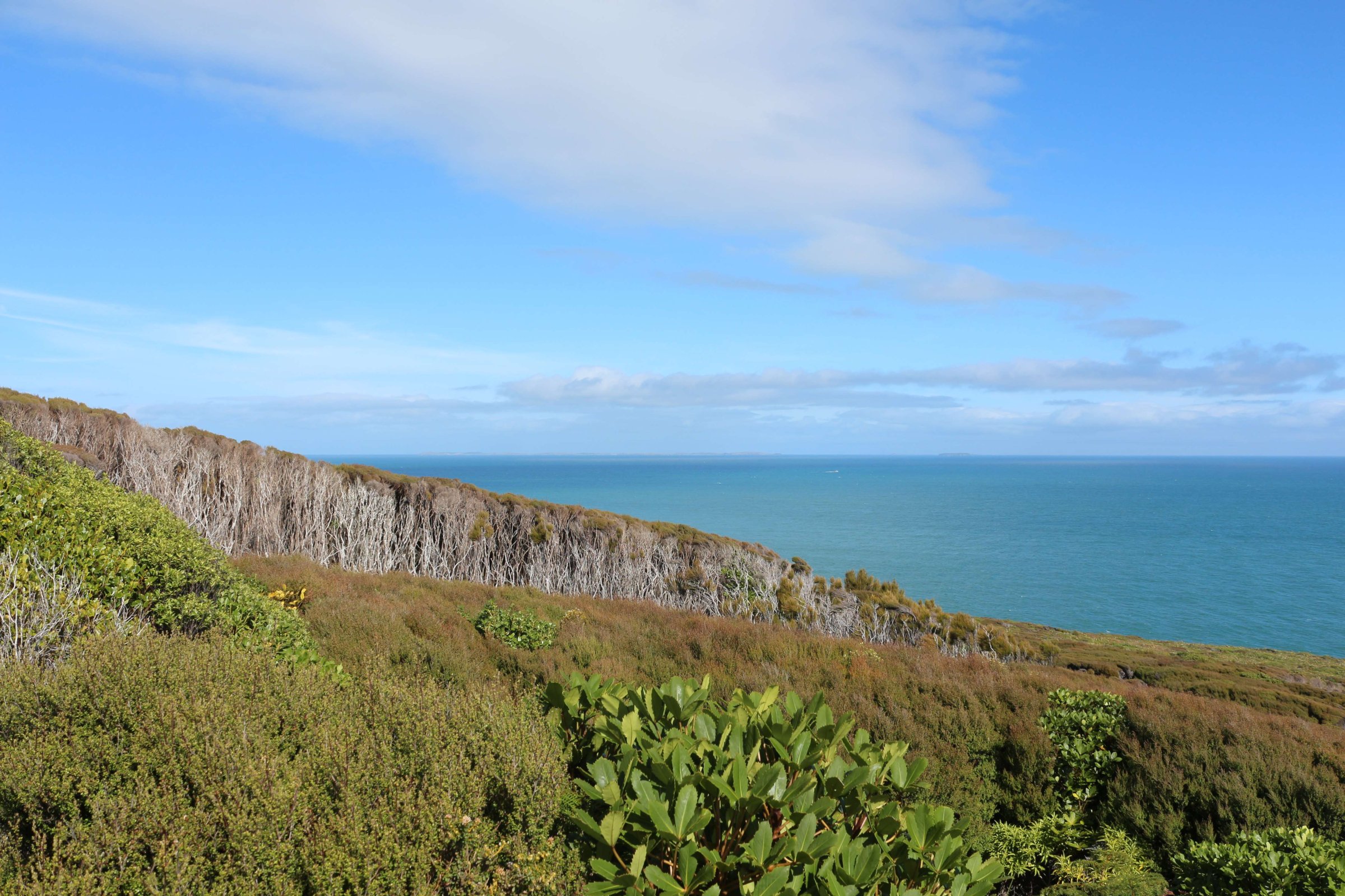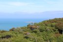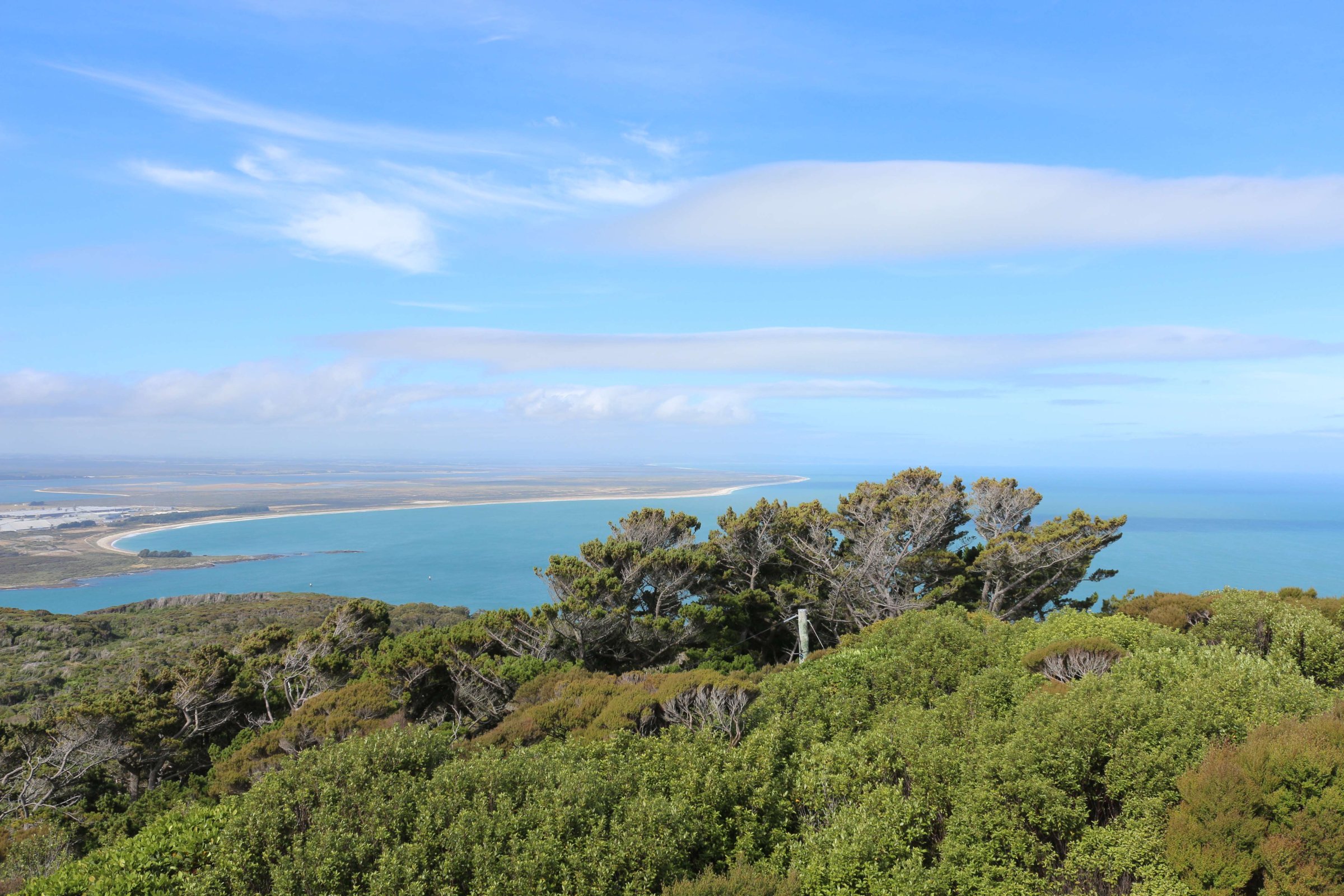 Далее я поехал на полуострова Блафф(Bluff). Там есть возможность забраться на смотровую площадку и осмотреть всё вокруг. После посещения этой площадки я допустил ошибку: уходя, я заметил табличку с направлением на тропу, которая ведёт на другую смотровую площадку, время прогулки до которой было 25 минут. Я, не раздумывая, пошёл. Так как тропа вела меня сквозь высокие кустарники, я не видел, далеко ли мне ещё идти, а через некоторое время тропа ещё начала вести вниз, и я уже засомневался, стоит ли мне идти дальше, ведь ещё предстоит путь обратно, и он уже точно будет сложнее, так как нужно будет идти в гору. Так вот я прошёл 25 минут и очутился на красивом побережье.
