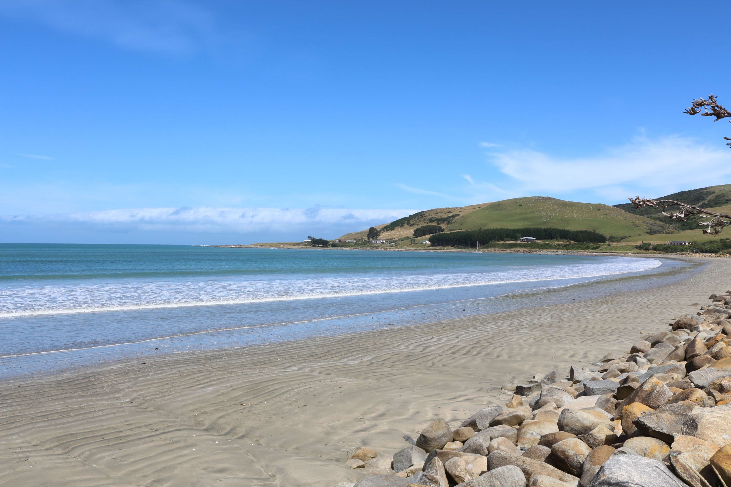 Утром 10-ого февраля я решил не ездить в Милфорд Саунд в третий раз, а отправился на южное побережье южного острова Новой Зеландии в город Иверкаргилл. В 70 км от Манапори горные виды закончились, и начались степи. Доехав до побережья океана, я встретил там необычные деревья, растущие как бы вбок. Всё это из-за того, что с океана часто дуют сильные ветра, и эти деревья так клонит всю их жизнь, поэтому они приобретают такую форму.
