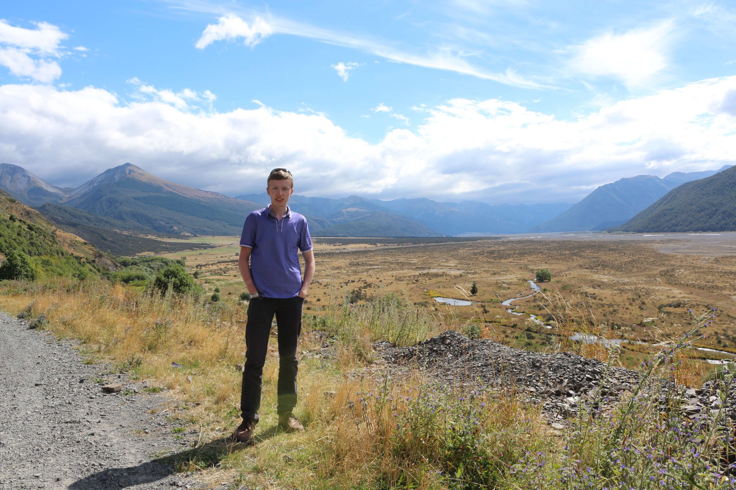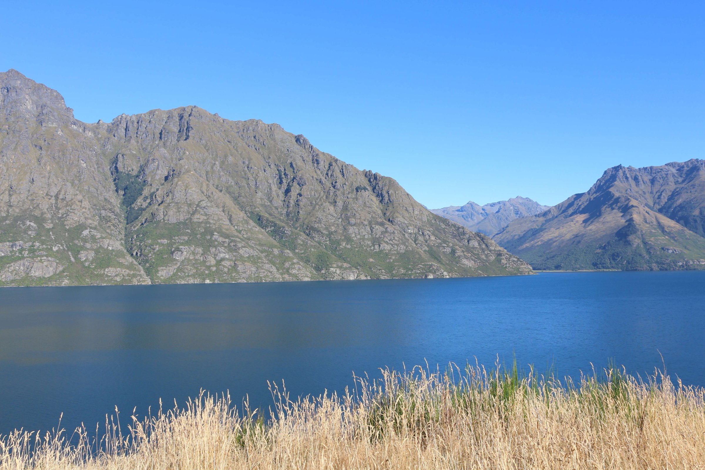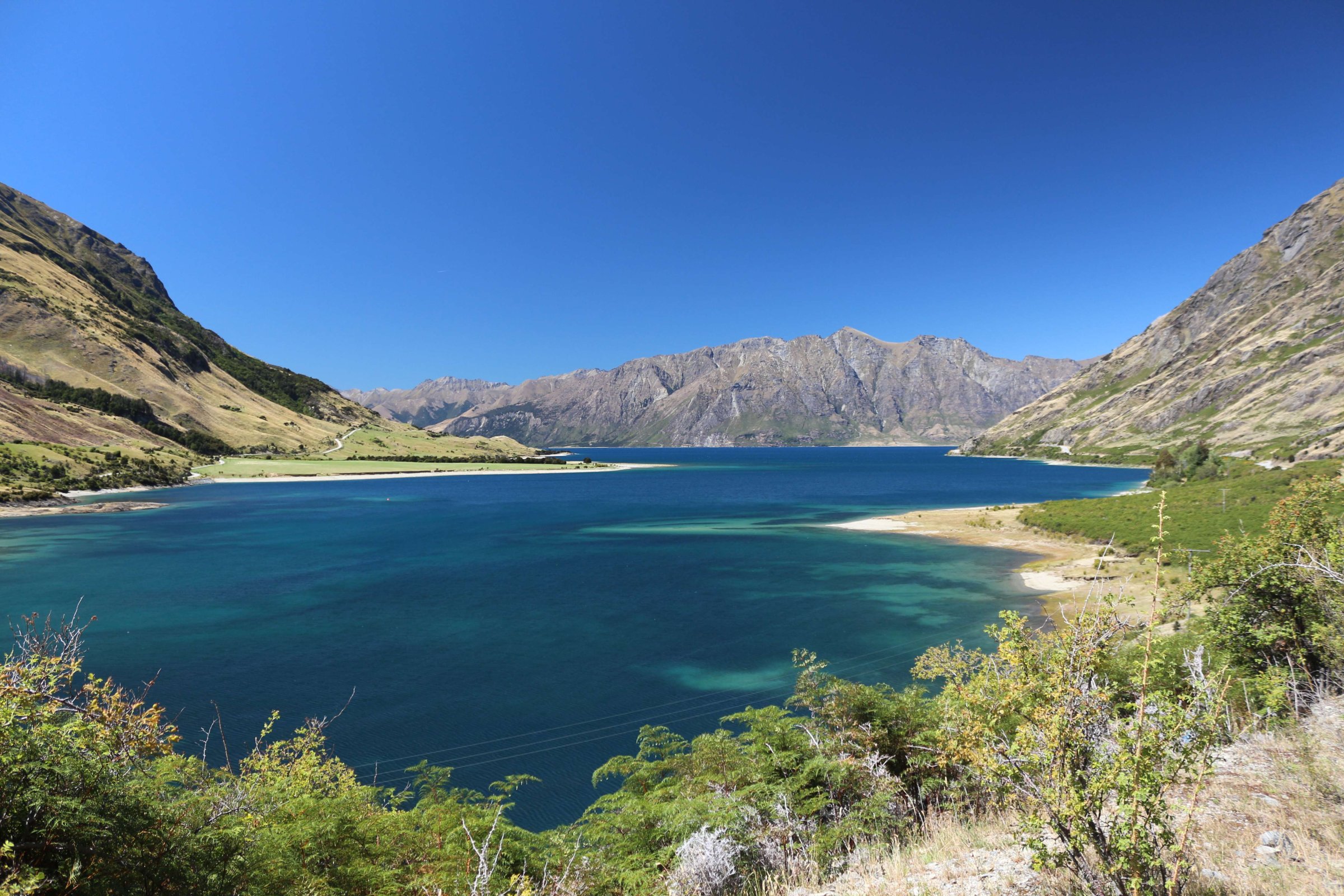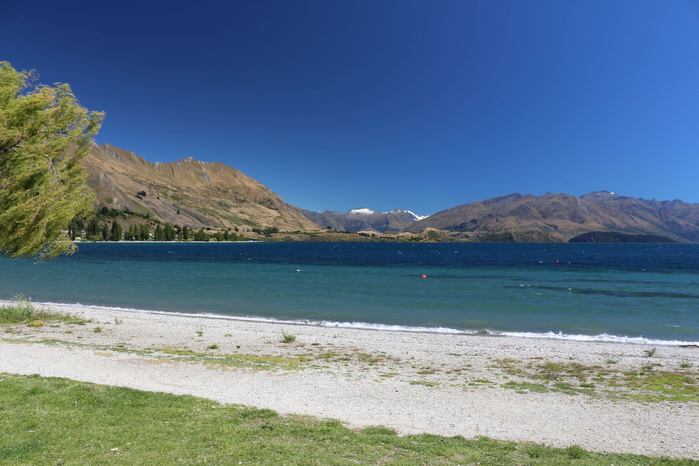 Утром 12-ого февраля в 7:45 я выселился из гостиницы в Манапоури(Manapouri) и поехал к леднику Фокса(Fox Glacier), до озера Хавеа(Hawea). Путь мне был знаком, но останавливаться для фотографирования всё равно приходилось, так как где-то, когда я проезжал в прошлый раз, погода была плохая. В районе этого озера пропала мобильная связь и интернет, уже были мысли, что я смогу попасть в интернет только в Крайстчёрче, но к вечеру, когда приехал в пункт назначения, связь появилась, в посёлке с одноимённым названием ледника.