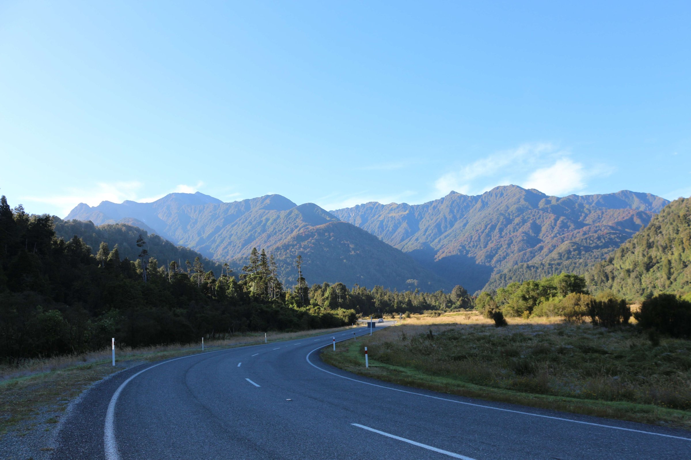 Кстати, заправок на этом пути не очень много, поэтому лучше в районе Квинстауна залить полный бак, тогда вам хватит до посёлка Хааст(Haast), а там вы сможете заправиться ещё и проехать до посёлка рядом с ледником, и там заправиться ещё раз.
