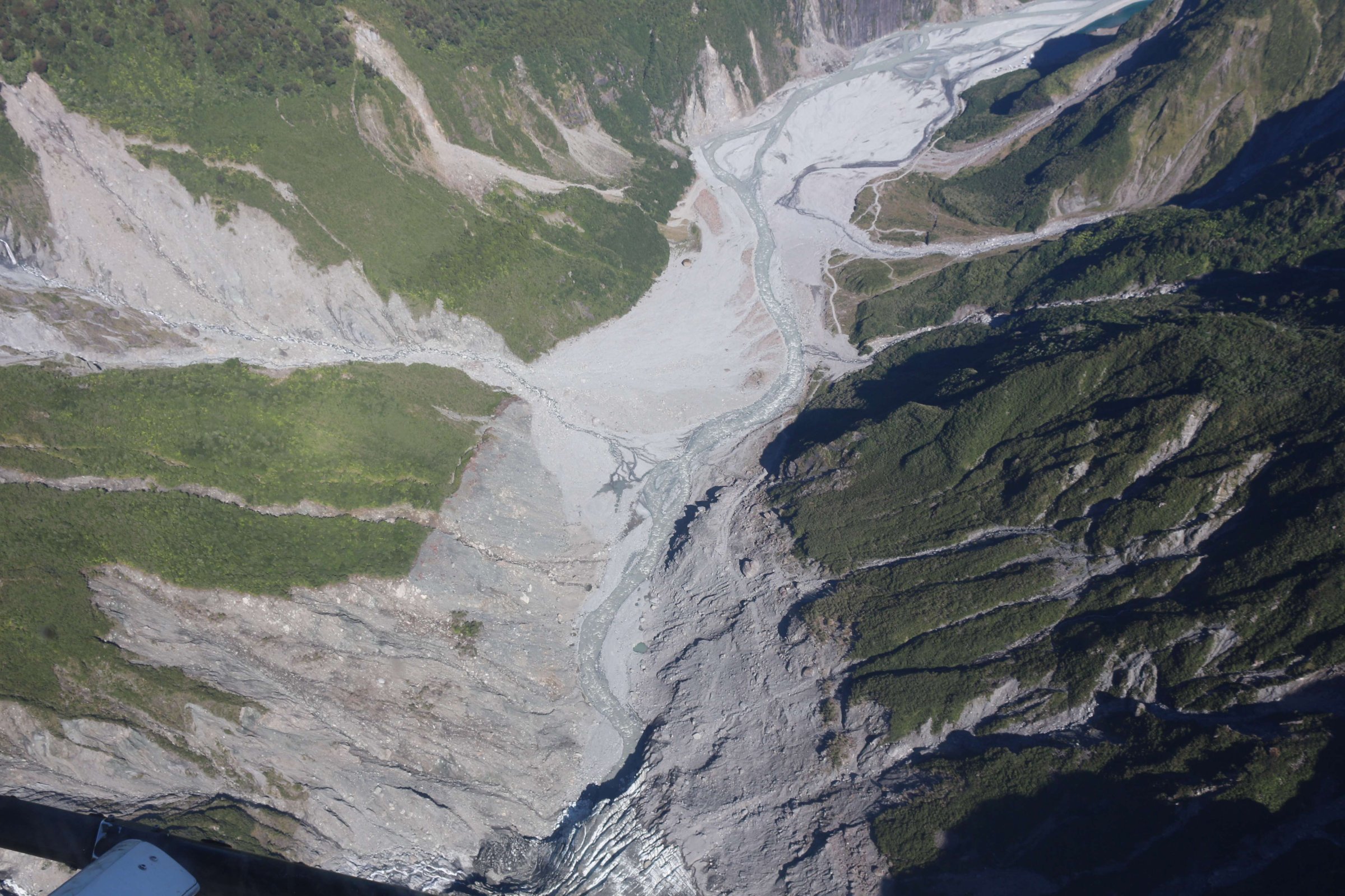 На следующий день я рано встал, выселился из гостиницы и приготовился к ещё одному 500 километровому переезду в Крайстчёрч(Christchurch). Обязательно возьмите с собой в поездку тряпку для машины, чтобы была возможность вытереть стёкла. В этот день я первый раз, придя к машине, обнаружил, что она вся в водяном конденсате, а чистить её было нечем. От гостиницы я поехал опять на ледник Фокса(Fox Glacier), чтобы попробовать подойти к нему уже с западного побережья речки, текущей от него. Но, к сожалению, вход на тропинку был закрыт по причине опасности.