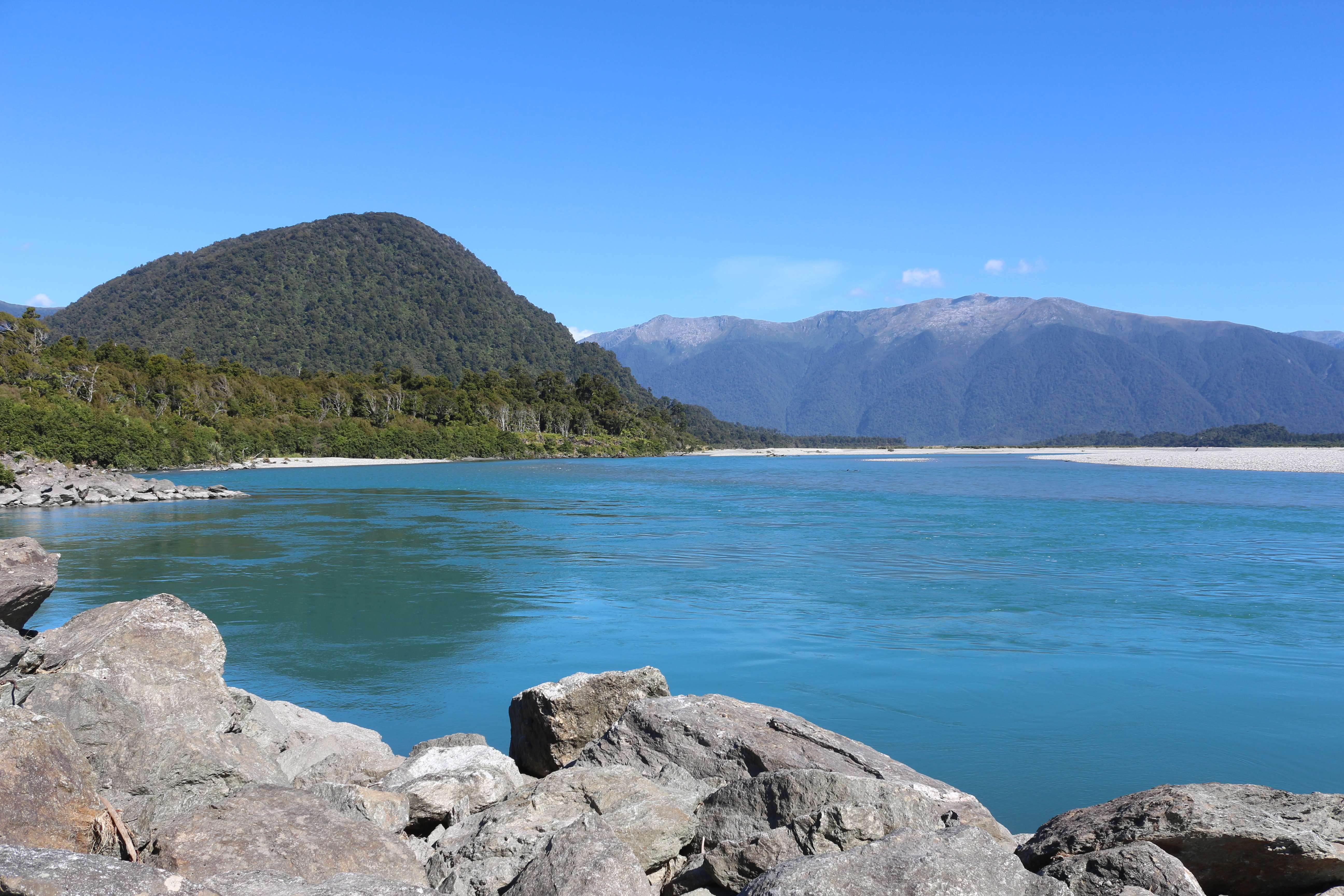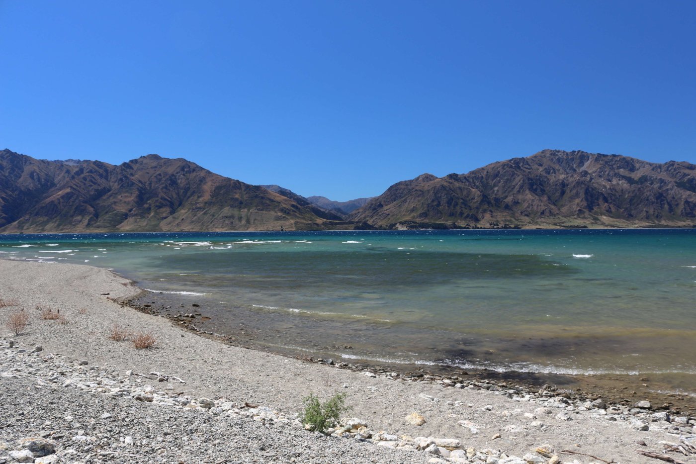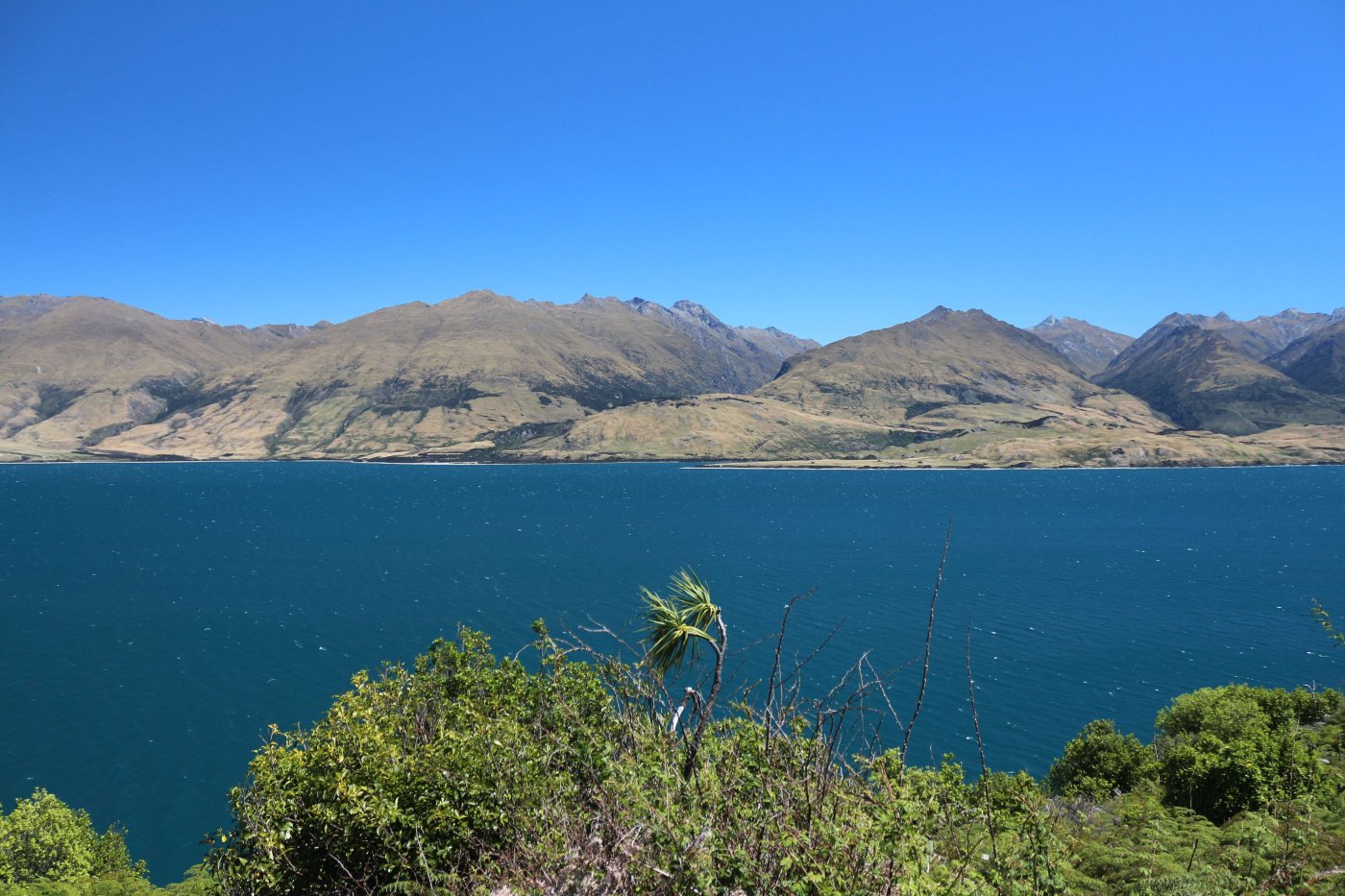 Утром 12-ого февраля в 7:45 я выселился из гостиницы в Манапоури(Manapouri) и поехал к леднику Фокса(Fox Glacier), до озера Хавеа(Hawea). Путь мне был знаком, но останавливаться для фотографирования всё равно приходилось, так как где-то, когда я проезжал в прошлый раз, погода была плохая. В районе этого озера пропала мобильная связь и интернет, уже были мысли, что я смогу попасть в интернет только в Крайстчёрче, но к вечеру, когда приехал в пункт назначения, связь появилась, в посёлке с одноимённым названием ледника.