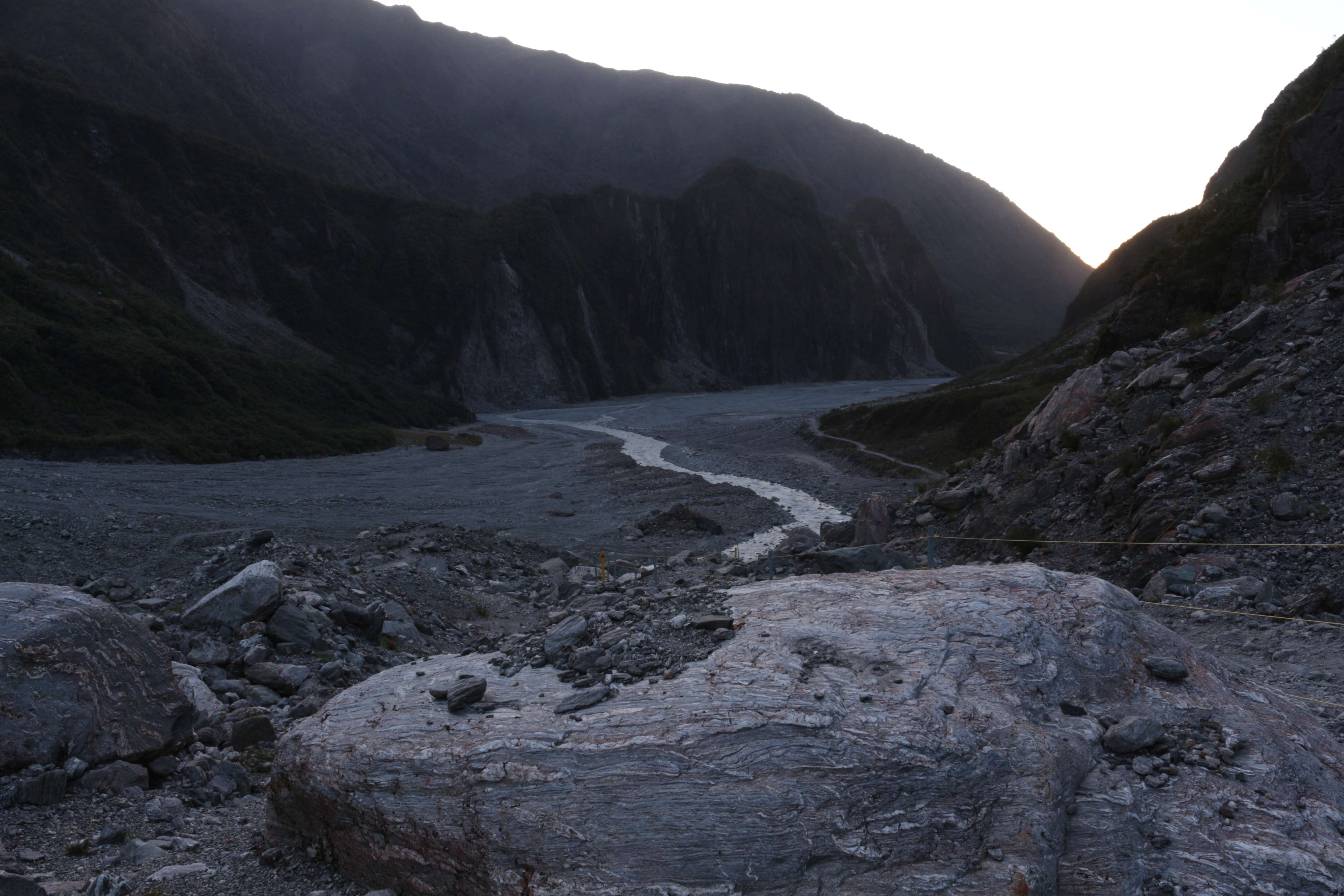 Кстати, заправок на этом пути не очень много, поэтому лучше в районе Квинстауна залить полный бак, тогда вам хватит до посёлка Хааст(Haast), а там вы сможете заправиться ещё и проехать до посёлка рядом с ледником, и там заправиться ещё раз. По дороге на ледник я проехал много красивых озёр, в какой-то момент, увидев очередное озеро, уже даже не хотелось останавливаться, чтобы его посмотреть и сфотографировать. Я остановился в каком-то местечке рядом с речкой Шип-Крик(Ship Creek). Там была парковка для машин и хороший подход к побережью океана. Кстати, проезжая побережье озёр, рек и океанов вы не всегда сможете подойти к берегу - очень часто они будут ограждены забором. Общественный выход к водоёму есть только в специально отведённых для этого местах, обычно они помечены указателями на дороге. Доехав до посёлка в 19:50, я заселился и быстро поехал на ледник, чтобы успеть его увидеть и пофотографировать до заката солнца. Я быстро ехал, а потом быстро бежал до него, обходя речку, текущую от ледника по восточному её побережью. Идти там минут 30 в гору, везде висят знаки, что там опасно, так как по сути это ущелье, где сверху на тебя может упасть камень. Я добрался без происшествий. Когда туда поднимался, то встретил нескольких людей, уходящих оттуда, а поднявшись к смотровой точке, понял, что я тут последний человек на сегодня. Пока вы туда дойдёте, придётся попрыгать по камушкам, по которым течёт вода. Я в итоге не промок, но и дождя в этот день не было. Может, в какие-то дни там сложнее пройти из-за сильных потоков воды с горы. Пофотографировав, я спустился к машине и поехал, чуть не задавив опоссума, который стоял на дороге и куда-то смотрел. Понаблюдать с близкого расстояния я за ним не смог - когда я вышел из машины и побежал в его сторону, он скрылся в траве. На следующий день я рано встал, выселился из гостиницы и приготовился к ещё одному 500 километровому переезду в Крайстчёрч(Christchurch). Обязательно возьмите с собой в поездку тряпку для машины, чтобы была возможность вытереть стёкла. В этот день я первый раз, придя к машине, обнаружил, что она вся в водяном конденсате, а чистить её было нечем. От гостиницы я поехал опять на ледник Фокса(Fox Glacier), чтобы попробовать подойти к нему уже с западного побережья речки, текущей от него. Но, к сожалению, вход на тропинку был закрыт по причине опасности. Я сделал несколько фотографий из леса на еле видный ледник и погнал в Крайстчёрч(Christchurch). По дороге я заехал на площадку, с которой открывается хороший вид на ледник Франса Джозефа(Franz Josef Glacier). Там была возможность пойти пешком на несколько часов в треэк, но у меня уже не было на это времени. В деревушке под названием ледник Франса Джозефа(Franz Josef Glacier) я увидел рекламу вертолётных экскурсий на все ледники. Там мне предложили много вариантов полёта, и самый дорогой и обширный стоил 450 новозеландских долларов. Он включал в себя час полёта, и за этот час вас бы свозили посмотреть на два ледника, и вы бы совершили облёт горы Маунт Кук, на которую я так и не попал, и вблизи её так и не смог увидеть. Но эти полёты были только во второй половине дня, и я согласился на менее дешёвый тур. Вертолёт вмещает 5 пассажиров. За 250 новозеландских долларов вас доставят на ледник Фокса(Fox Glacier), высадят там, и у вас будет время пофотографироваться на нём. С собой попросили взять только фотоаппарат, всё остальн