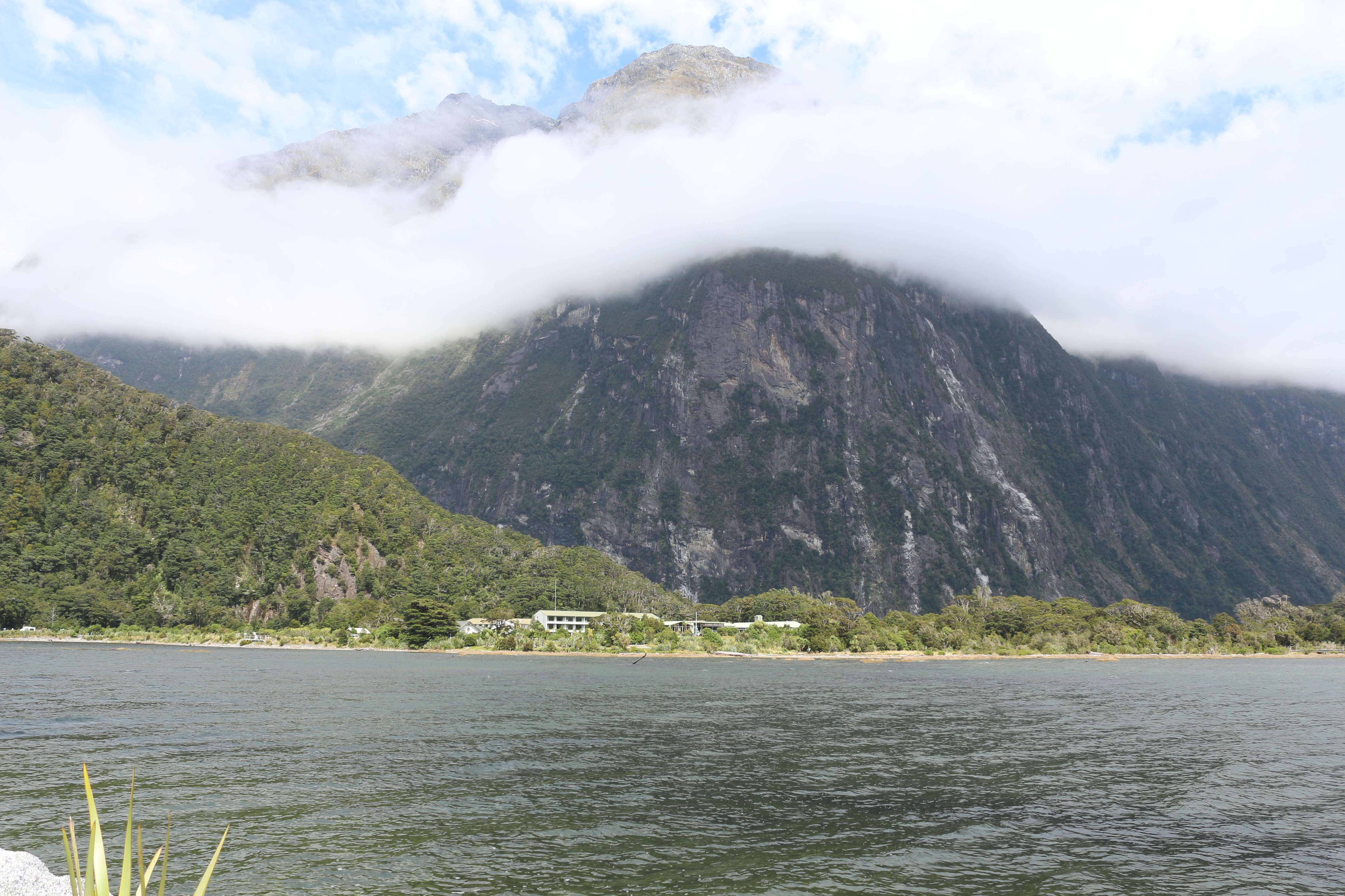 Дорога от Те Анау в Милфорд Саунд впечатляет. В течение 120 км вы будете проезжать через красивые озёра, горные речки, красивые леса, горы, и всё это, как говорится в надписи на дороге, за какие-то 2 часа, хотя, если останавливаться по дороге, путь может затянуться на 4 часа. Да, кстати, не забудьте заправить в Те Анау полный бак, так как по дороге вы не встретите ни одной заправки. Вроде есть возможность заправиться в самом Милфорде, но я бы не стал рассчитывать на эту возможность, там я видел только одну заправку, и она не внушала доверия. Стоимость бензина я, к сожалению, не запомнил. На пути в Милфорд вы встретите тунель Гомера(Homer), протяжённость которого 1.25 км, движение в нём реверсивное в одну сторону, регулируется светофором. В интернете встречал описания, что через этот туннель можно ездить в определённые часы, ночью проехать через него становится либо невозможно, либо проблематично. Но я не нашёл около него какой-то информации по этому поводу, единственная проблема в том, что там на ночь выключают светофор, но в принципе две легковушки в туннеле смогут разъехаться. В самом Милфорде выбор для отдыха невелик. Это в основном круизы по фьорду, их можно купить прямо там. Я хотел воспользоваться сайтом и заранее забронировать билет, но не сделал этого. Свободных мест на корабле было много, в последнюю минуту даже путешественников с двух кораблей разных компаний посадили на один, и всё равно не было тесно. Вот такие круизные лайнеры заходят в Милфорд, но посадить или высадить пассажиров они не смогут, так как не позволит пристань: Да, кстати, при отъезде от Те Анау полностью теряется связь с мобильным оператором, так что поговорить по телефону или выйти в интернет вы сможете только по приезду обратно в Те Анау, ну либо можно купить трафик wi fi за дорого в Милфорд Саунд. Вообще всё южное побережье Новой Зеландии грешит на отсутствие связи. Так что заранее закачивайте то, что вам нужно в дороге, на свой девайс. Главный минус этого места, да и некоторых других мест Новой Зеландии - это мушки. Всё бы ничего, но они кусаются. В интернете прочитал несколько постов о них, писали, что это очень больно, и место укуса потом очень болит, так как мушки выгрызают участок кожи. Но мне как-то не довелось почувствовать их укус в полной мере, наверно, я стряхивал их до того, как они докусывали мою плоть. Вообще они надоедливые и пытаются на тебя сесть даже после того, как ты их напугал. Видел людей, которые одевали шляпы с защитными сетками. Также в Новой Зеландии, наверно, было много мест, где можно было приобрести аэрозоль от этих мушек, но я недооценил угрозу, а когда они начали мне досаждать, крем уже было негде купить. Поплавав на корабле по фьорду, при затянутом небе, и посмотрев океан, я отправился обратно в Те Анау, а потом и в Манопори(Manapouri). Заселившись в отель и перекусив, поехал осматривать достопримечательности этого городка, но так ничего интересного не нашёл, кроме великолепного озера с красивым видом. Когда солнце уже заходит, вид на озеро начинает казаться зловещим, и создаётся впечатление, что горы по центру озера - это не горы, а какие-то спящие гигантские звери. На следующее утро 9-ого февраля я отправился снова в Милфорд Саунд. Погода налаживалась, и была надежда, что там будет солнечно. Этот день полностью выделил под Милфорд и в принципе не пожалел. Распола