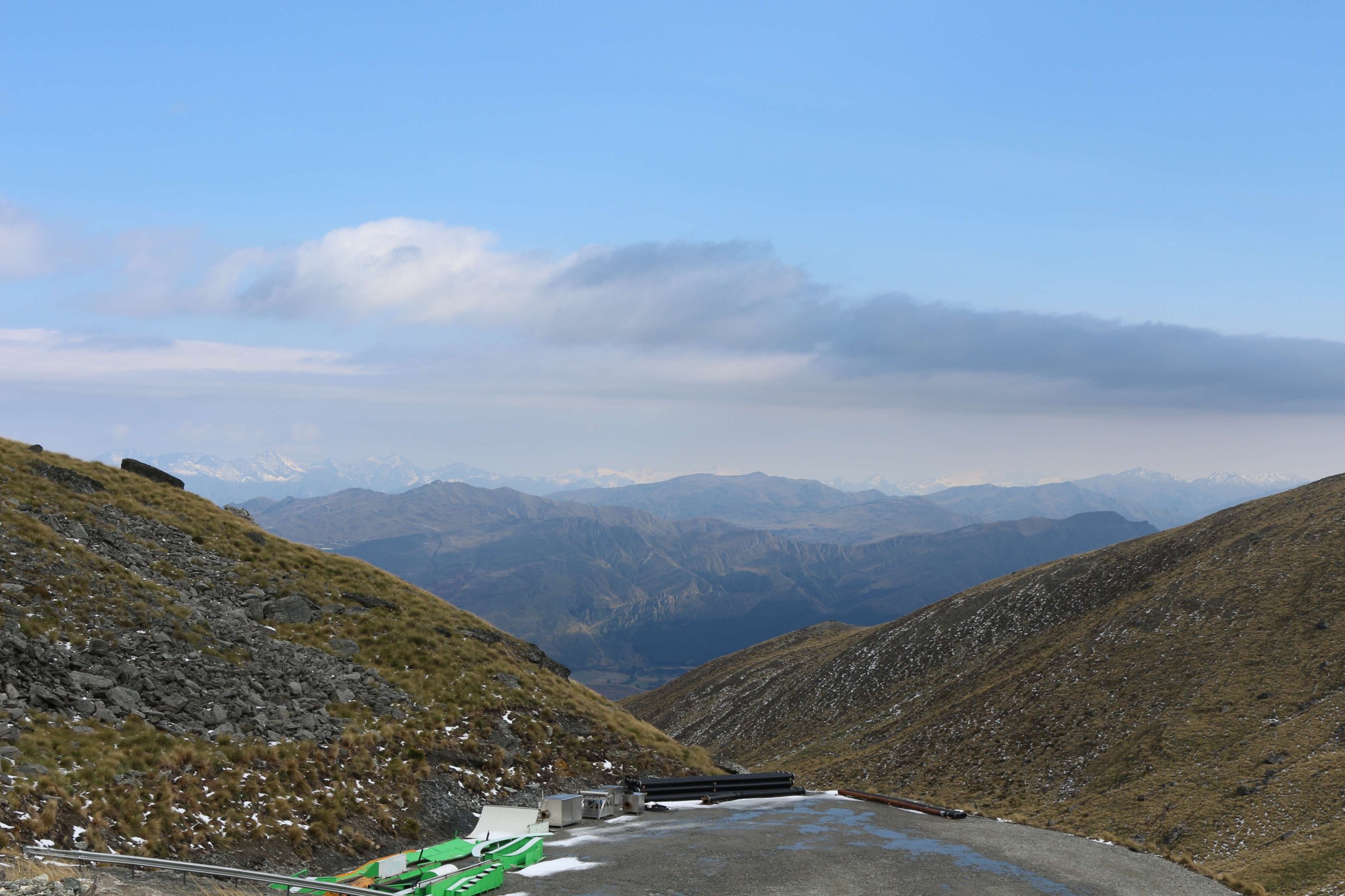 Утром 7-ого февраля у меня был намечен полёт на самолёте в Милфорд Саунд. До него на машине я заехал на гору Double Cone, высота которой 1 600 м, причём, как я понял, въезд туда запрещён, но ворота были открыты, и я решил рискнуть. На самом деле ехать было страшновато, так как гравий там был большой, и я боялся проколоть шины. Наверху на самом деле ничего и нет, окромя пары красивых видов. В феврале 2015-го на вершине вовсю кипела стройка нового горнолыжного курорта, так что дальше парковки я пройти не смог.
