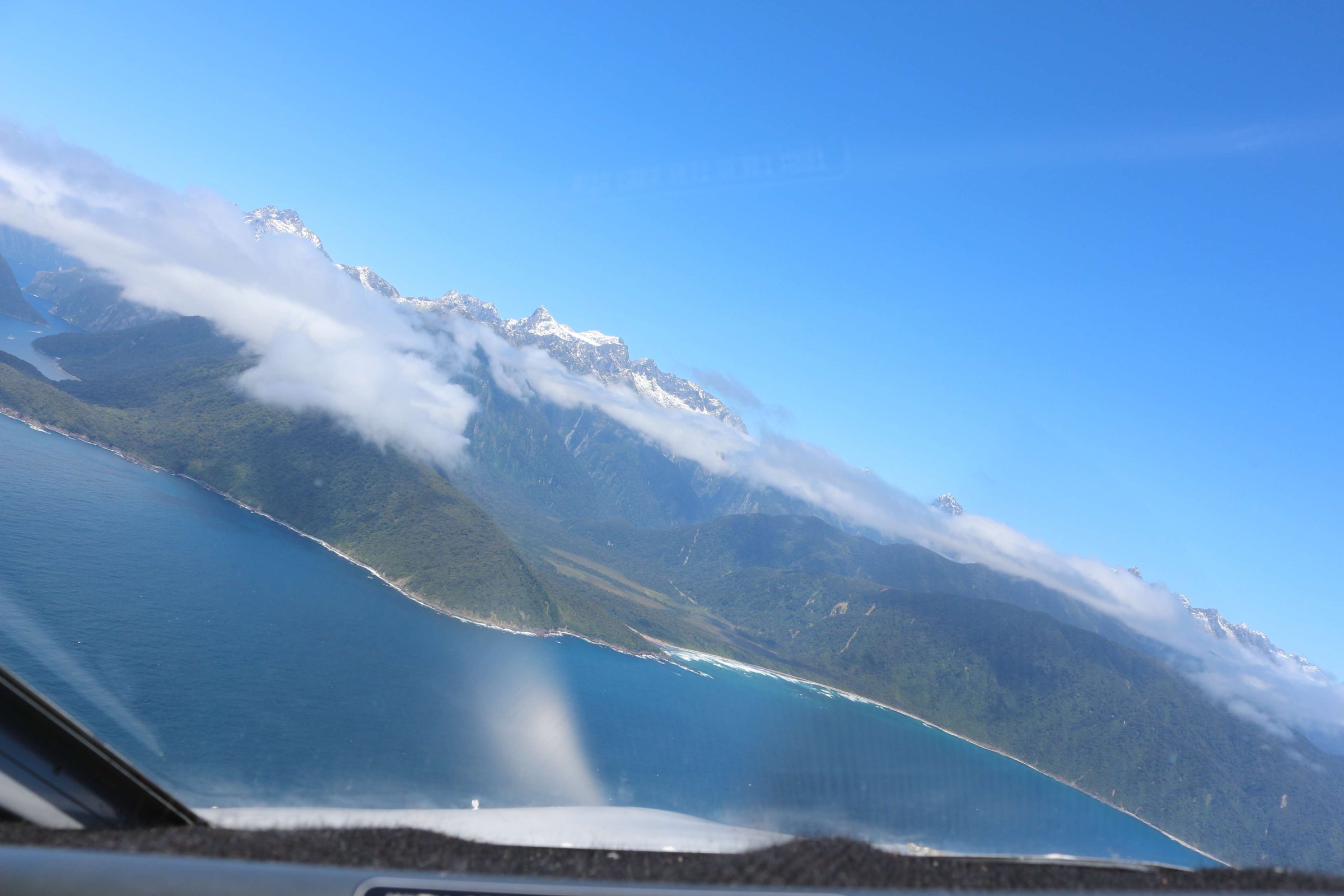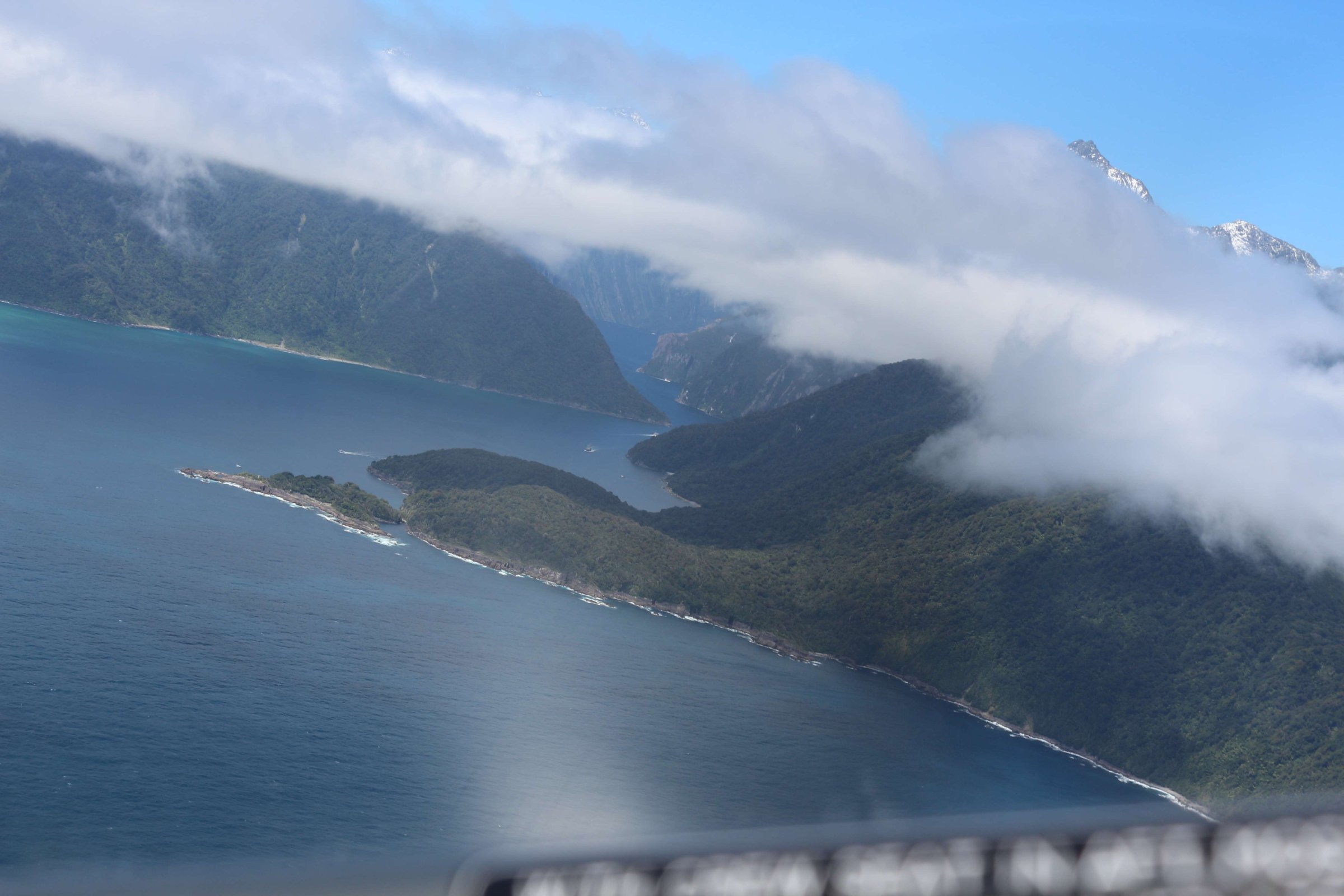 https://www.realjourneys.co.nz/ . Полёт прошёл великолепно, народу было мало, и все были по парам, а мне досталось сиденье рядом с лётчиком. К слову, как я понял, все, кто летел со мной, летели на несколько дней в Милфорд Саунд, и я был один такой, кто купил билет туда и тут же обратно, но мне это и нужно было, так как посетить Милфорд Саунд я намеревался несколько раз и уже на машине, так что хотел просто осмотреть эту часть Новой Зеландии с самолёта. Мы летели примерно 50 минут туда и так же обратно, там у меня было 20 минут времени на то, чтобы сделать несколько снимков. Мне повезло в этот день: погода была отличная, небо было ясное, и ветра почти не было. Когда готовился к поездке, очень много читал о том, что хорошая погода в Милфорде - это редкость, но вот мне удалось попасть туда именно в хорошую погоду, что нельзя сказать о следующих днях моего пребывания в Милфорде.