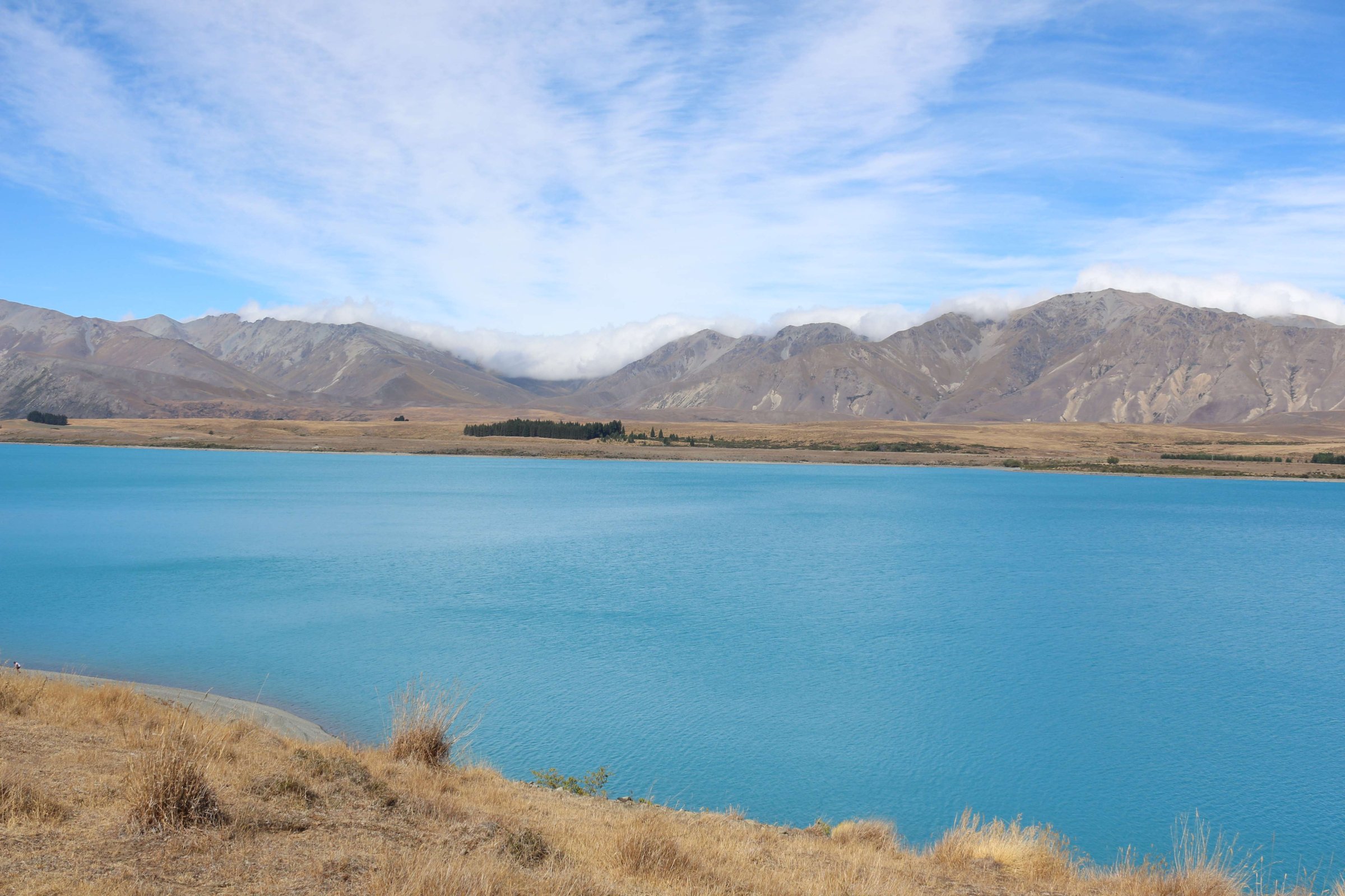 Подъехав к озеру Текапо, я впервые увидел такое красивое озеро с таким необычным цветом воды.