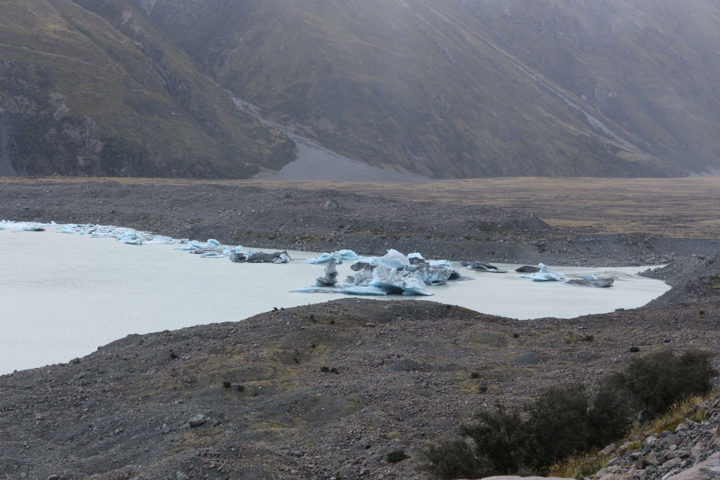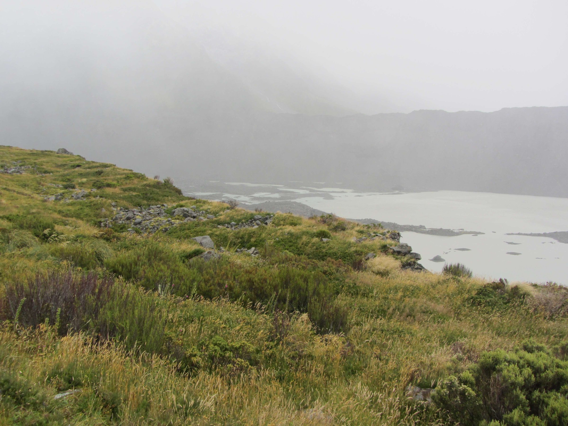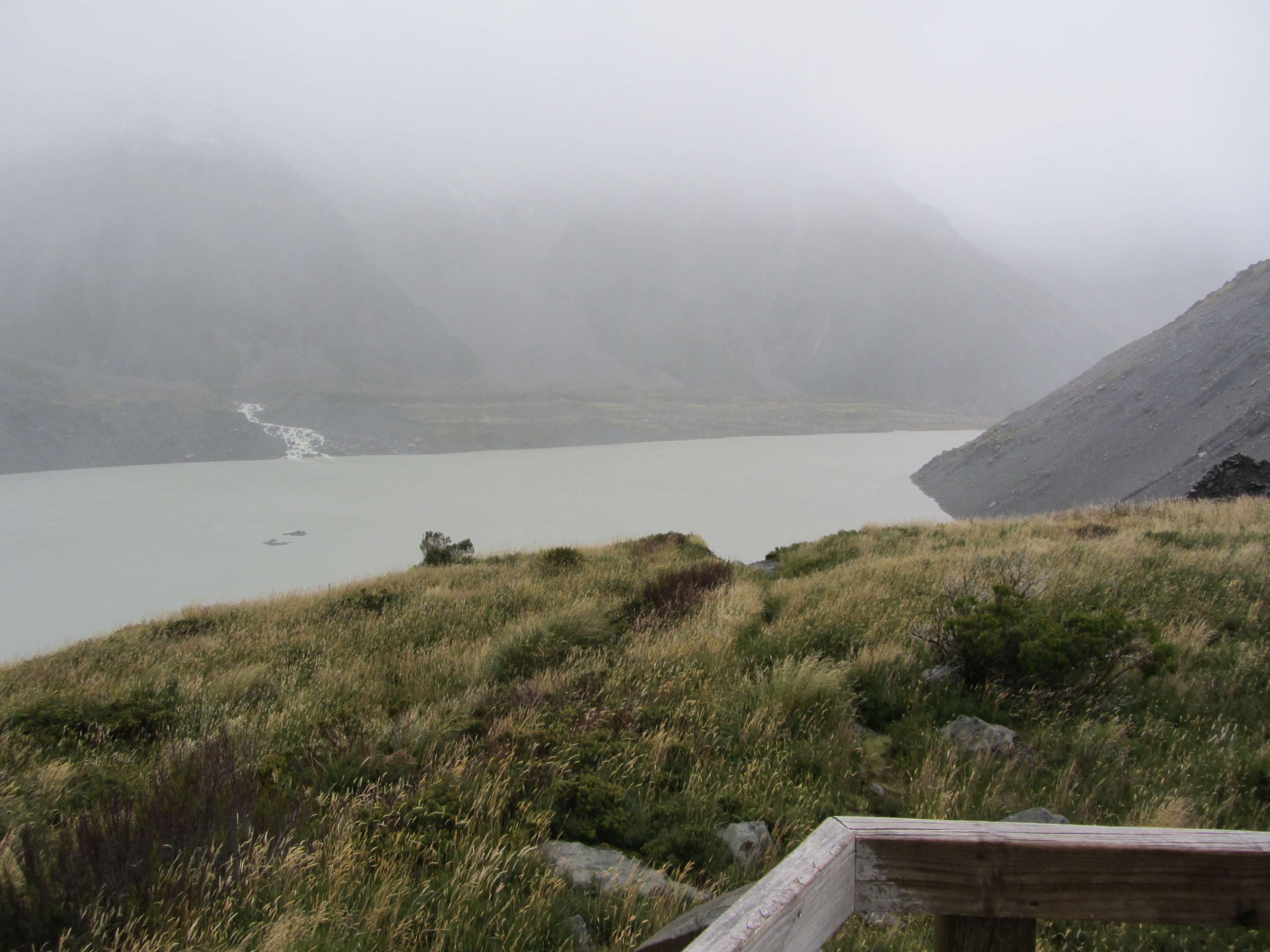 Далее я поехал в сторону озера Текапо, надеясь на то, что там погода получше, но там было всё то же самое. Поскитавшись, я решил попытать счастье и поехал в долину Маунт Кук. Но весь день и в ней шёл дождь, и посетить озеро Муэллер не представилось возможным. Зато ближе к вечеру я смог сходить к озеру Тасмана и полюбоваться на ледник. Также в этот день я вдоволь насладился видами западного побережья озера Пукаки, именно там погода после обеда стояла отличная, хотя в долине Маунт Кук в этот момент шёл дождь.