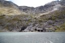 Дальше мы доехали до трека, в который чёрт меня сподвиг пойти. Мы пошли, но так как время уже близилось к вечеру, пришлось идти быстро. А туда пришлось идти в гору, и мы просто сильно устали подниматься. В итоге мы поднялись на приличную высоту, и вся соль была в том, чтобы увидеть издалека вот это горное озеро. По-моему, оно называется озеро Мариан: