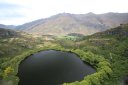 Все, что мы проехали за этот день, - по всем этим дорогам я проехал 2 года назад. Но мы как всегда находили что-то новое. Вот, например, мы заехали на красивое озеро круглой формы: