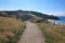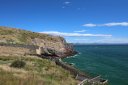 31-е января(11-ой день). Встали как всегда рано утром, собрались и поехали. Сначала наш путь лежал на полуостров в Данидине. Я думал, быстро доберемся до его конца, но не тут-то было. Везде были ограничения скорости. Это было время выхода школьников в школу, так что на дорогах было много полиции, и то и дело дорогу перекрывали какие-то волонтеры, чтобы пропустить детей по пешеходному переходу. Ехали мы в какое-то абстрактное место. Мне казалось, что там, где-то на краю этого полуострова, есть что-то интересное. Но меня не оставляла мысль, что, может, где-то ещё есть что-то интересное. И тут я увидел дорогу, уходящую вдаль в сторону океана, и последовал по ней, нарушив маршрут навигатора, и, как оказалось, не зря. Там была обзорная площадка, до которой было как рукой подать от парковки. Также можно было спуститься к берегу. Рядом с обзорной площадкой ходили овцы. Одна из них испугалась нас и как-то было побежала, но завалилась на спину и долго дергала ногами - пыталась вставать, но у неё это не получалось. С какой-то попытки она сделала это и, посрамившись своих сородичей, сделала вид, что как будто она нас и не боится, а просто там гуляет.