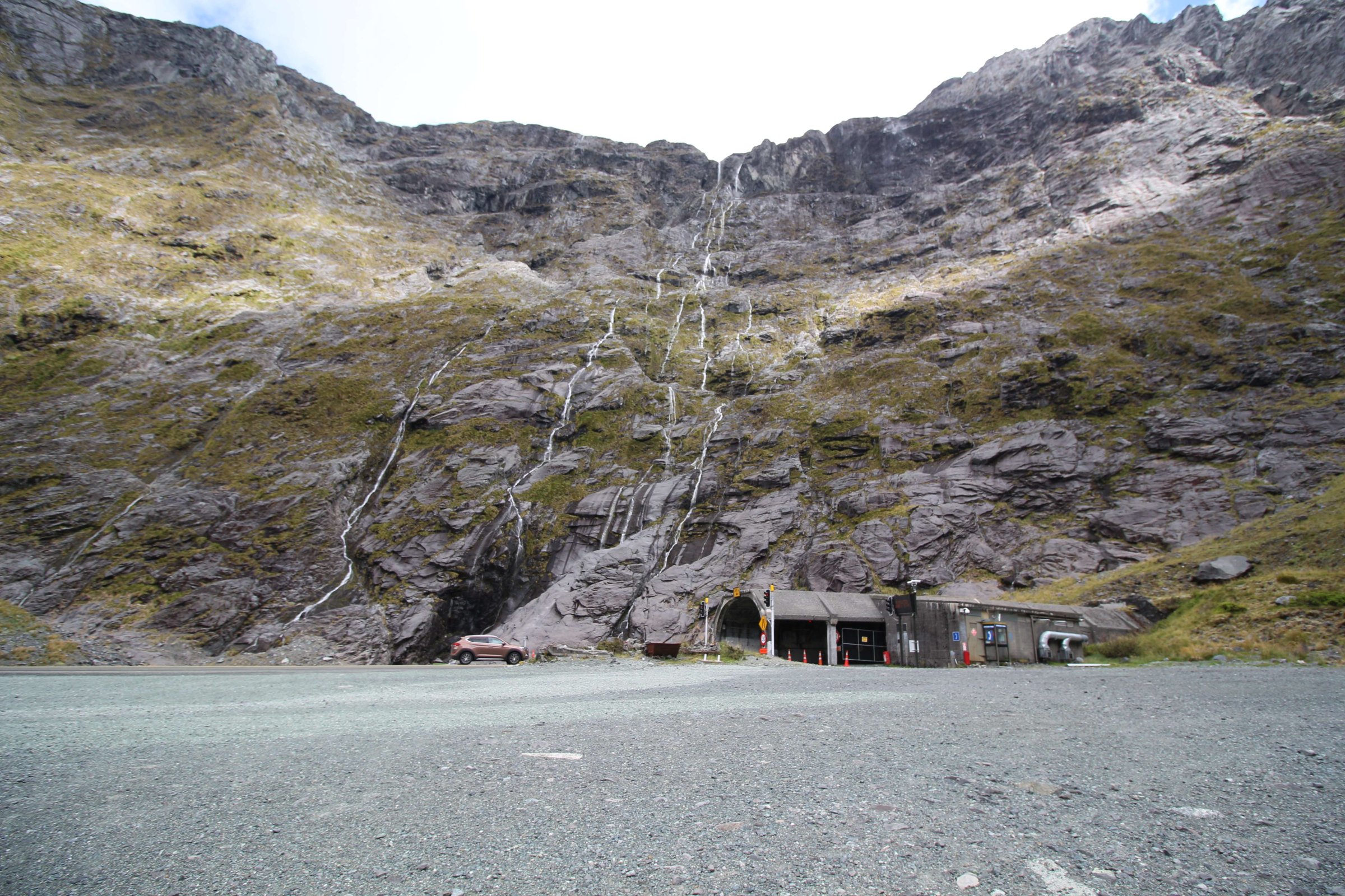 В 2015 году я в Милфорде был, наверно, 3-4 раза - так он мне понравился. Я тогда поселился в Манапоури и катался туда каждый день, ловил хорошую погоду. Но сейчас у нас не было такой возможности, так что надо было сразу ловить хорошую погоду, обходить всё и ехать дальше. И тут так и получилось. Мы попали в принципе в неплохую погоду. Где-то лил дождь, но от него можно было уехать в другое место и забыть про него. При въезде на дорогу в Милфорд Саунд мы заметили много полицейских машин, которые всех останавливали. Остановили и нас. Два мужика начали нас спрашивать, откуда мы, где взяли машину и знаем ли мы правила дорожного движения. Причём задали они вопрос про правила тогда, когда услышали ответ на вопрос, где мы взяли машину. То есть получается, мы могли, взяв машину в Окленде, проехать через всю страну 3000 км (включая паром), и не уметь её водить, и не знать правил дорожного движения :) Там у них были какие-то картинки, типа keep left и т.д. Всё это я знал. Также они сказали, что видят первых русских на этой дороге.