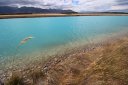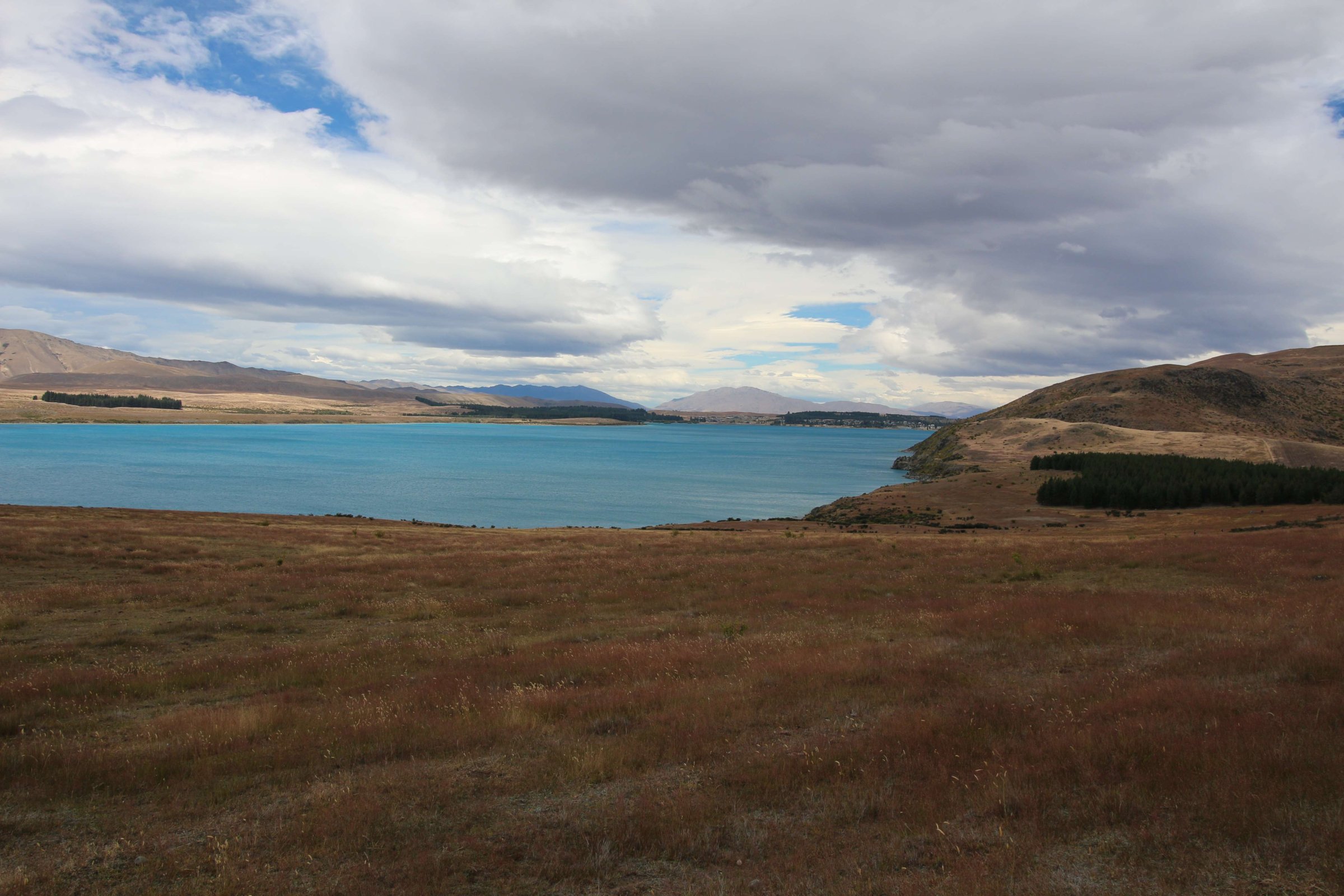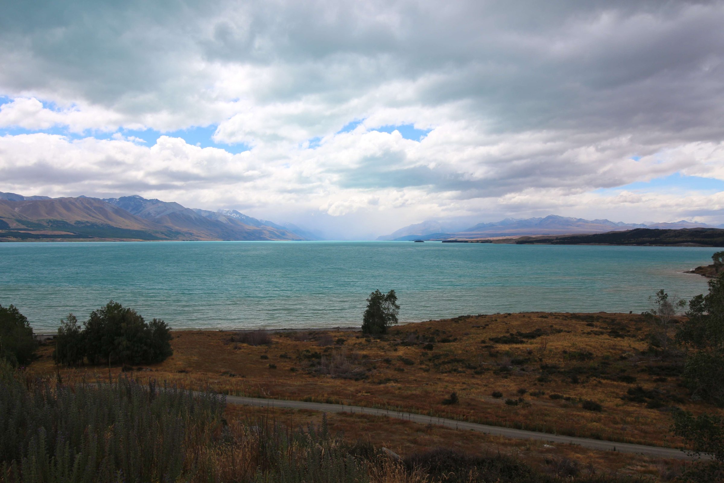 По пути мы заехали на озеро Текапо. Погода там уже менялась, дул сильный ветер. Тут я хотел проехаться на машине туда, куда ходил пешком 2 года назад, но тучи помешали полюбоваться красивыми видами. Озера Пукаки и Текапо хороши в ясную безоблачную погоду. Именно тогда их вода изумрудно-голубая, в пасмурную же погоду вода не имеет столь яркого голубого цвета.