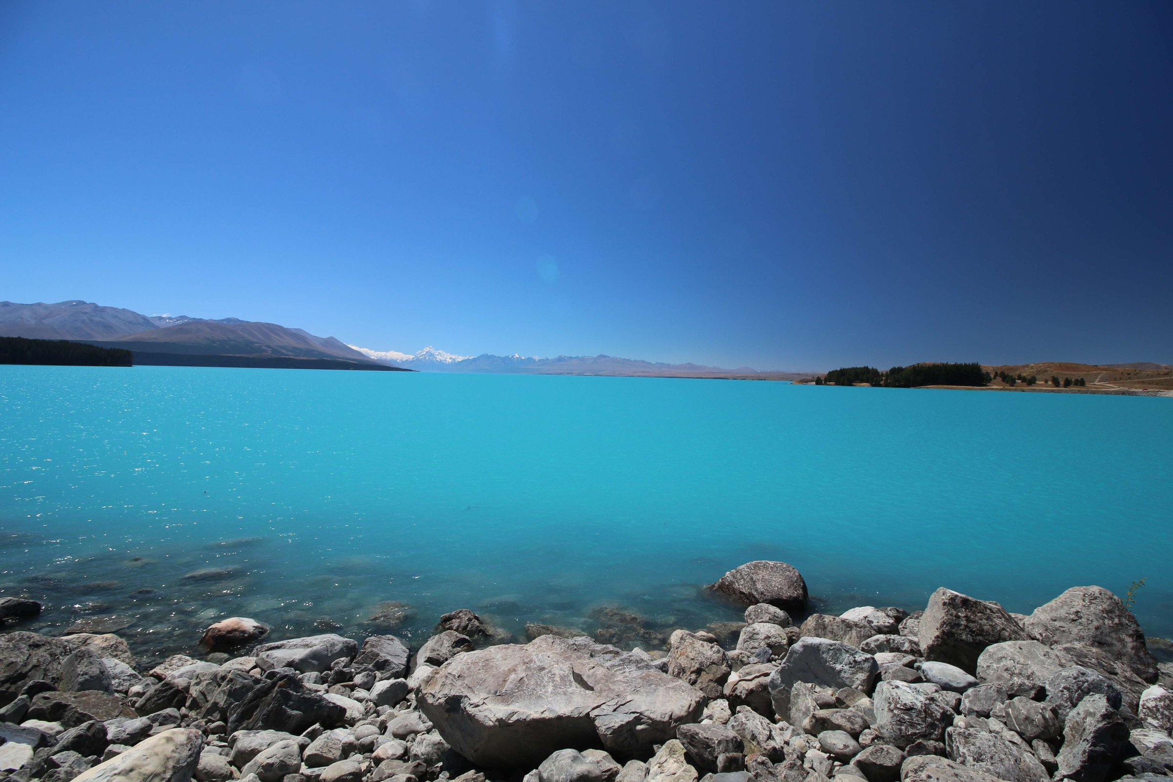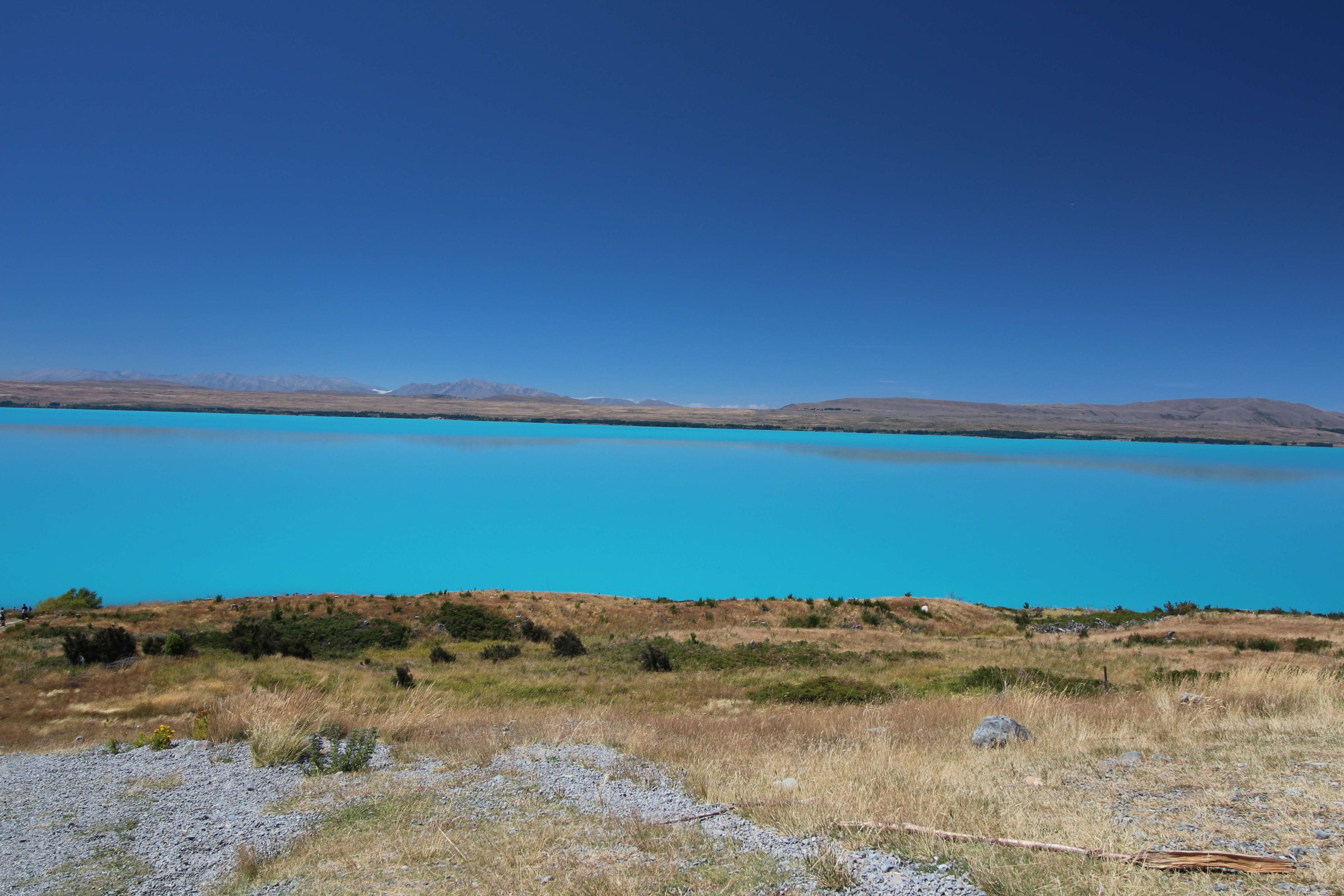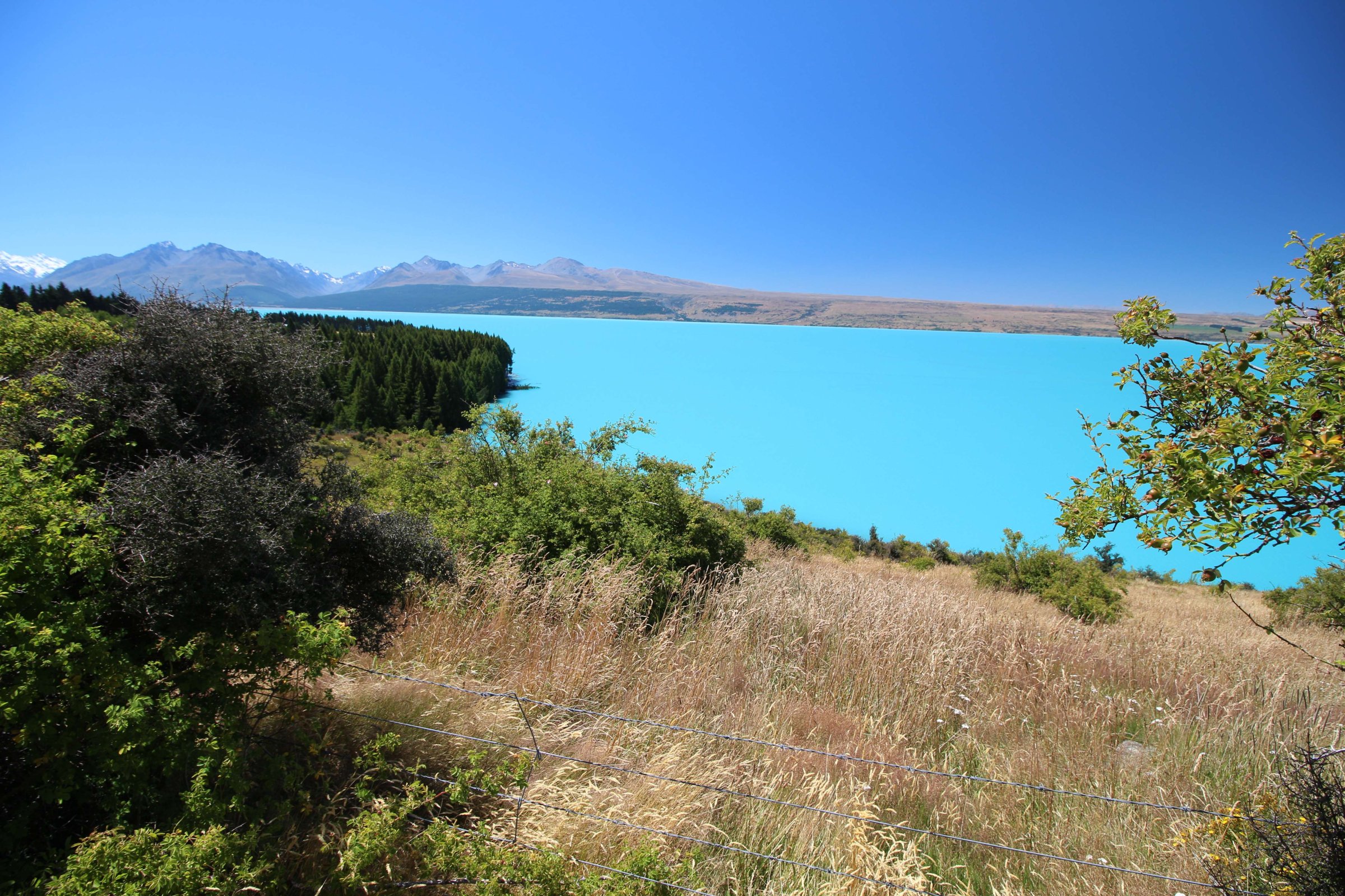 Дальше озеро Пукаки нас не хотело отпускать, залившись изумрудным цветом. На небе было ни облачка, поэтому озеро приобрело наикрасивейшее своё состояние цвета: