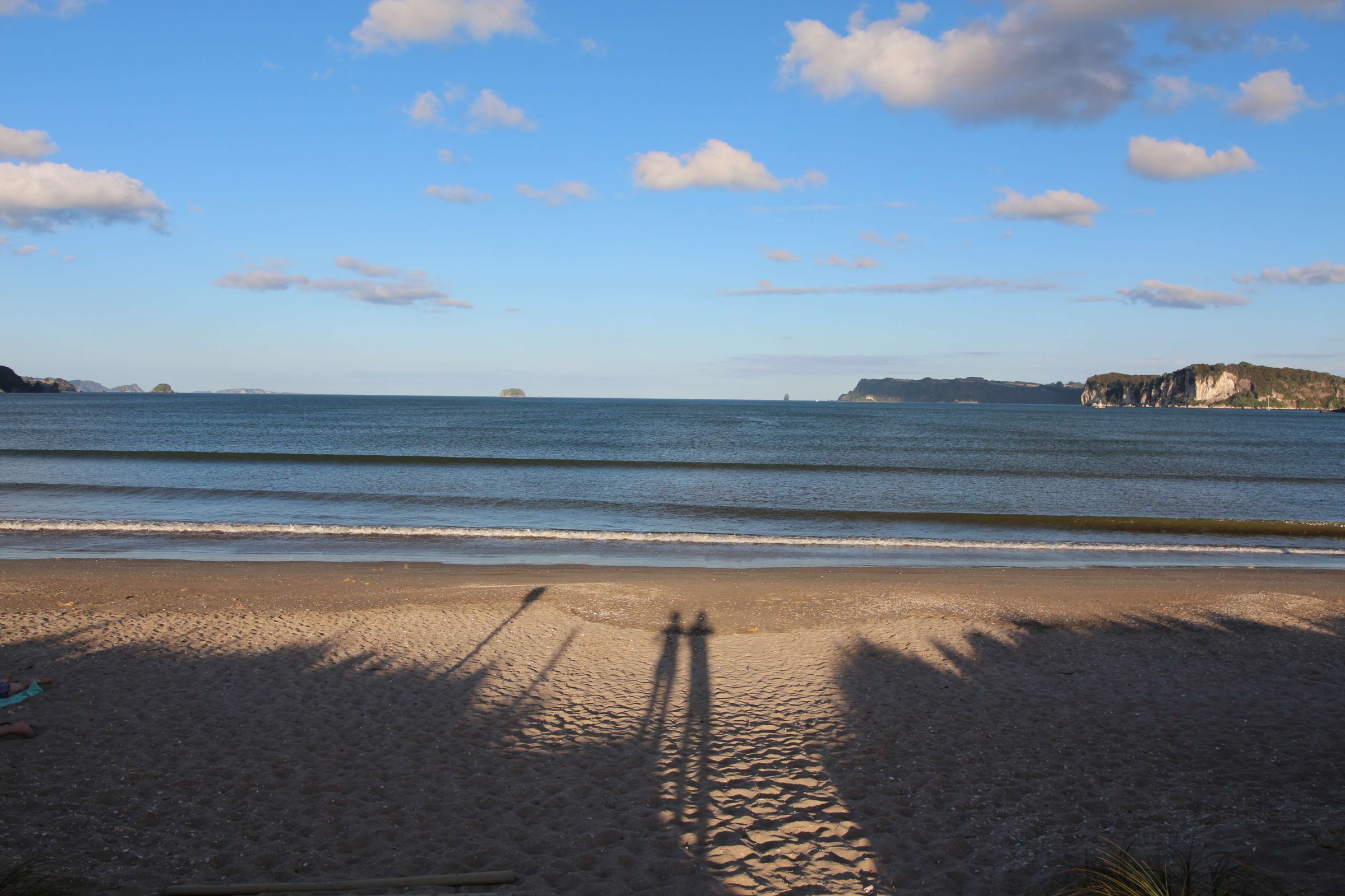 8-е февраля(19-ый день). Проснулись рано, чтобы по пути на самую северную точку Северного острова заехать на еще одну достопримечательность - это был Hot beach water. Я не сильно разузнавал до этого про это место и не понимал, что это за горячая вода. Думал, что там, возможно, можно искупаться, раз там горячая вода. Но, как оказалось, всё было не так. Горячая вода била из-под песка на пляже. В некоторых местах она была настолько горячая, что нельзя было стоять дольше нескольких секунд. Также можно было врываться ногами в песок и чувствовать тепло, которое исходило от земли. Некоторые люди ходили туда с лопатами и копали себе ямки, чтобы лежать в них и греться: