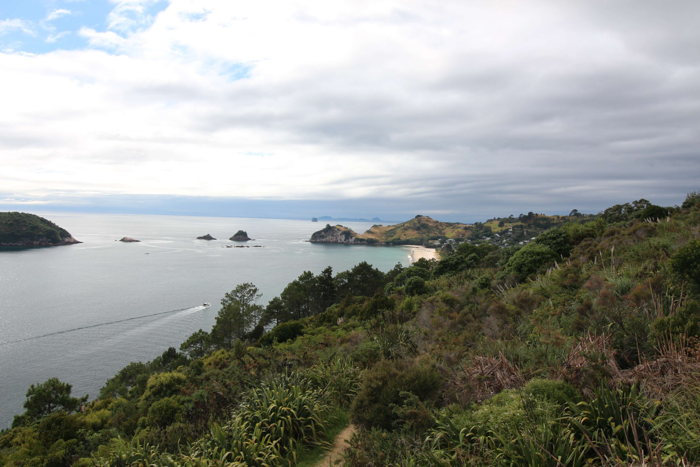На полпути через пролив Кука погода начала меняться, стало пасмурно, и пошел дождь. Мы ещё хотели погулять по Веллингтону, но, в связи с изменением погодных условий, передумали. После того, как мы причалили к берегу, тут же поехали вглубь острова, и там погода уже снова стала хорошей.