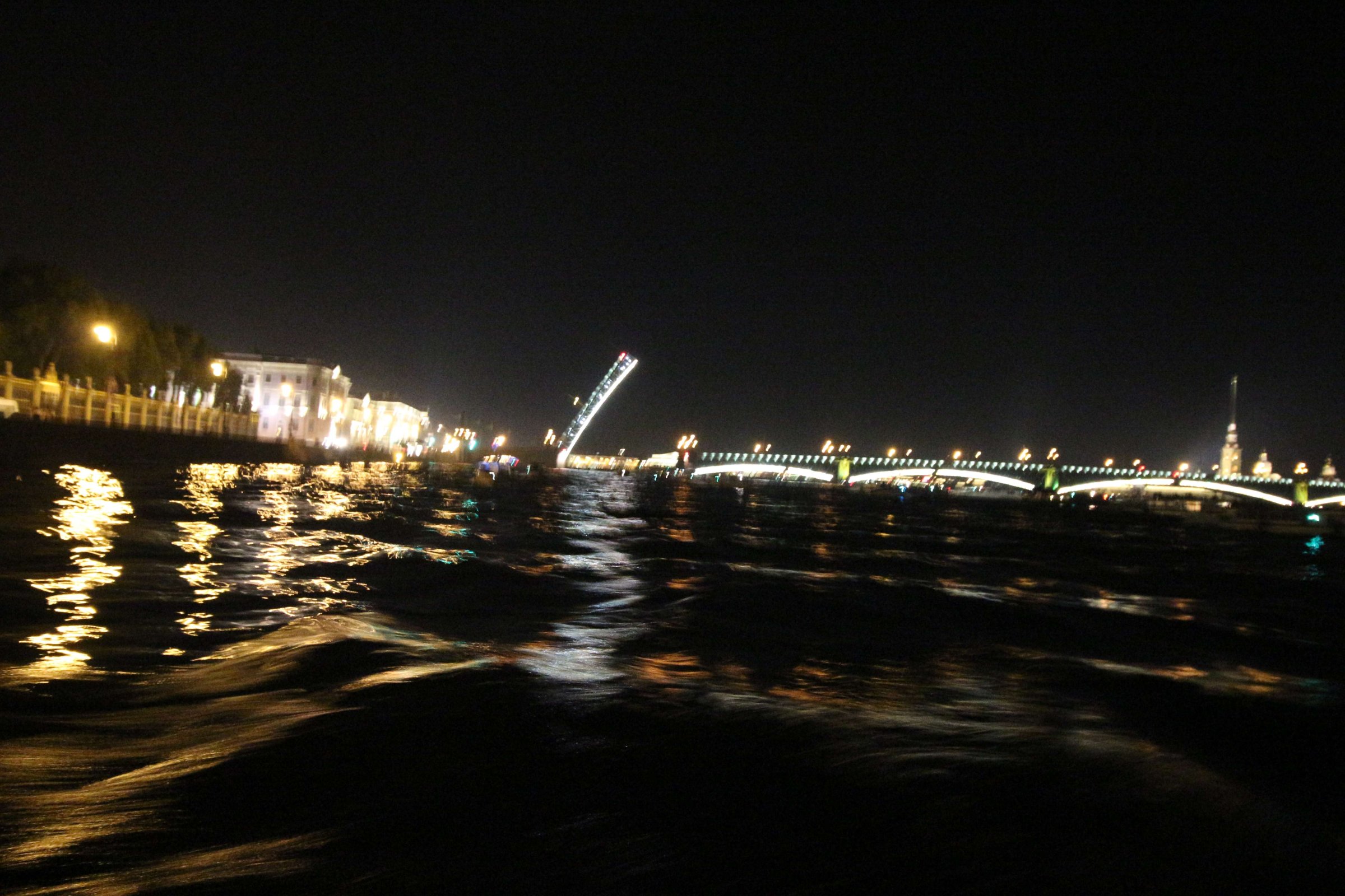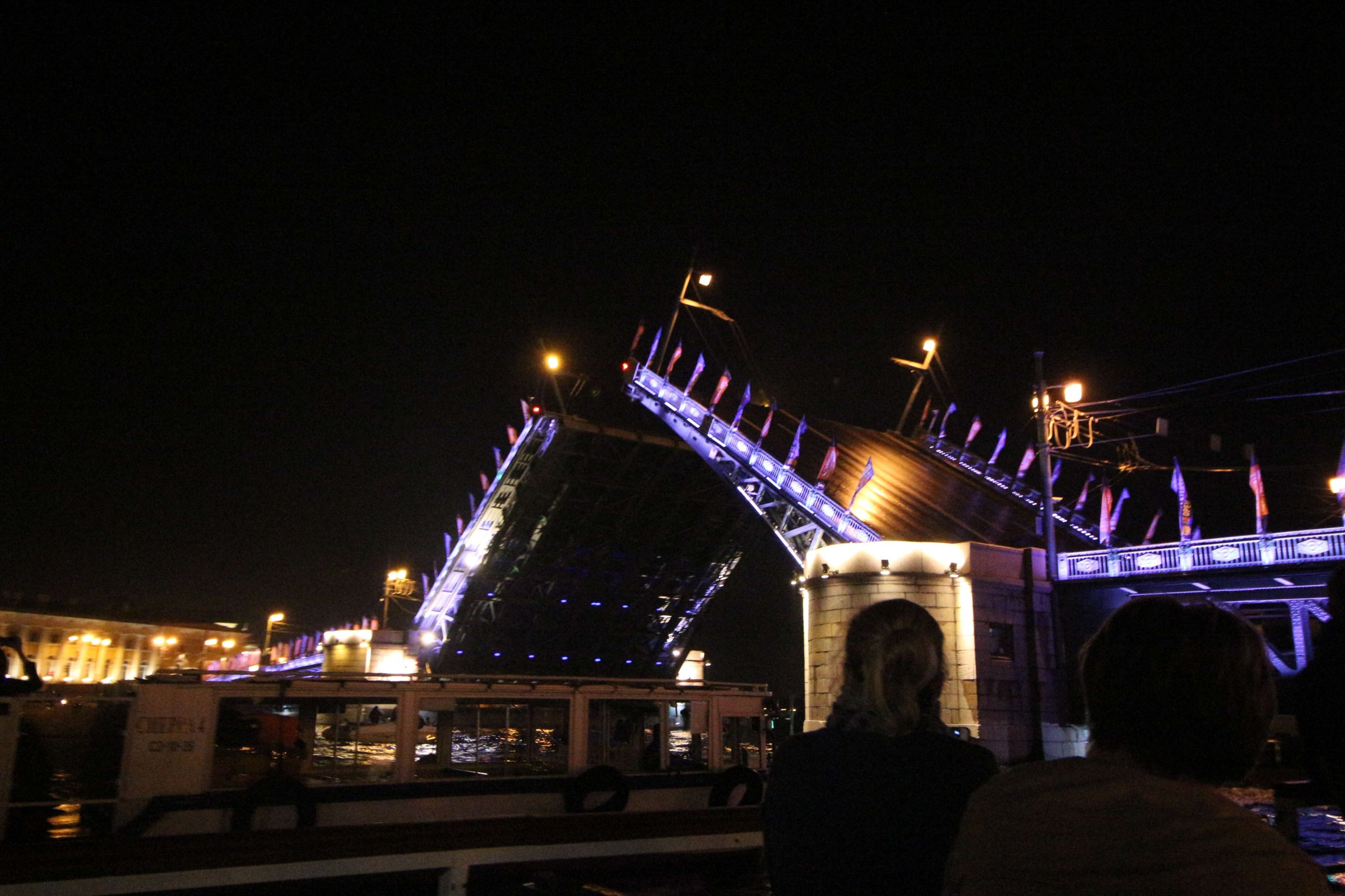 Встав рано утром, мы поехали дальше. День был дождливый, а нам предстояло проехать всю Финляндию, пройти границу с Россией и доехать до Питера. Так как шёл дождь, мы почти нигде не останавливались, заехали в Хельсинки, для того чтобы просто из машины посмотреть на него. Посмотрели и поехали дальше. У границы с Россией скопилась огромная пробка, и там мы простояли около 2-х часов. Как мы услышали по радио, там была проблема с русским автобусом, который вёз контрабанду: большую партию сигарет. К вечеру мы прибыли в Питер, заселились в гостиницу. Хотели в этот же вечер пойти гулять, но пошёл дождь, и мы решили не выходить из номера. А вот на следующий день мы воспользовались хорошей погодой и посетили все самые основные достопримечательности Питера и Петергофа. Походили пешком по Питеру и под конец дня купили билеты на катер, курсирующий по маршруту с основными мостами, которые разводятся.